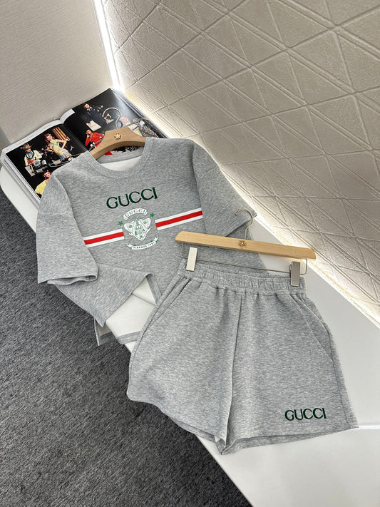 25Ss spring and summer new casual fashionable suit round neck splicing sweater + shorts suit