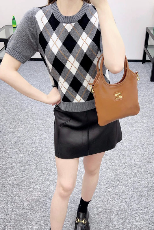 M 25ss Checkered blue two-piece short-sleeved polo shirt