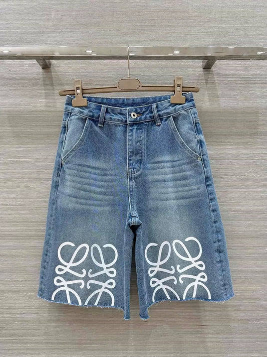 Lo 25 – Neueste klassische Jeansshorts mit monogrammiertem Lederetikett und Verzierung (große Größe)