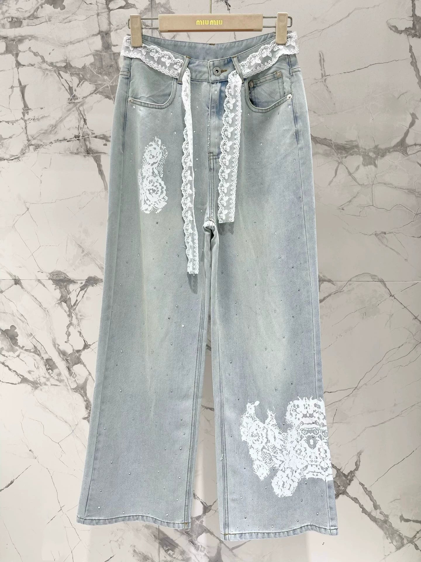 M 25 frühling und sommer neue dünne spitze heißer diamant gerade jeans