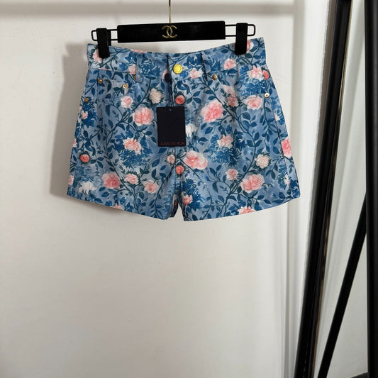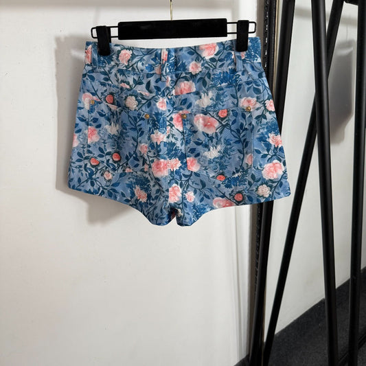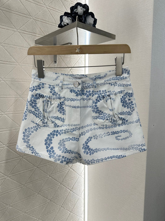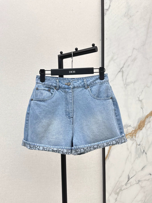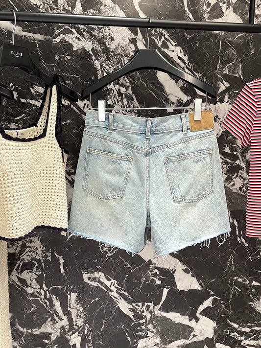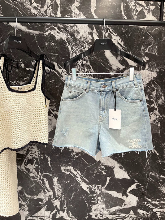 CE 25Ss spring and summer new logo embroidered burlap ripped denim shorts
