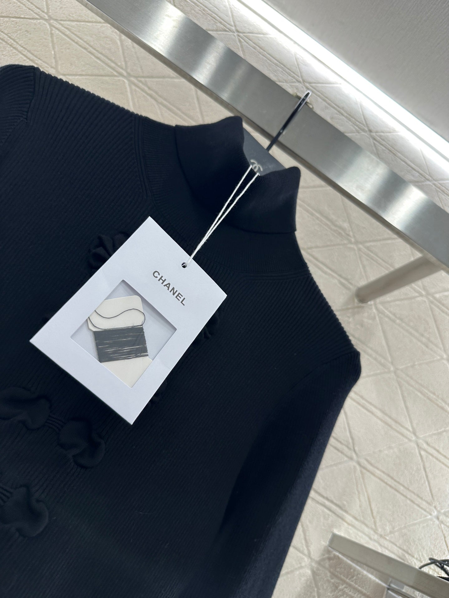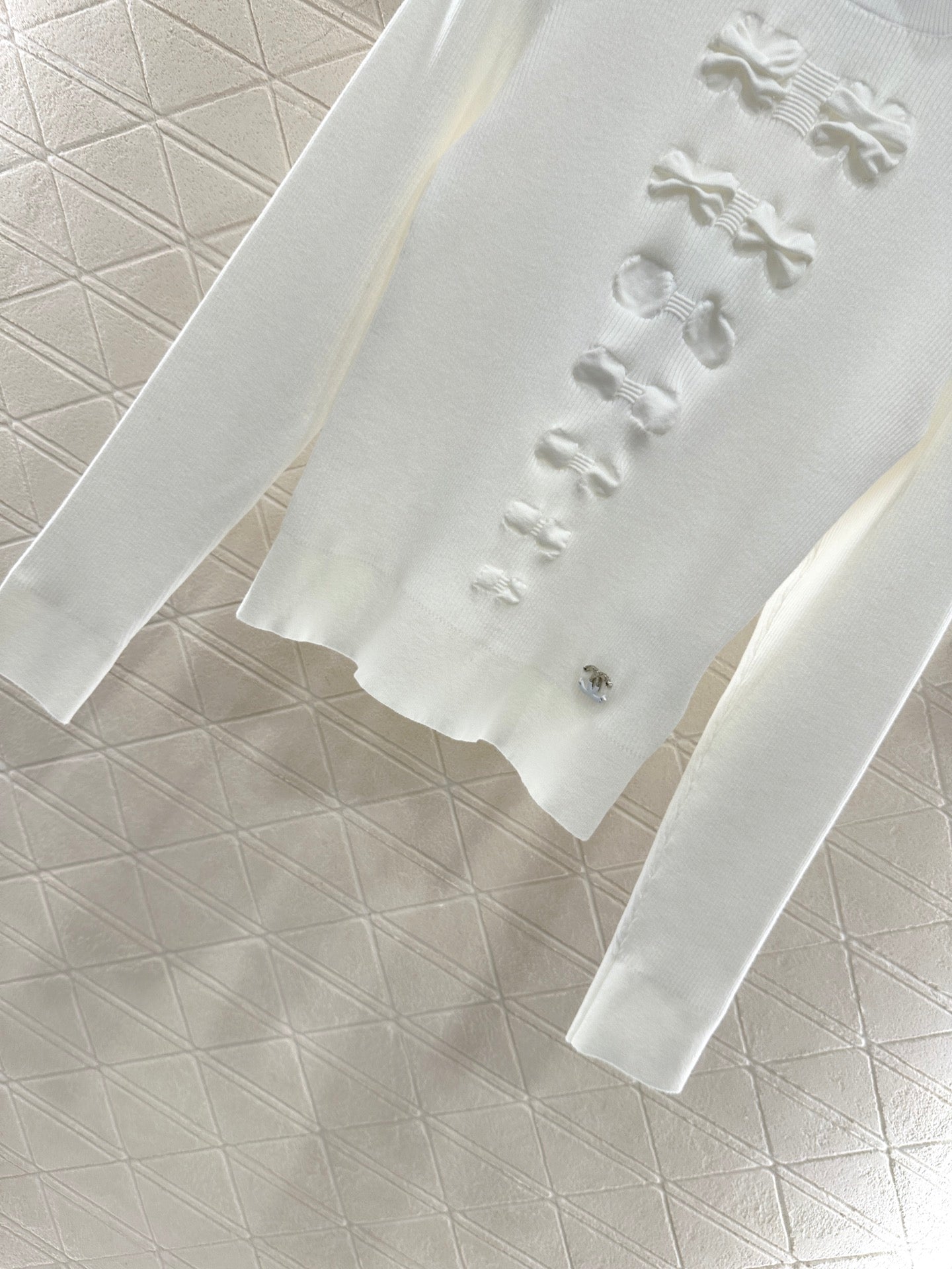 C 25 Bow tie high neck long sleeved sweater(WHITE/BLACK)