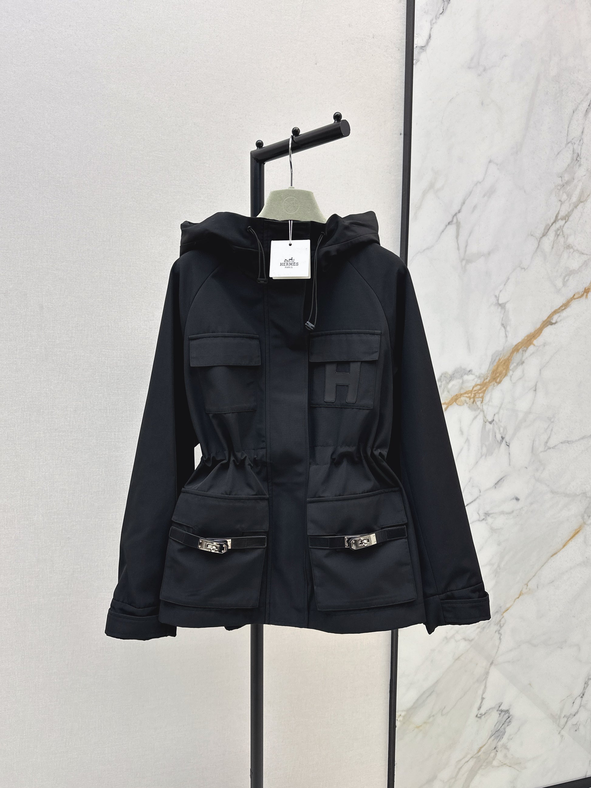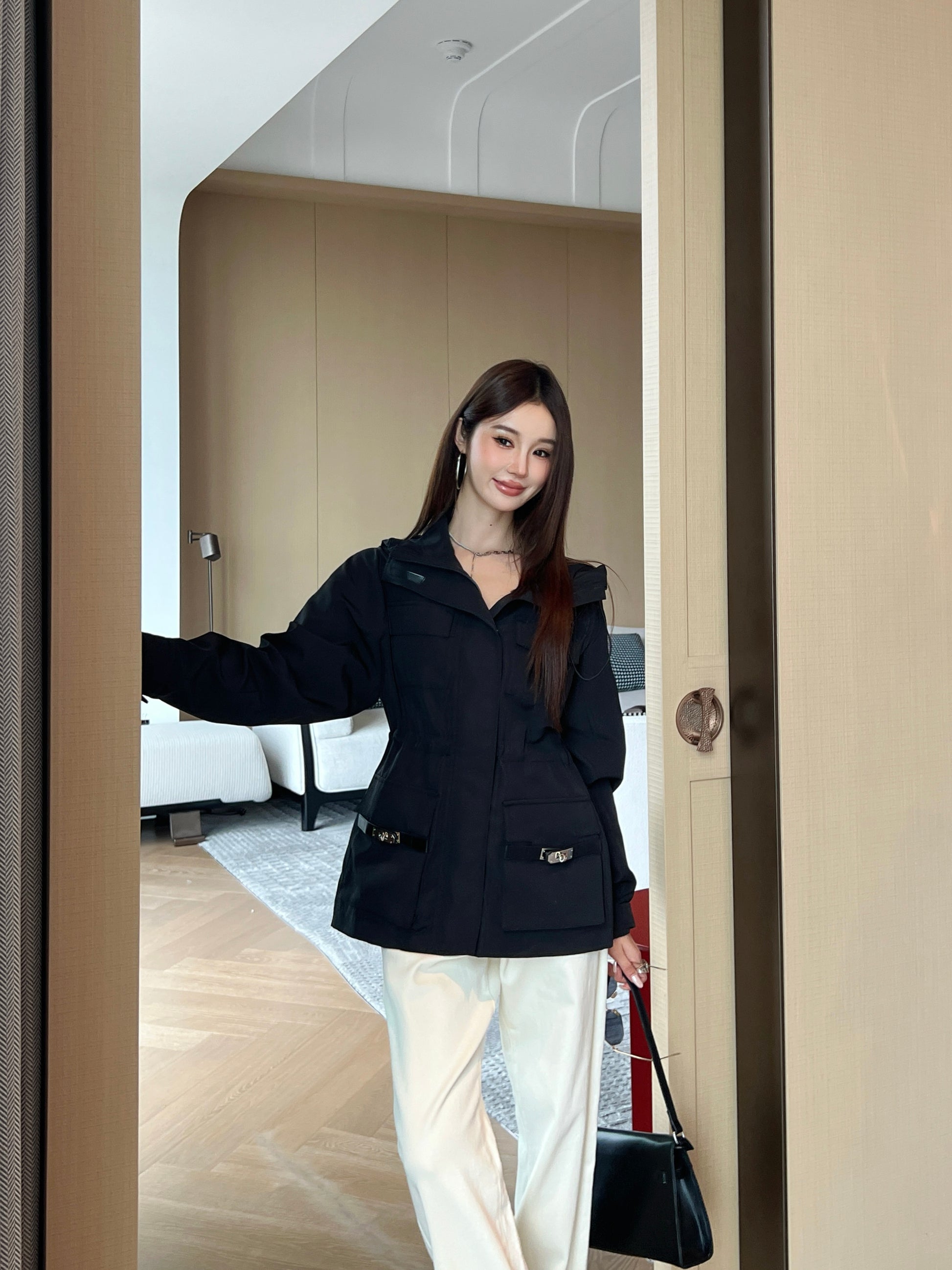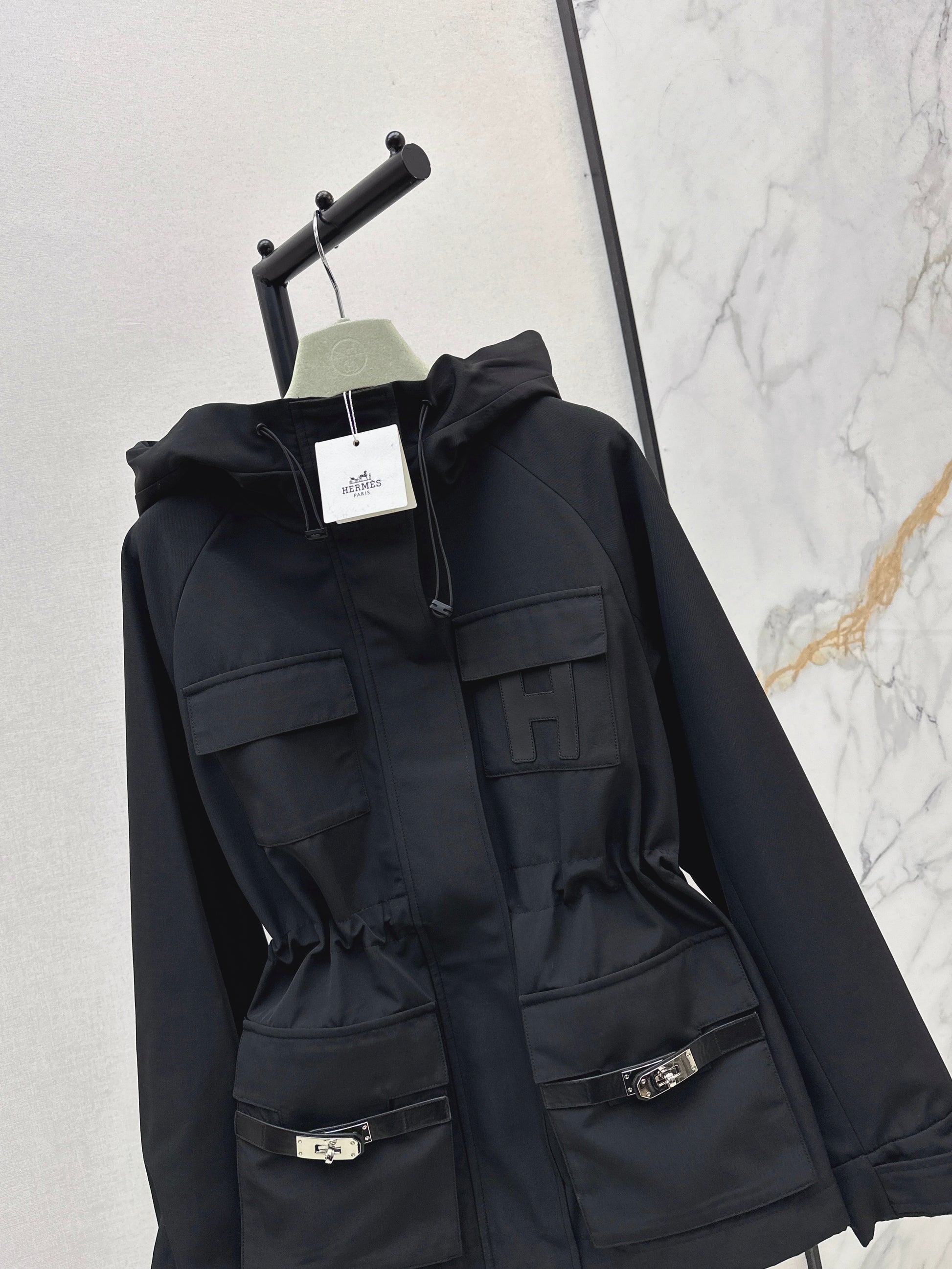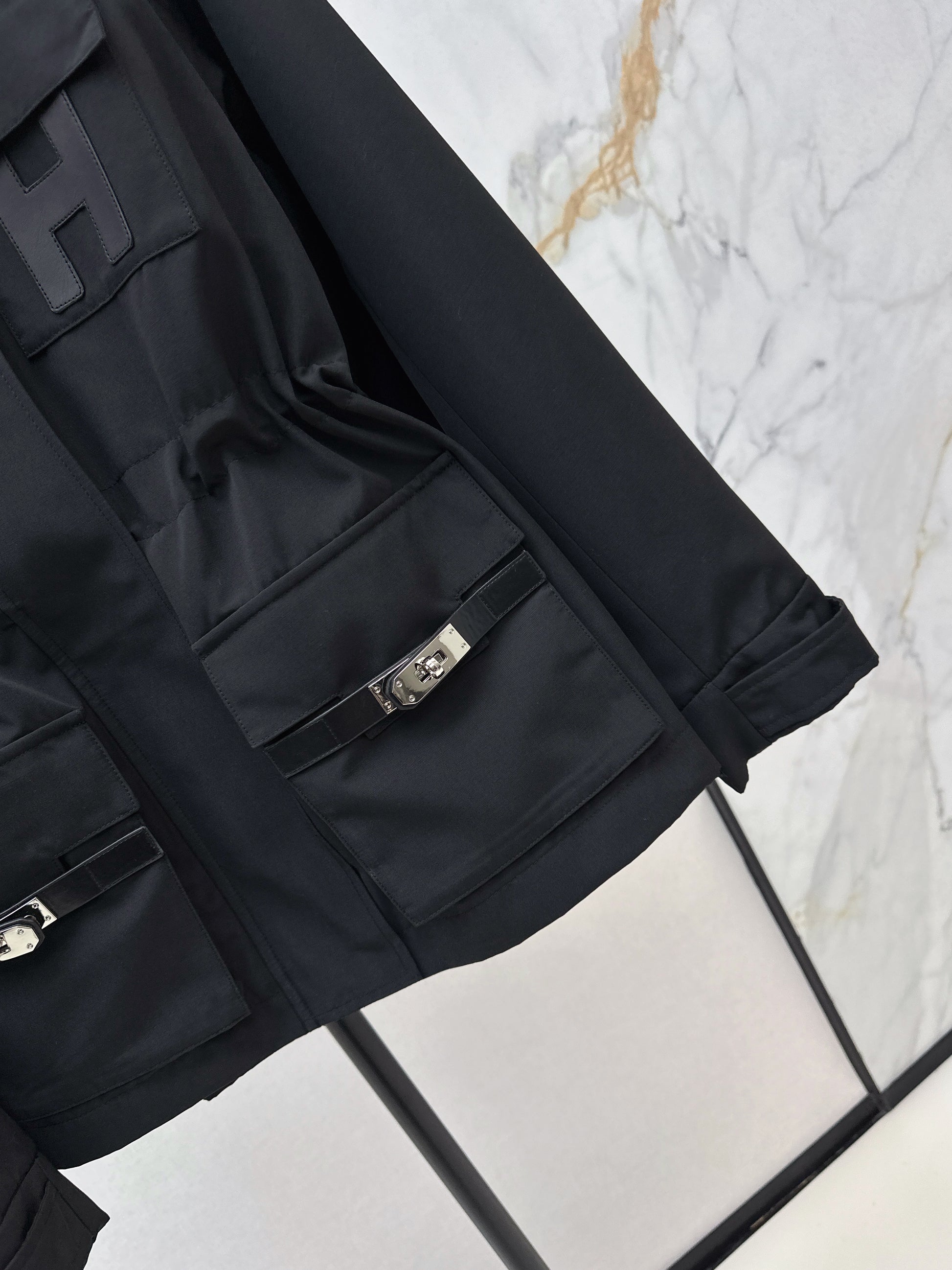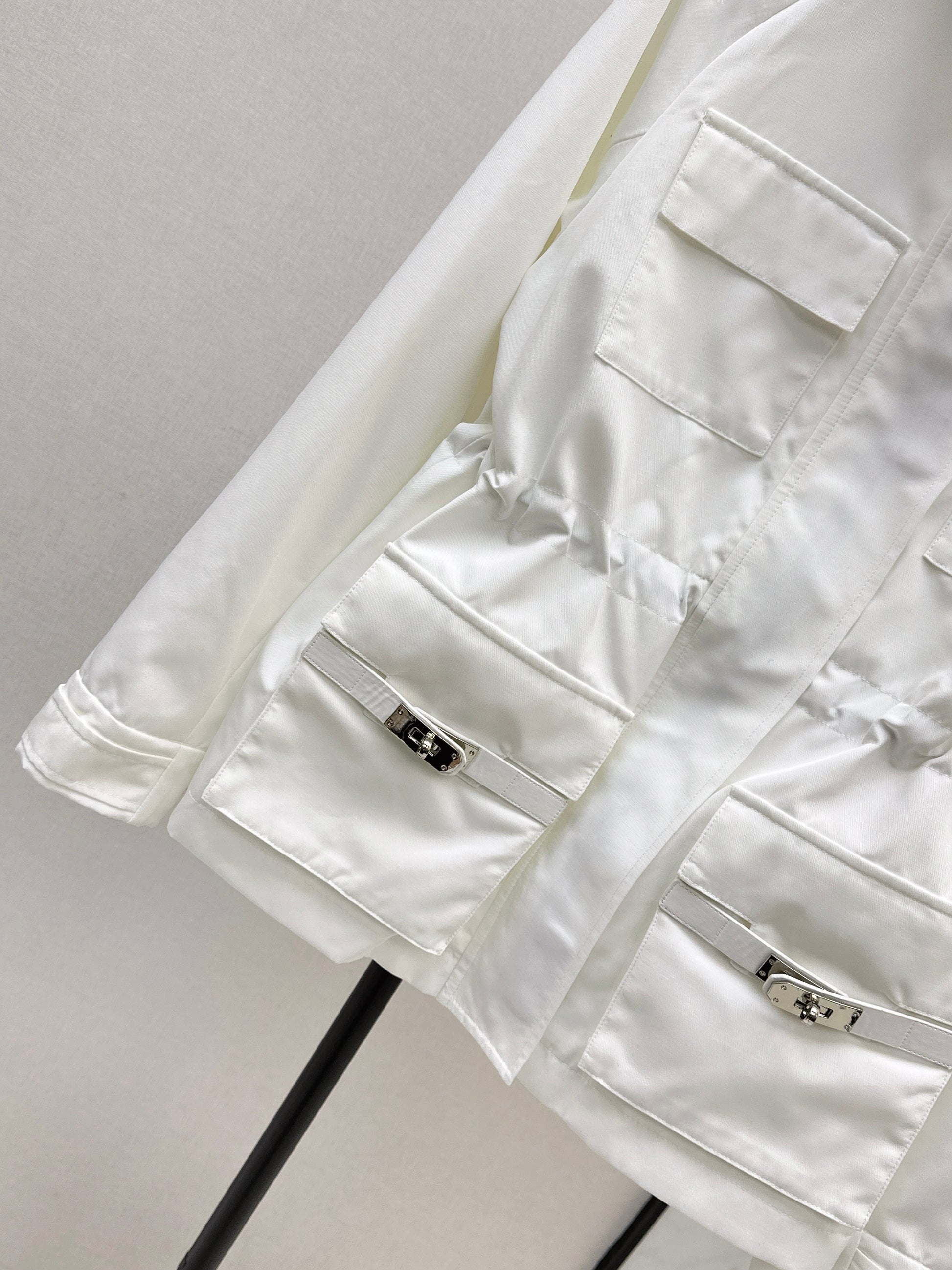 He 25fw Workwear style hooded windbreaker jacket(WHITE/BLACK)
