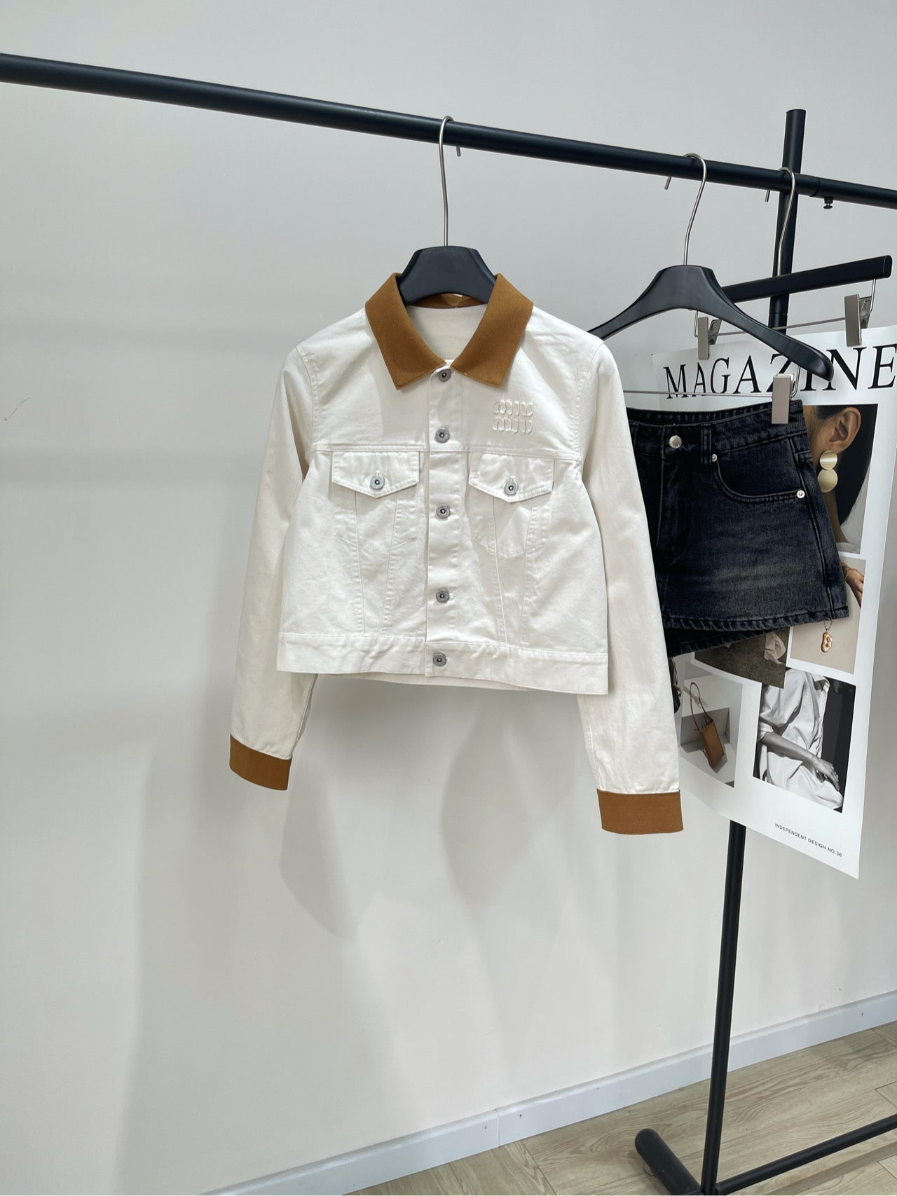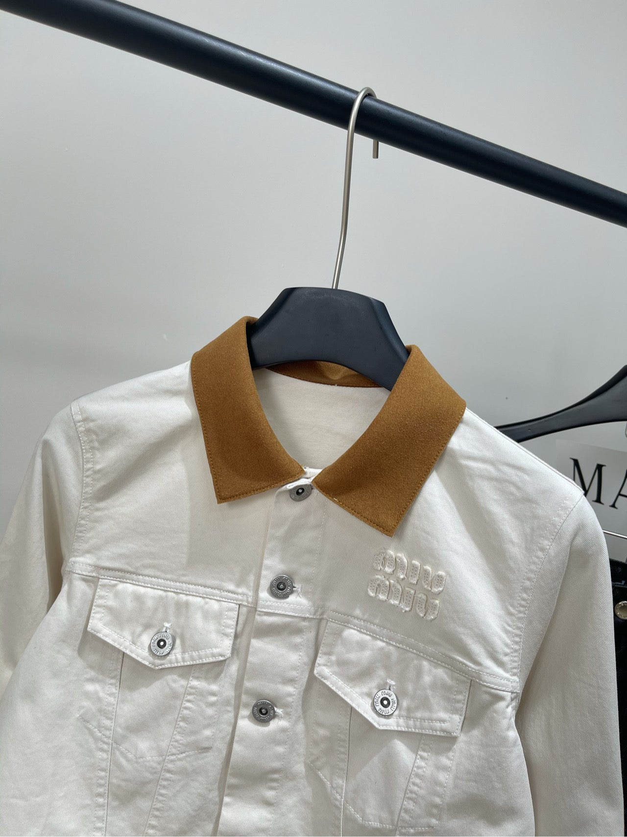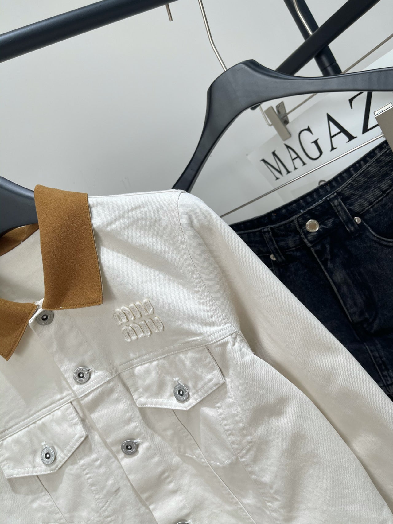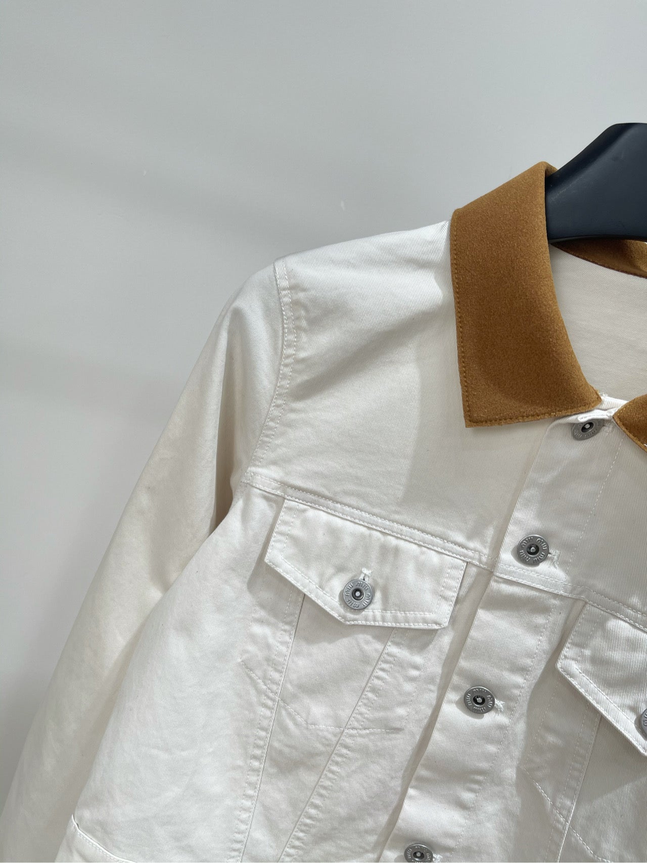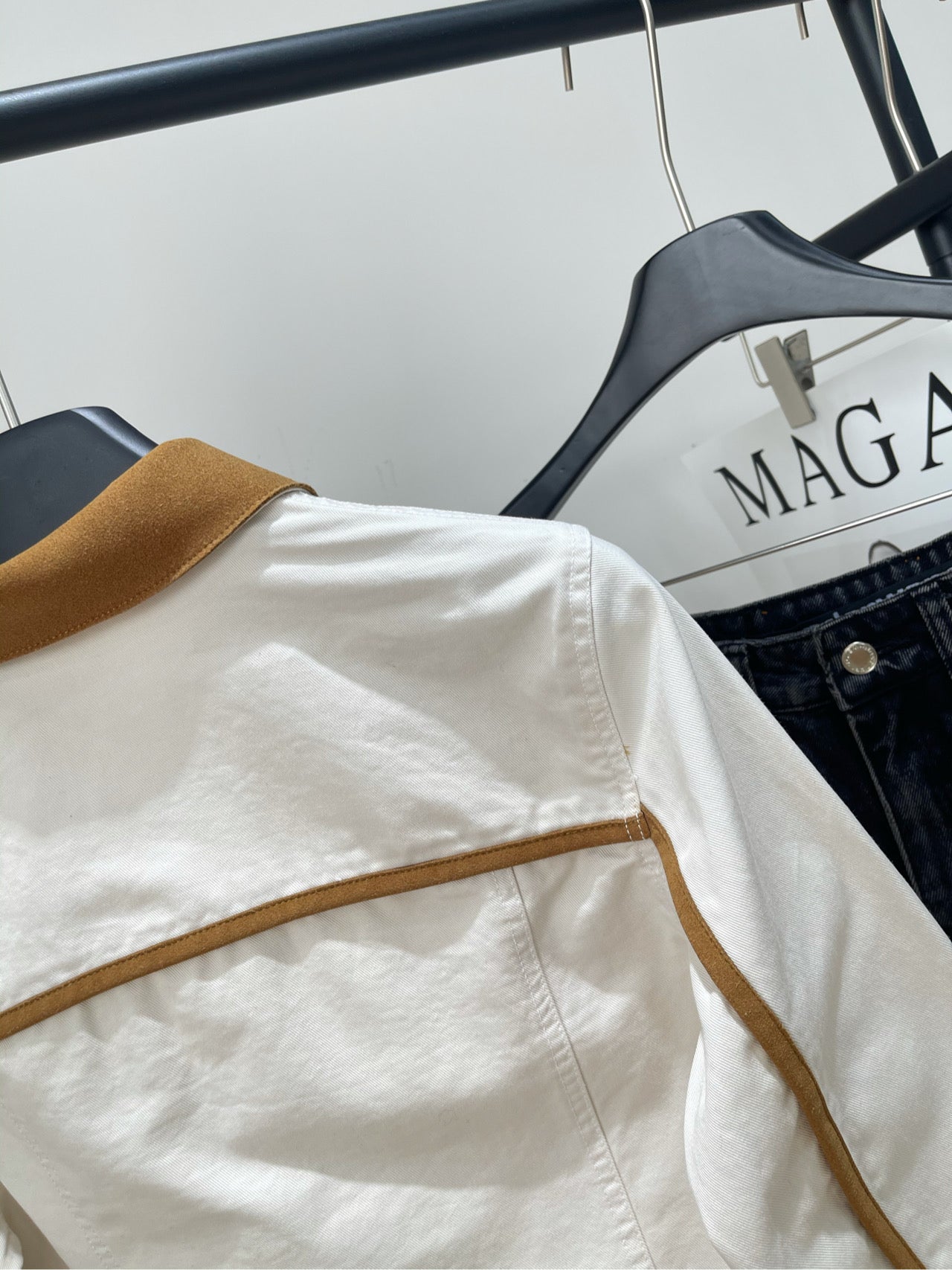 Shirt-style collar/button cuffs/matching stitching low-position welt pockets