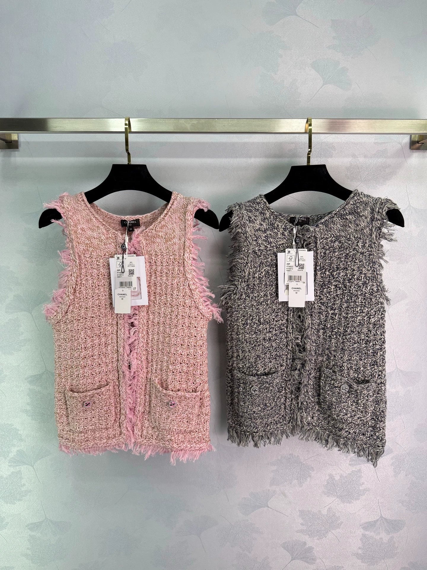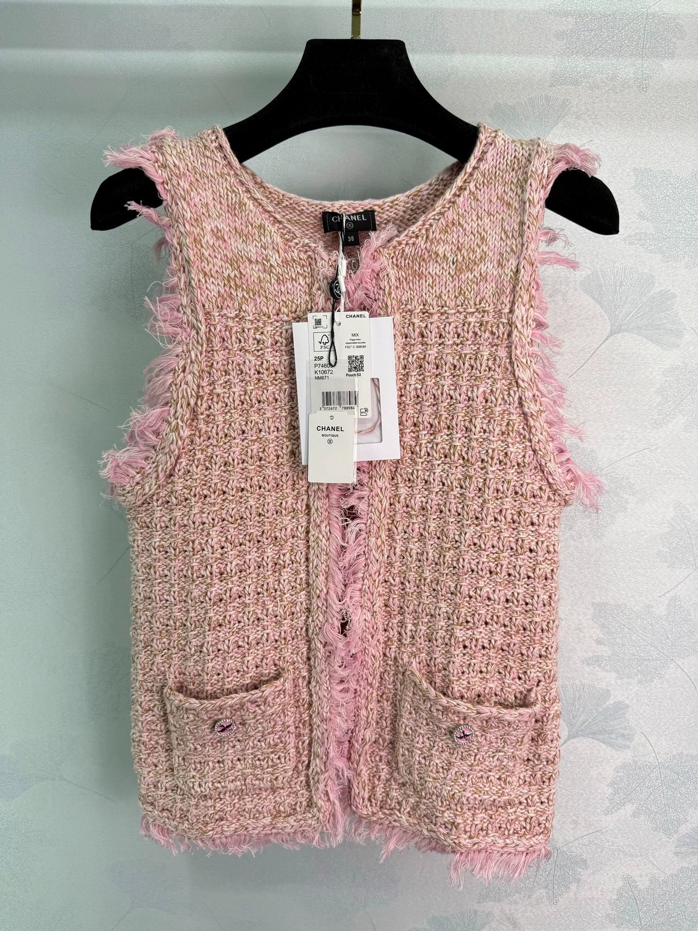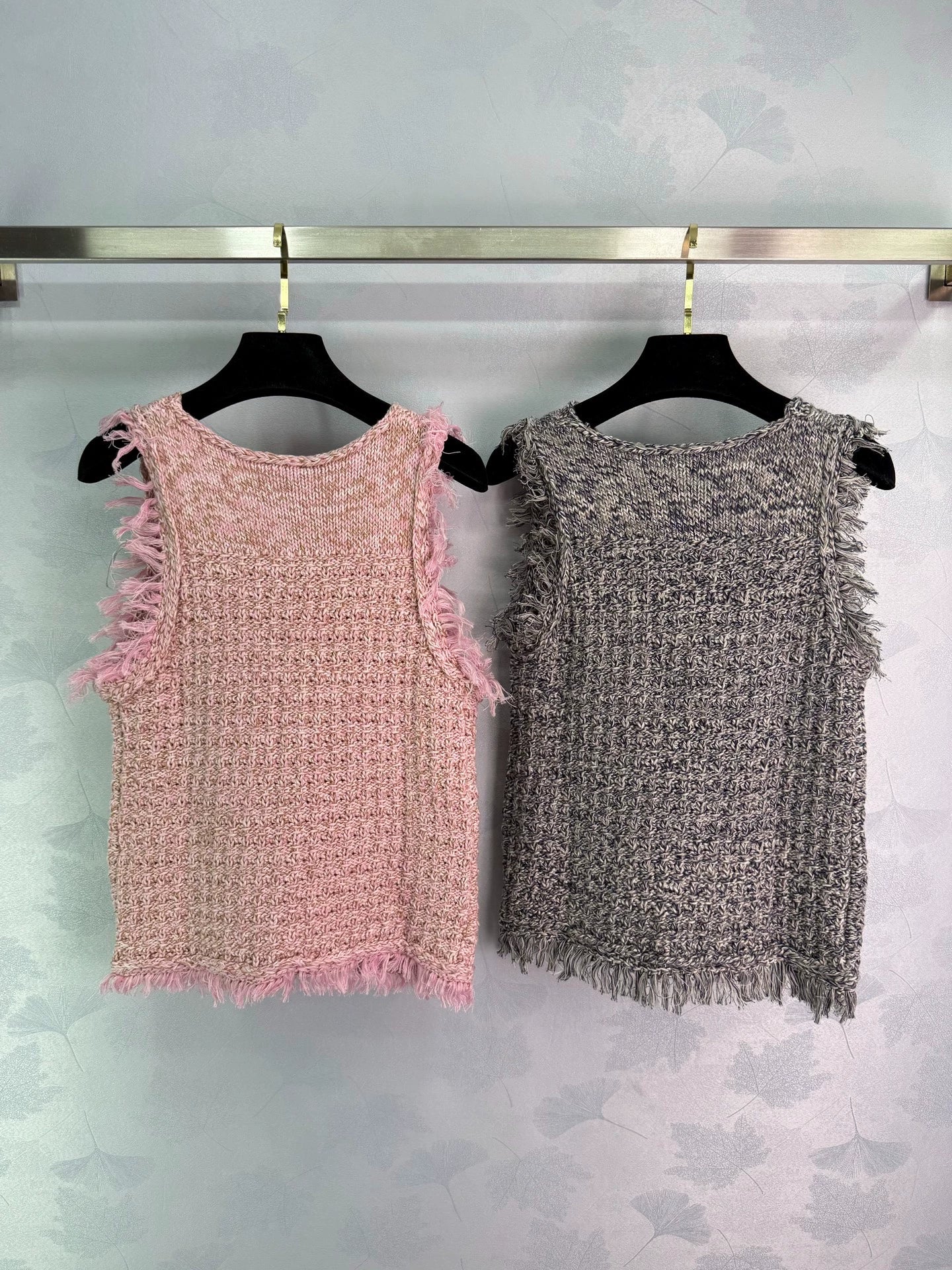 2025 Summer New Round Neck Raw Edge Knitted Vest