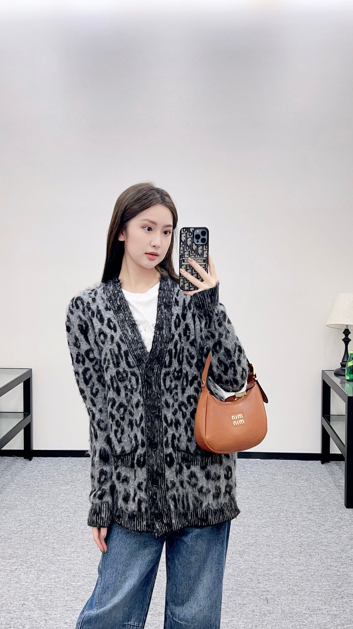 25 Leopard-print pocket knitted cardigan