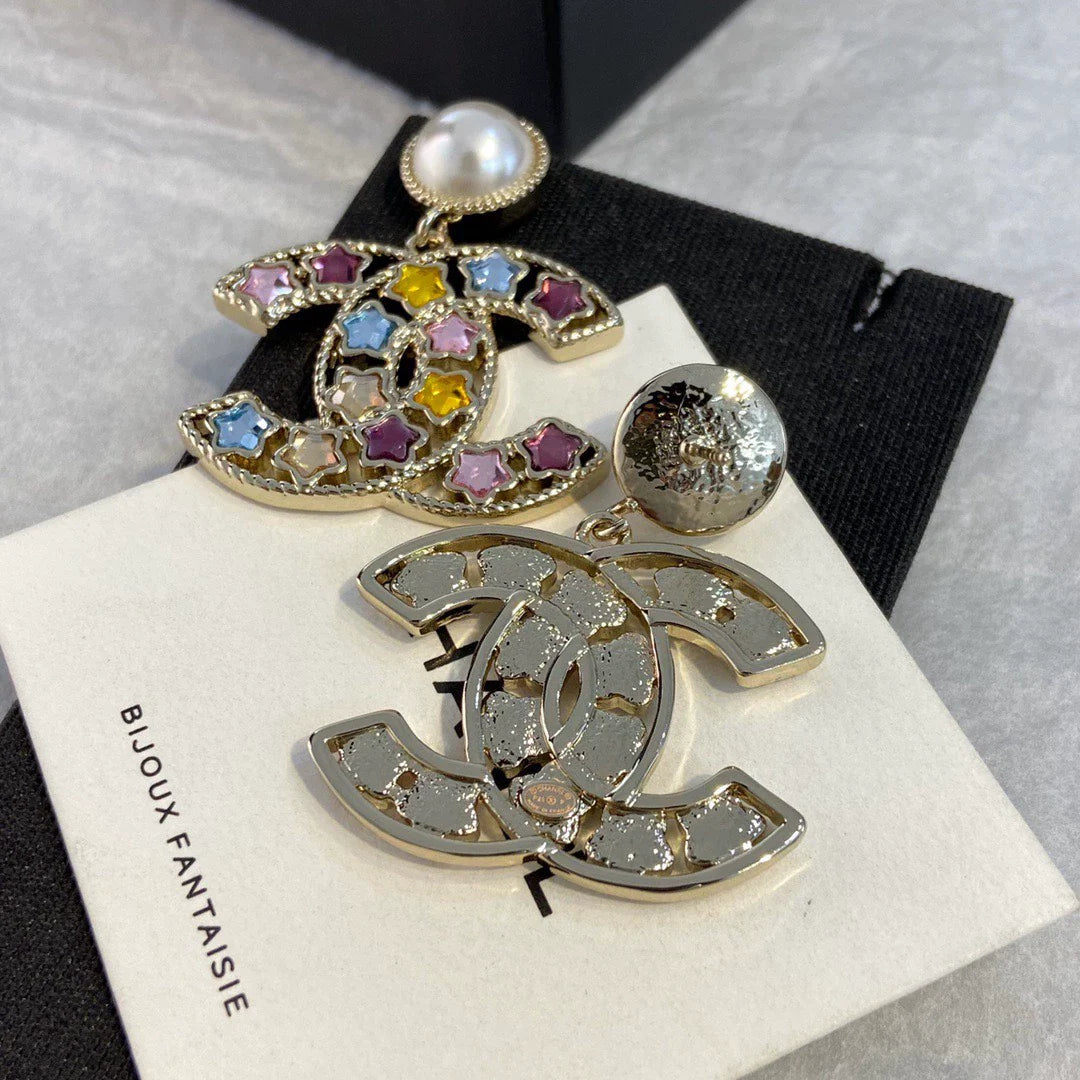 Very suitable for matching with various small skirts in summer. Super beautiful design. With steel stamp. The hollow double C is decorated with a string of colorful crystals. The energetic and lovely summer dopamine color is so beautiful.