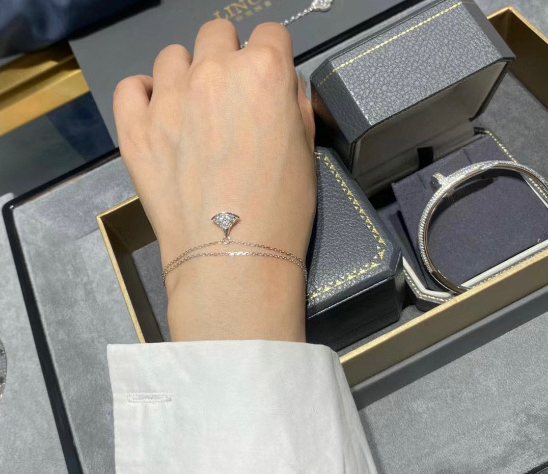 925 Sterling Silver Electroplated 18k Diamond Set Scalloped Skirt Full Diamond Bracelet