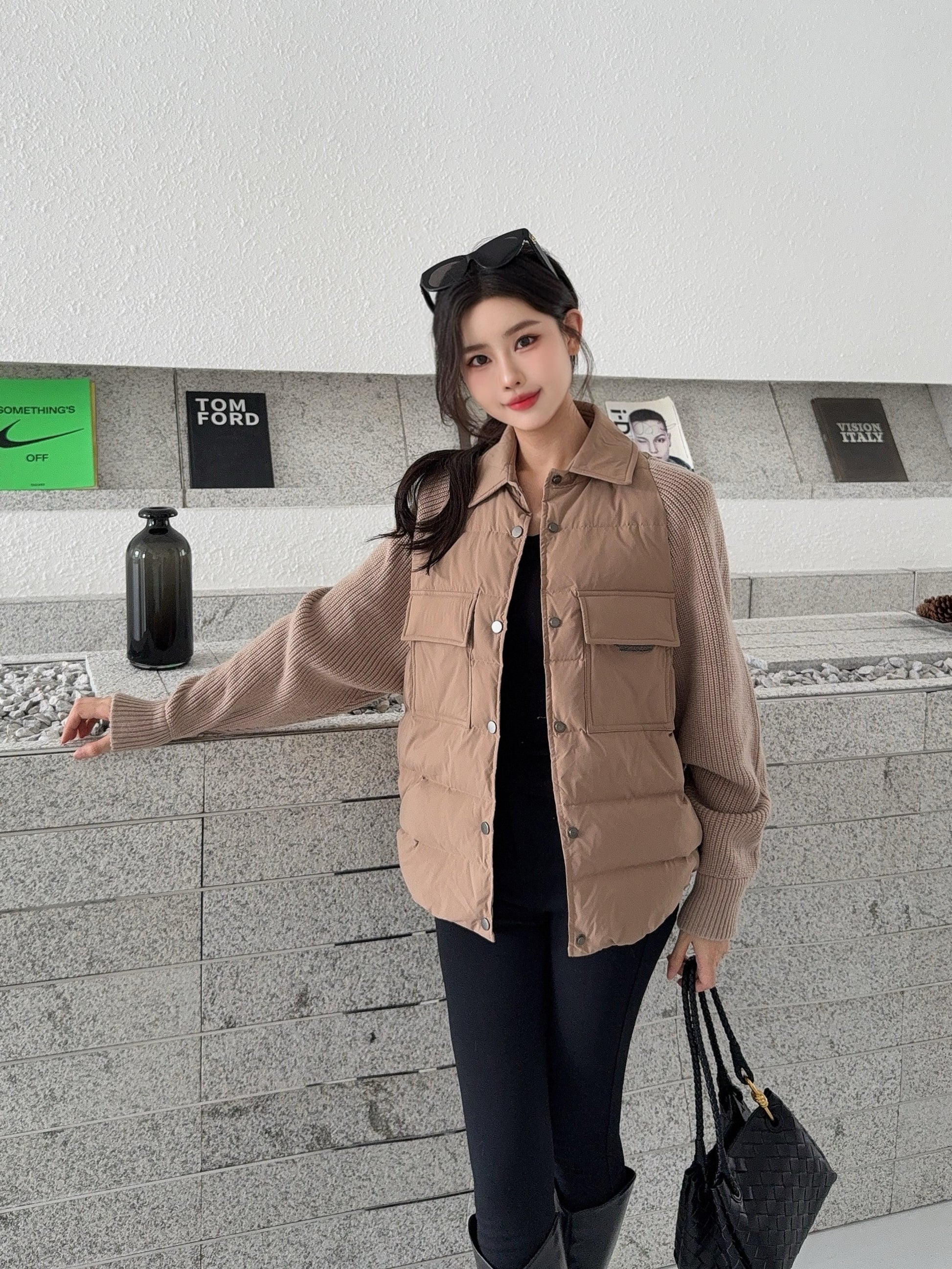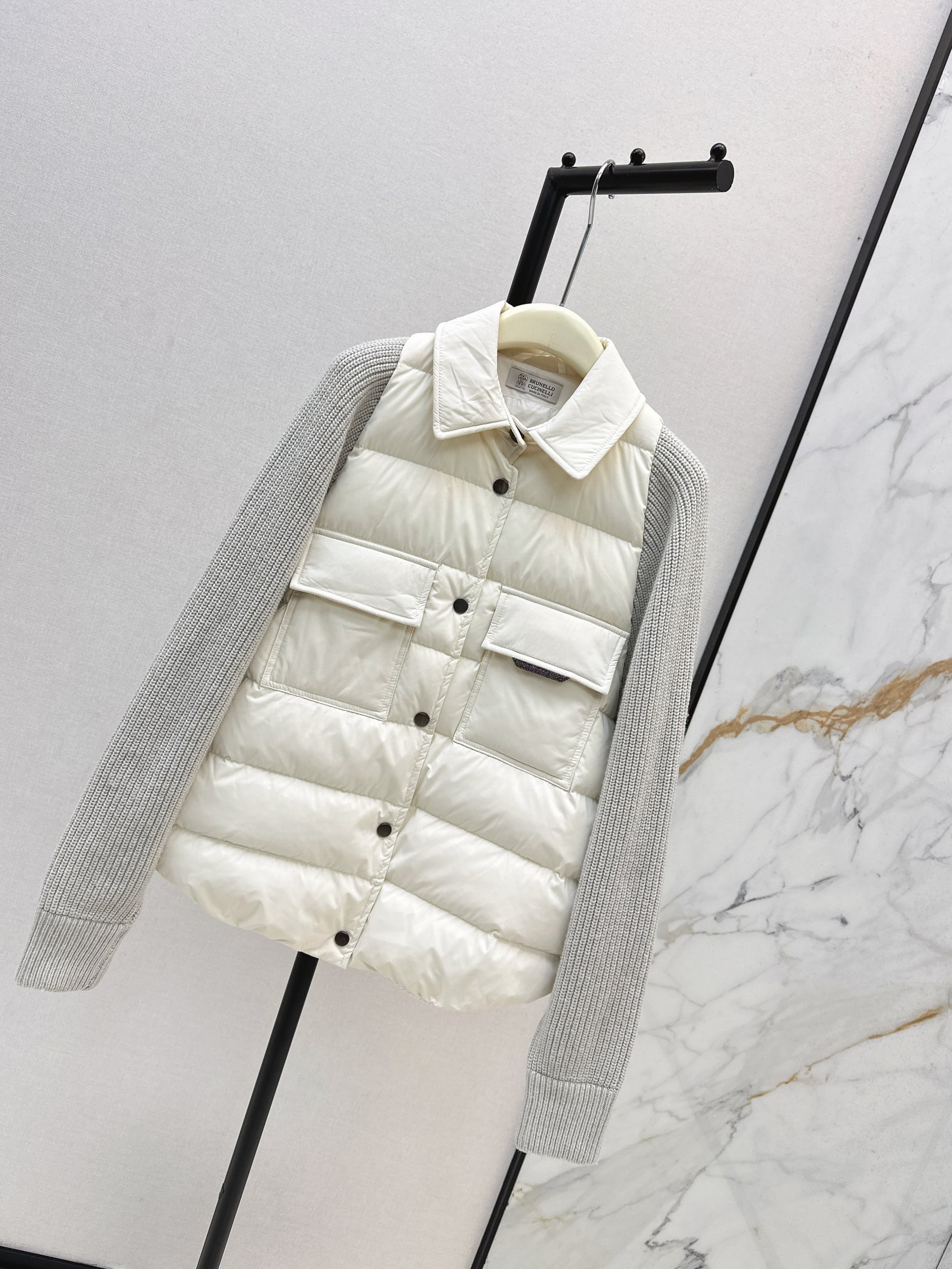 Bru 25 New Knit Sleeve Down Jacket(WHITE/BROWN)