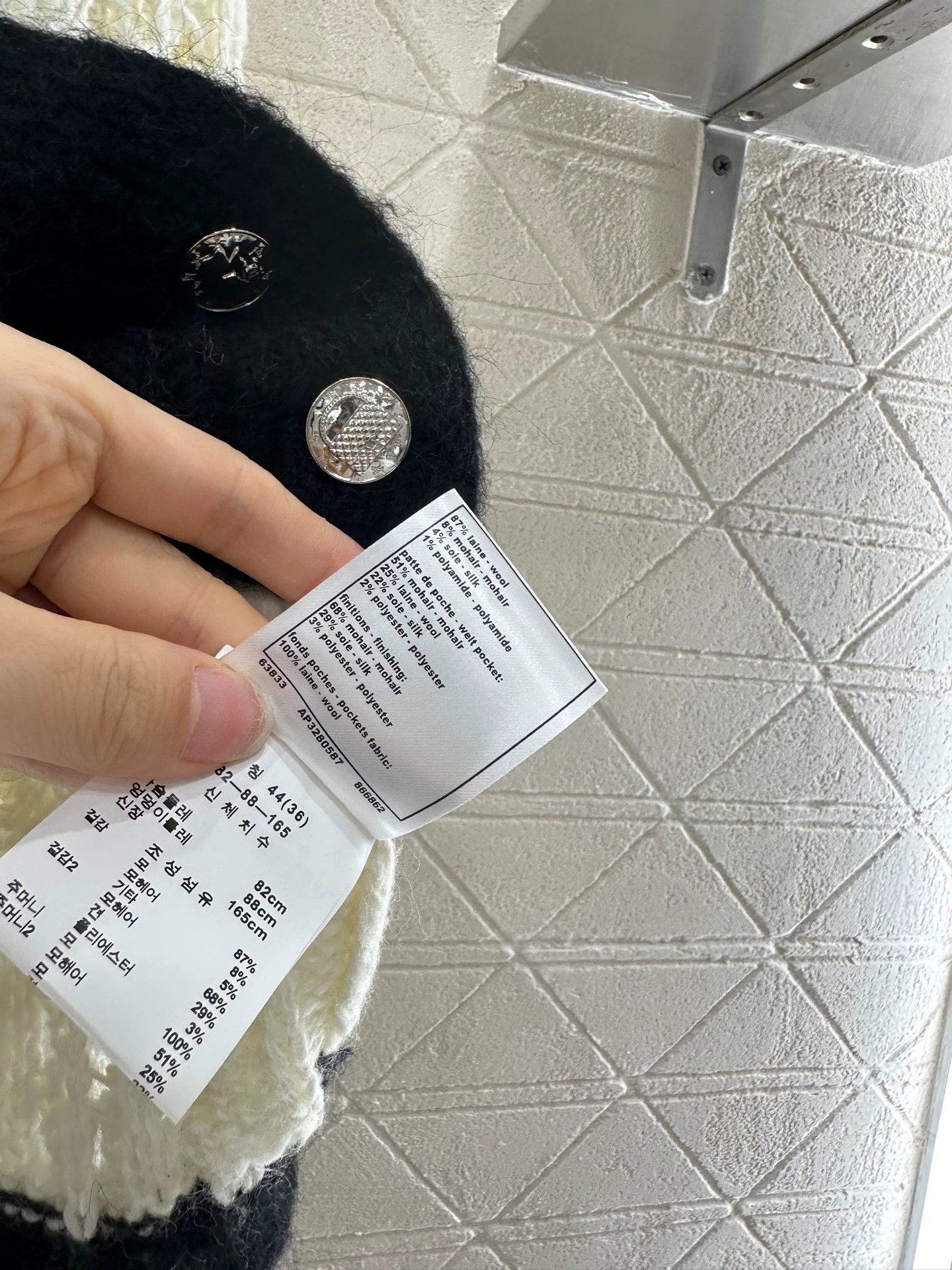 Crafted from custom YB wool yarn, this cardigan is soft and comfortable, offering a stylish, slimming look. The V-neck silhouette extends to the front, creating a contrasting black and white color scheme. The cuffs and hem echo the contours, creating a defined silhouette. The cardigan features multiple cable crochet stitches throughout. This cardigan is incredibly refined and versatile, offering a wide range of stylish options. The embossed buttons showcase the brand's signature style, creating an elegant, relaxed, and stylish look with any outfit. It comes with a sophisticated, lace-up dust bag. Custom fabrics and accessories are available. Look for the latest version.