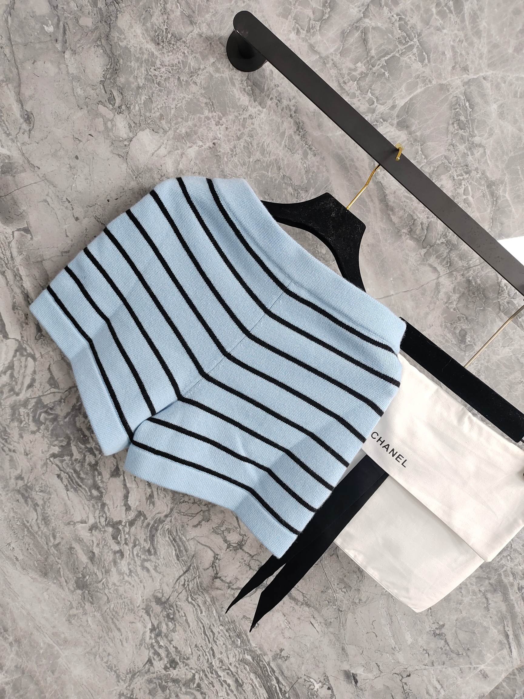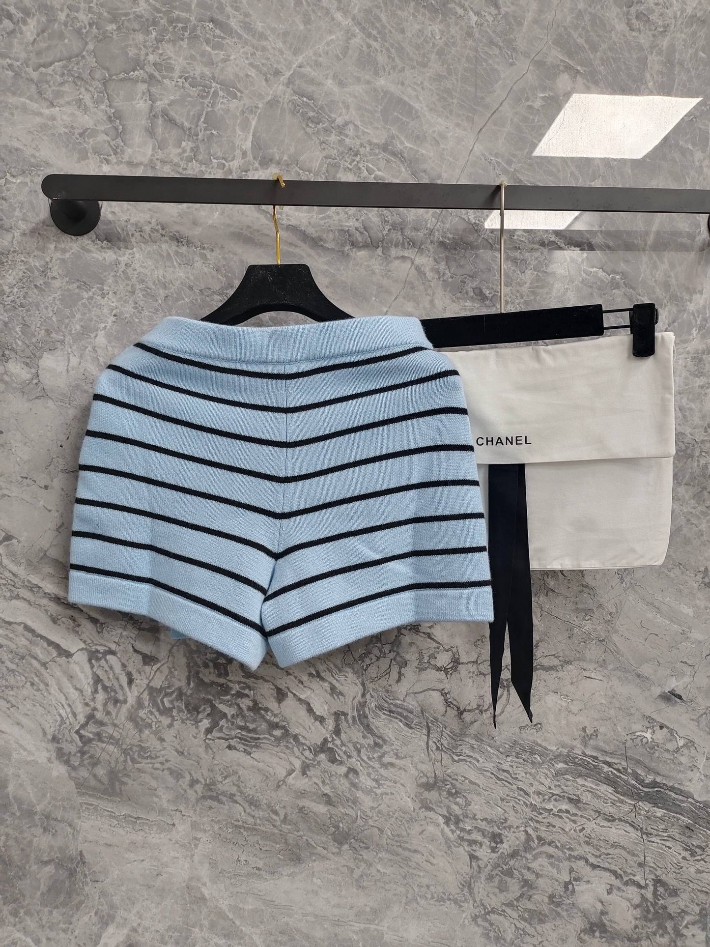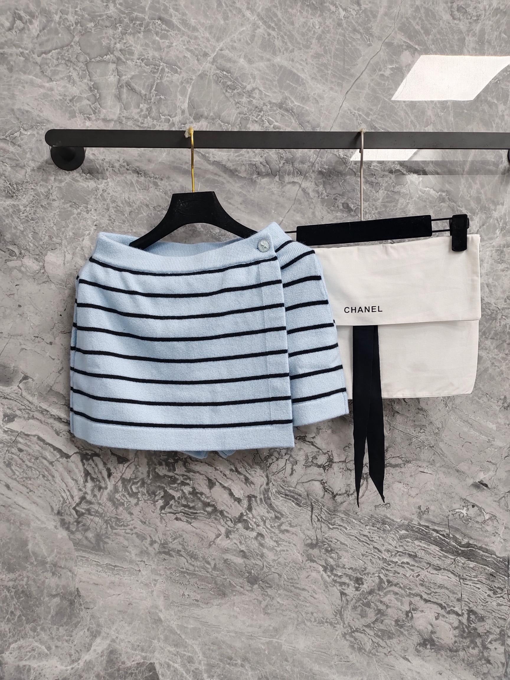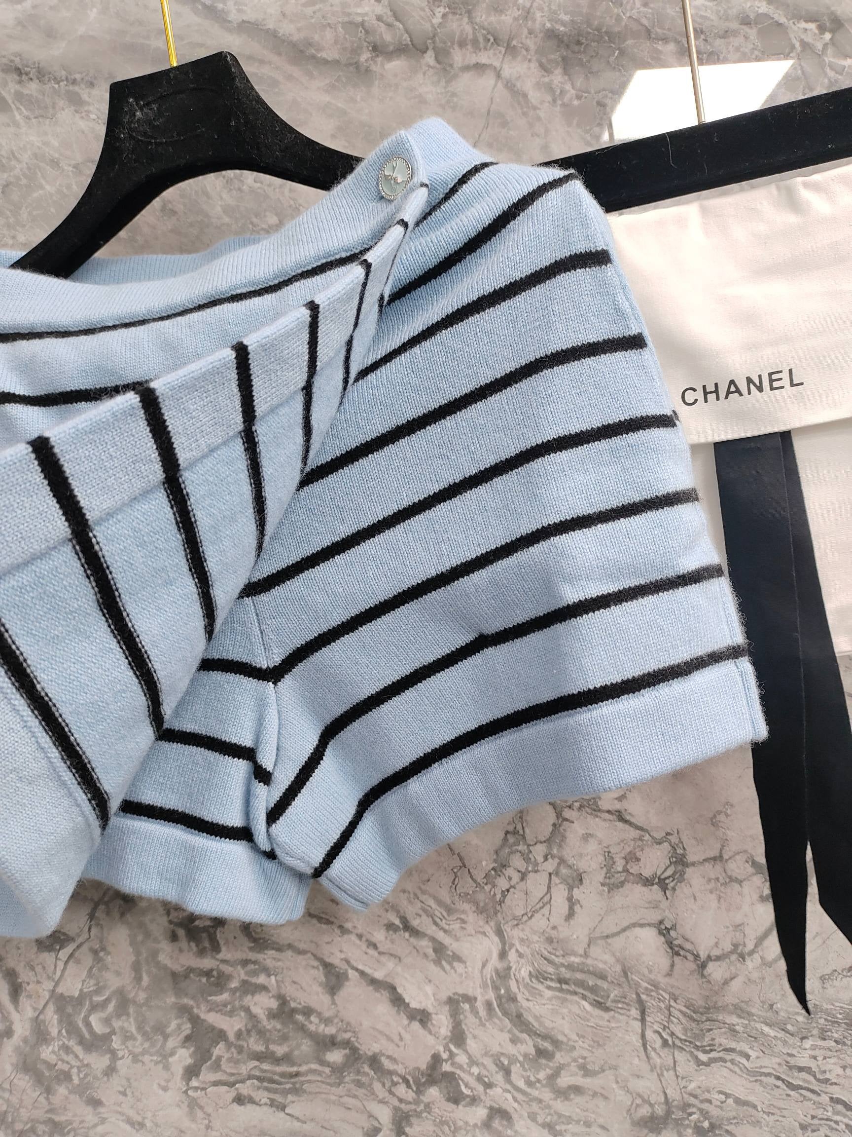C 25 Light blue and black striped Swallow buttons short skirt