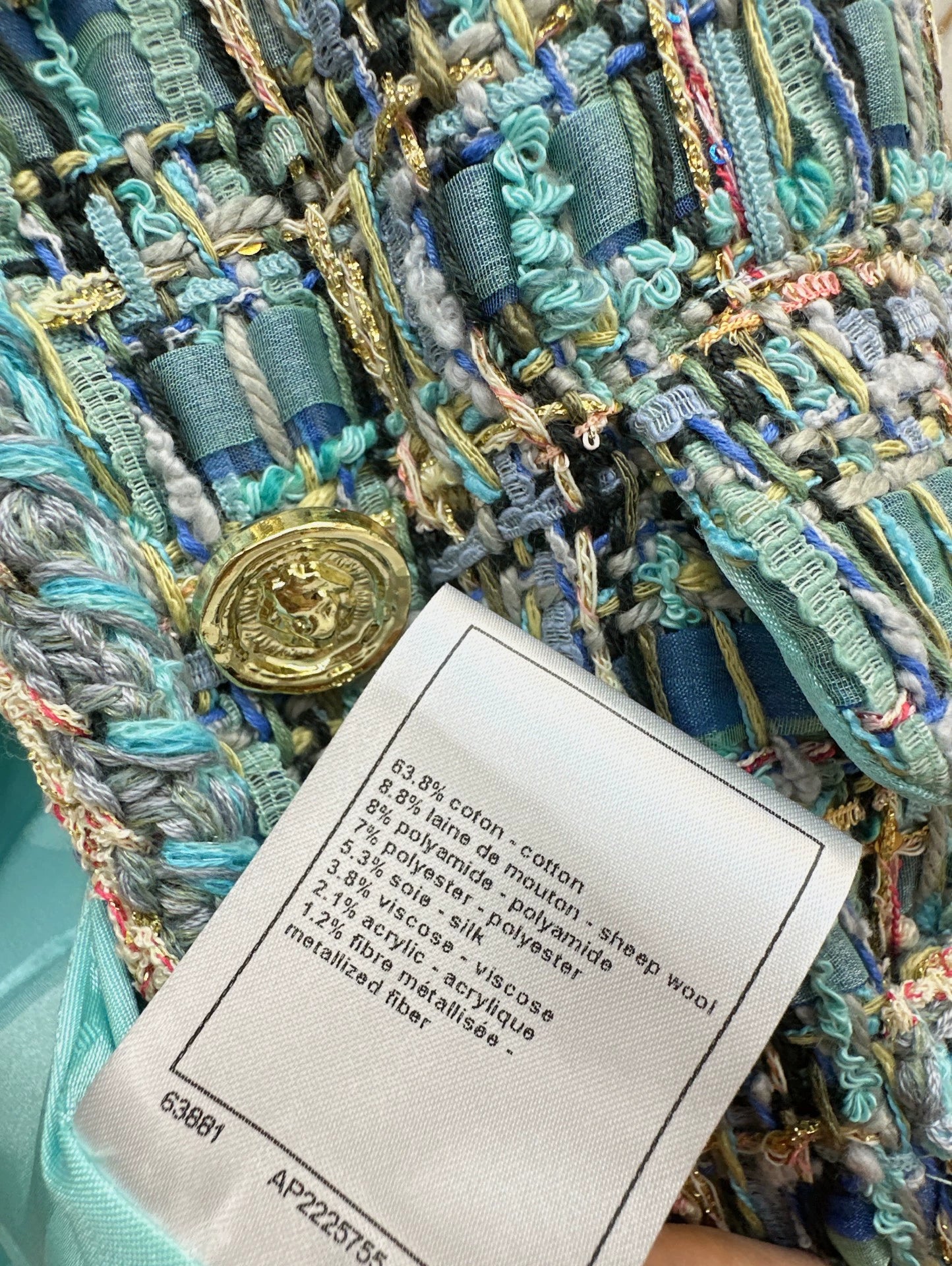 Imported imitation wool material, obvious texture, visible to the naked eye, high quality, coarse checkered wool fabric creates a model of celebrity style, single row of heavy-duty round buttons on the front, exquisite aqua blue woven texture, interspersed with colorful threads, lively and elegant, exquisite woven binding edge extends from the neckline to the front, rich design layering, full of temperament, the first choice for fashionable wear