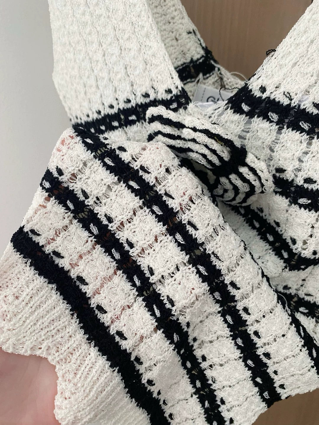 c 25 New Floral Embellished Decorative Striped Knit Tank Top