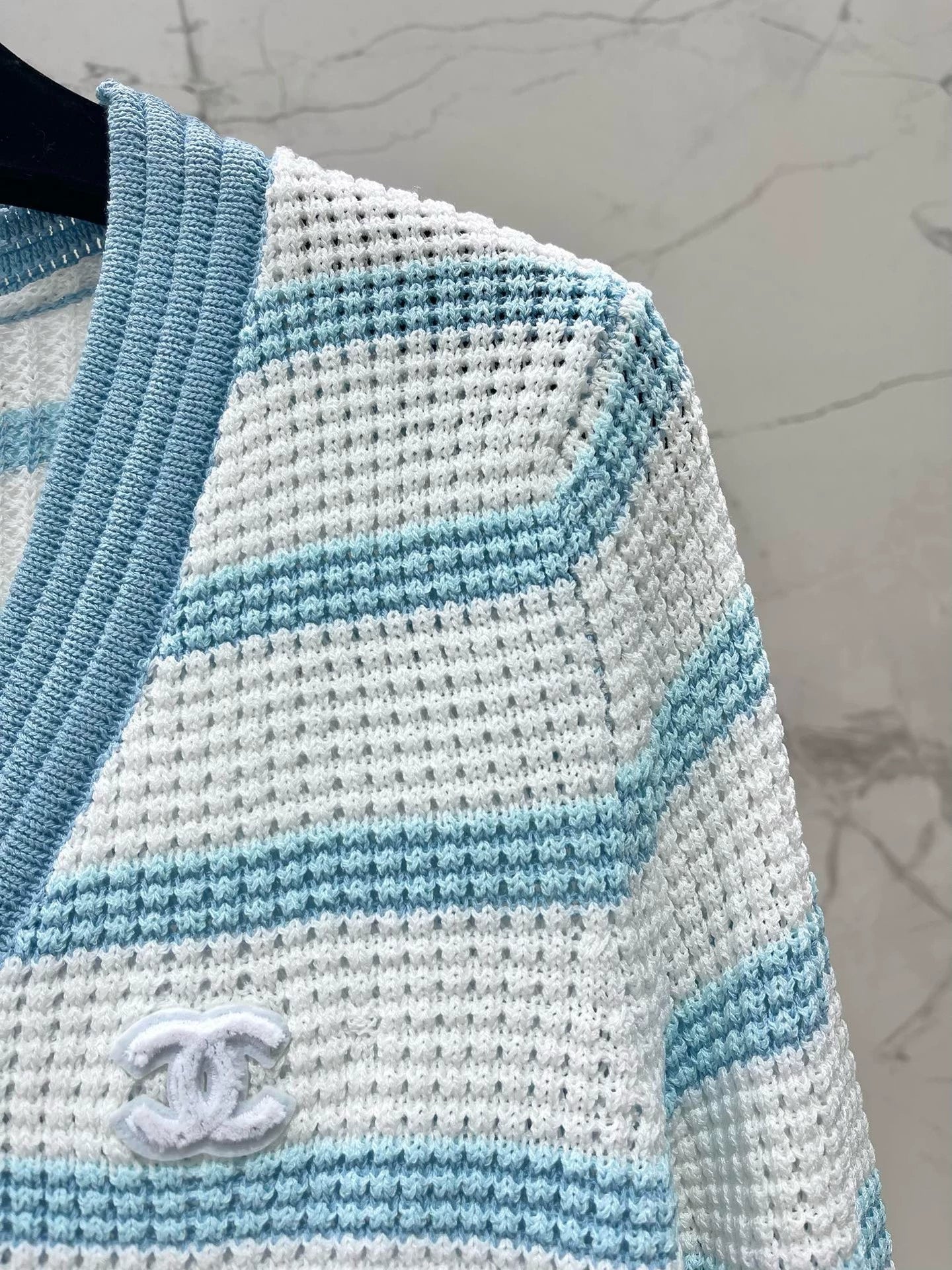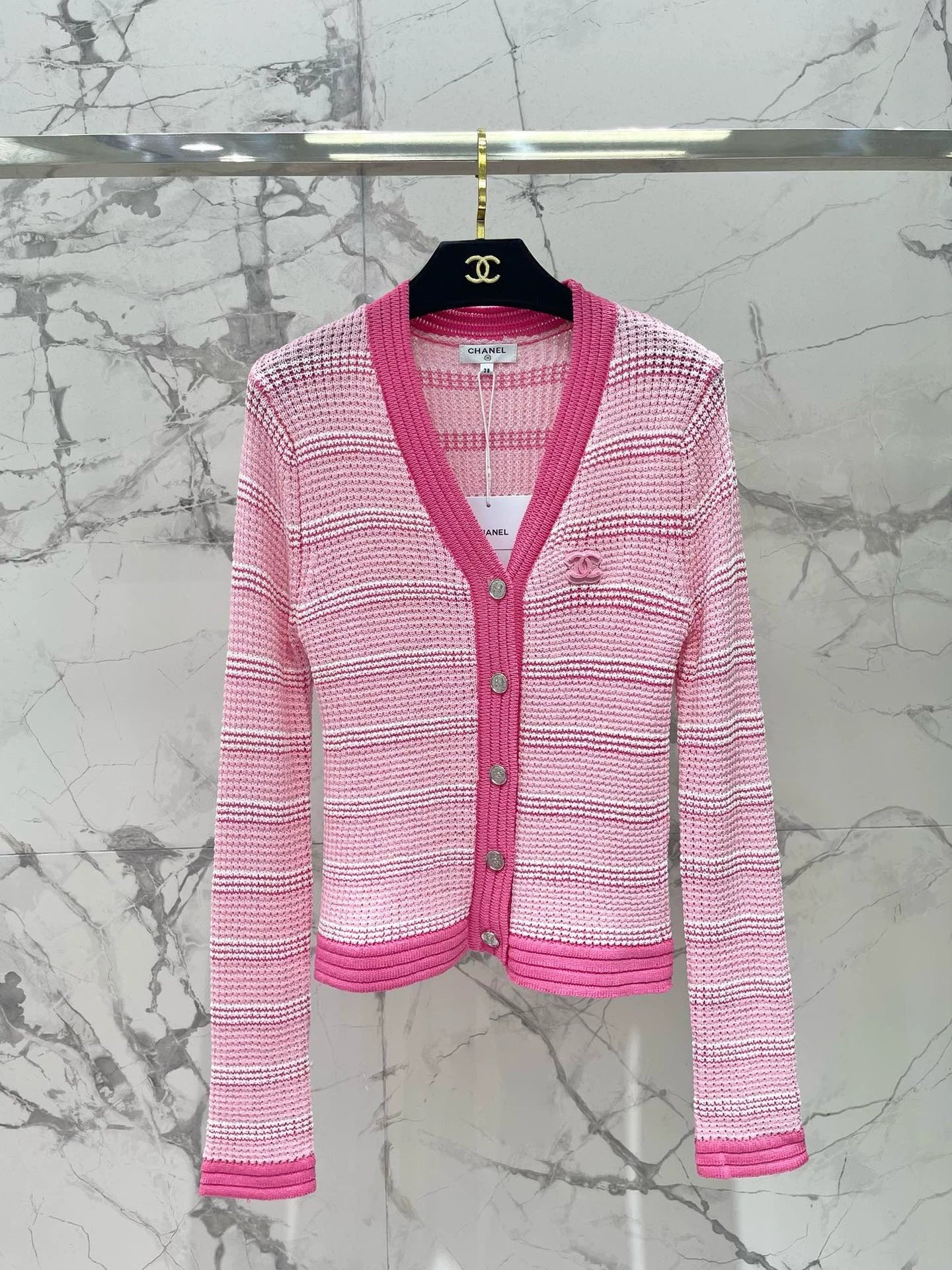 C 25 new hollow color matching striped knitted cardigan