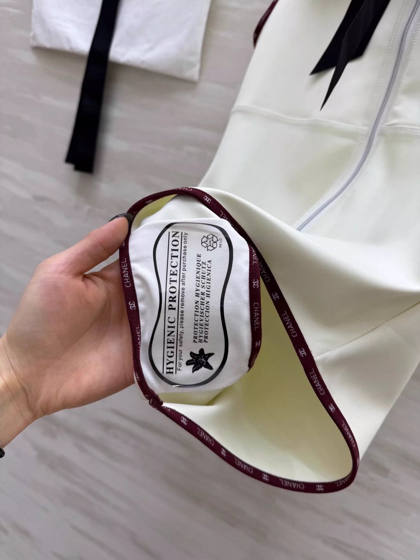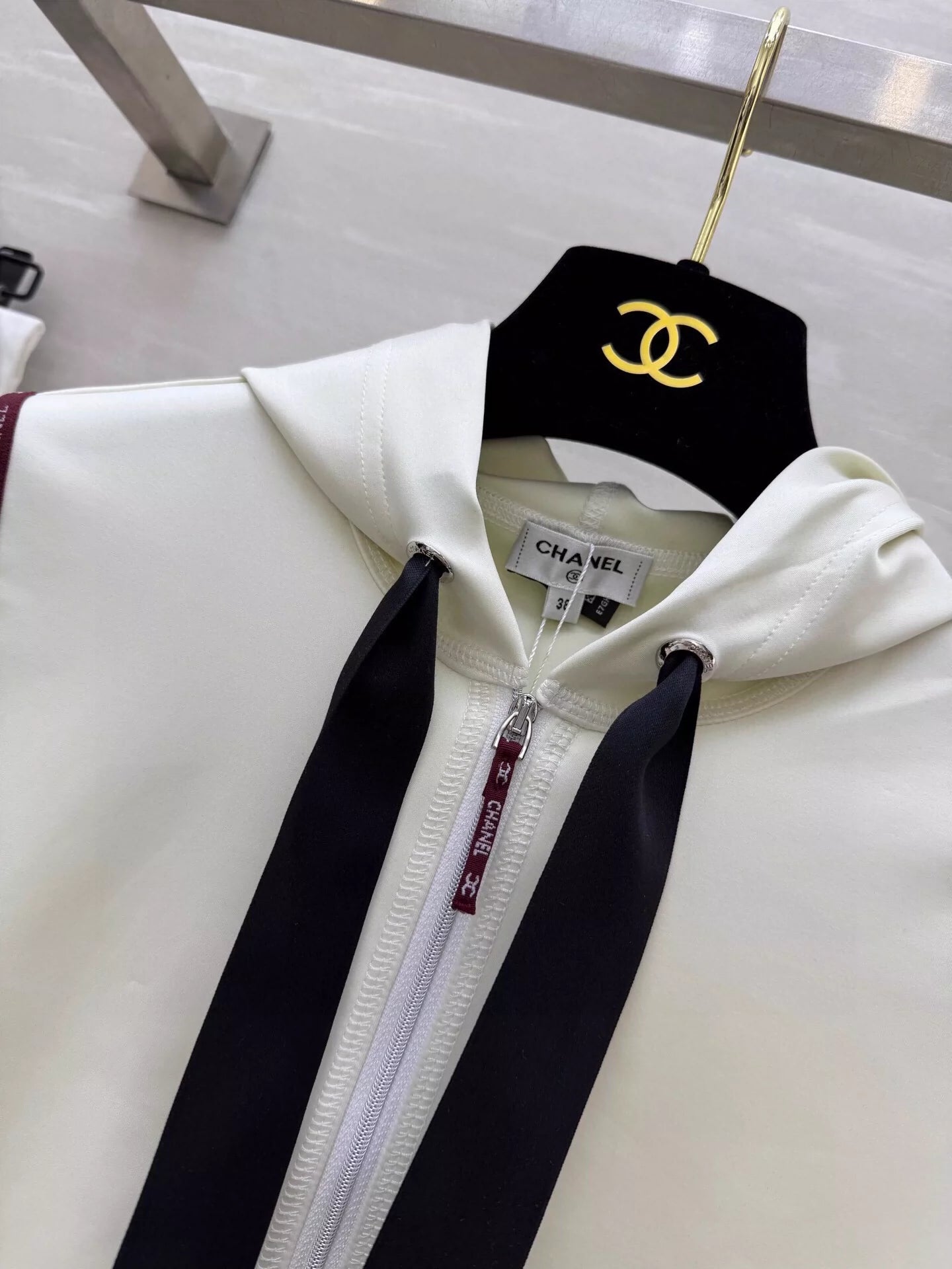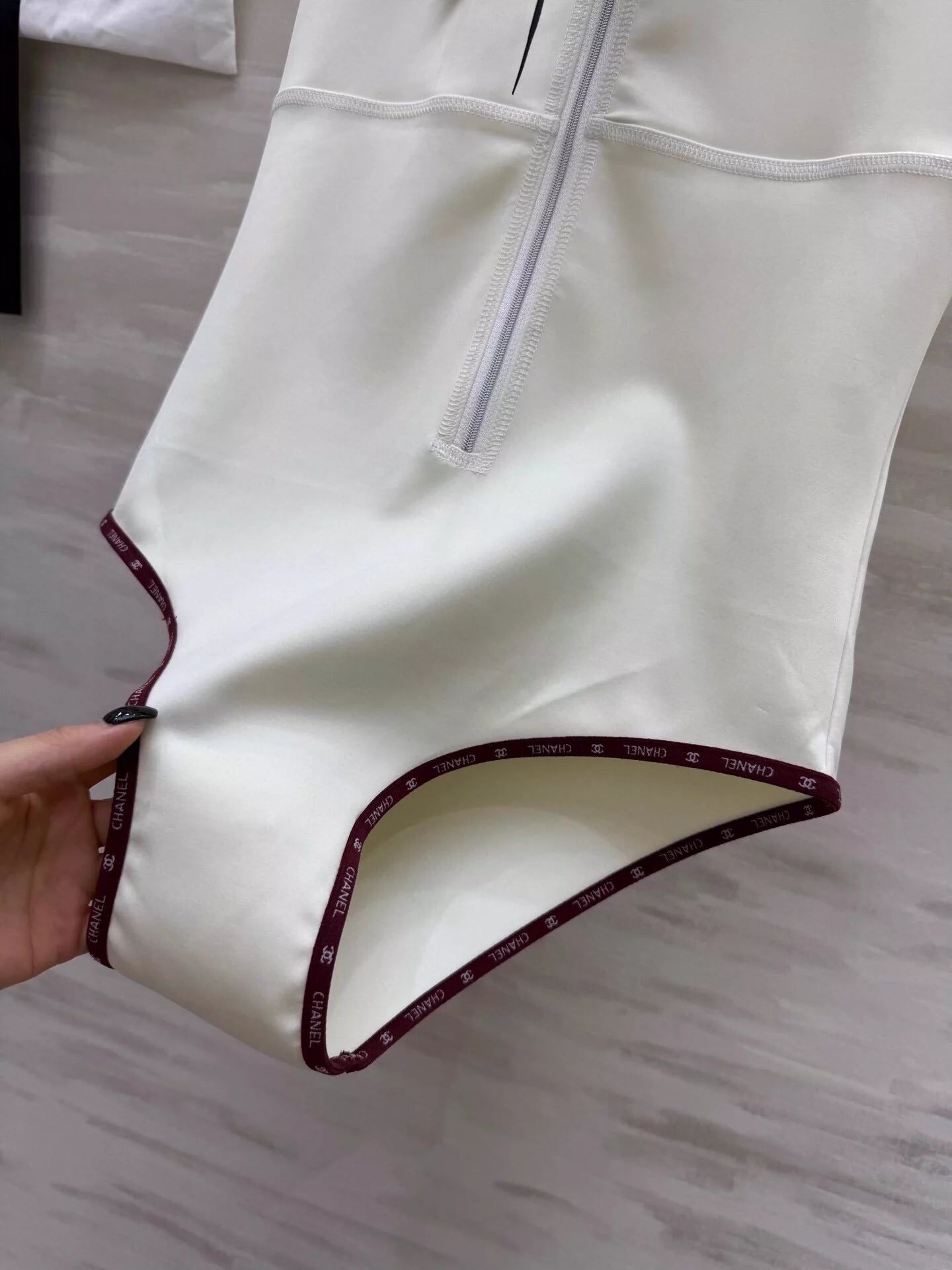 Soft and skin-friendly Comfortable and stylish Hooded zipper one-piece tankini style Zipper semi-placket neckline adjustable Plain body with monogrammed webbing ➕ neckline with bow tie