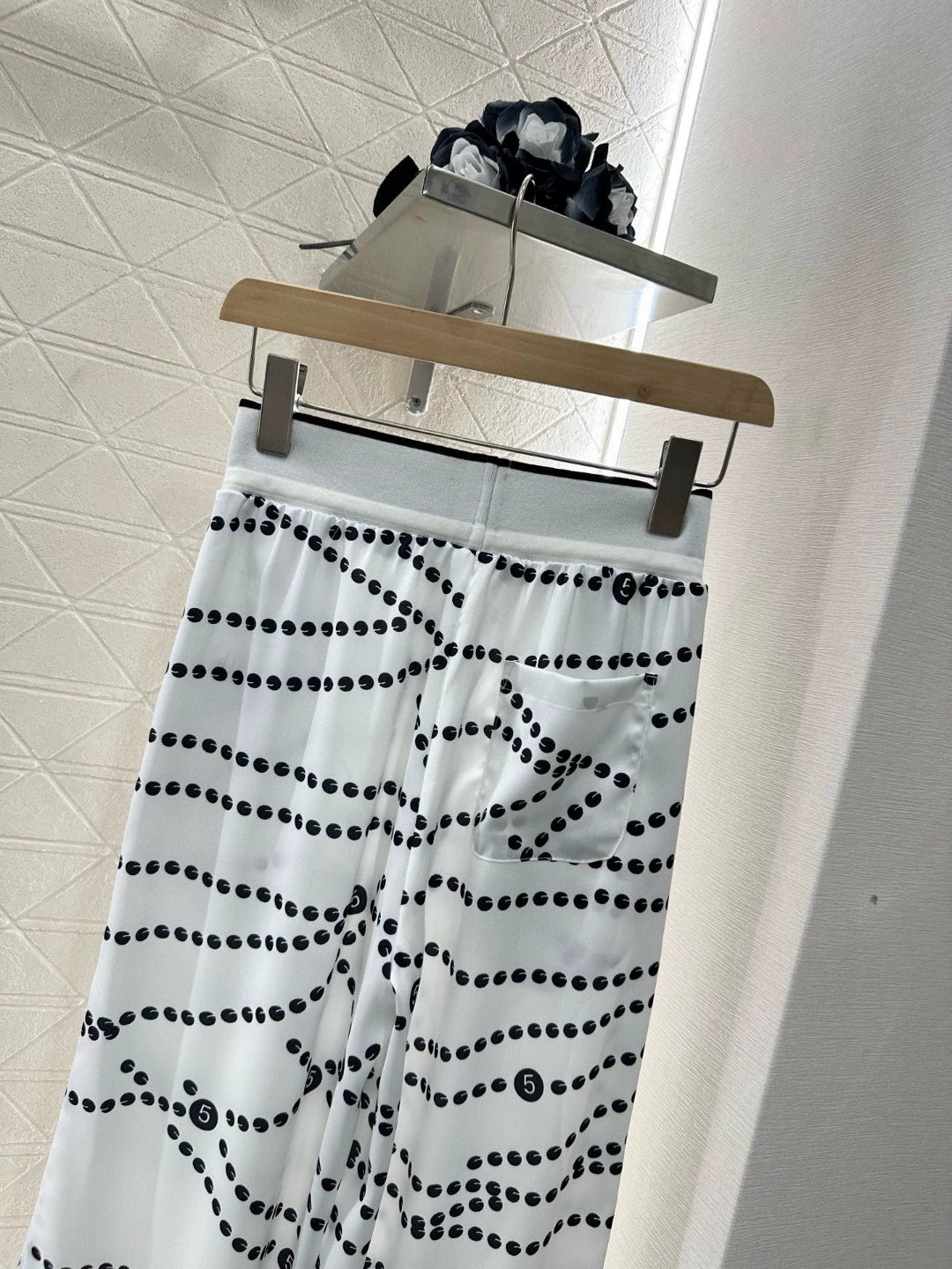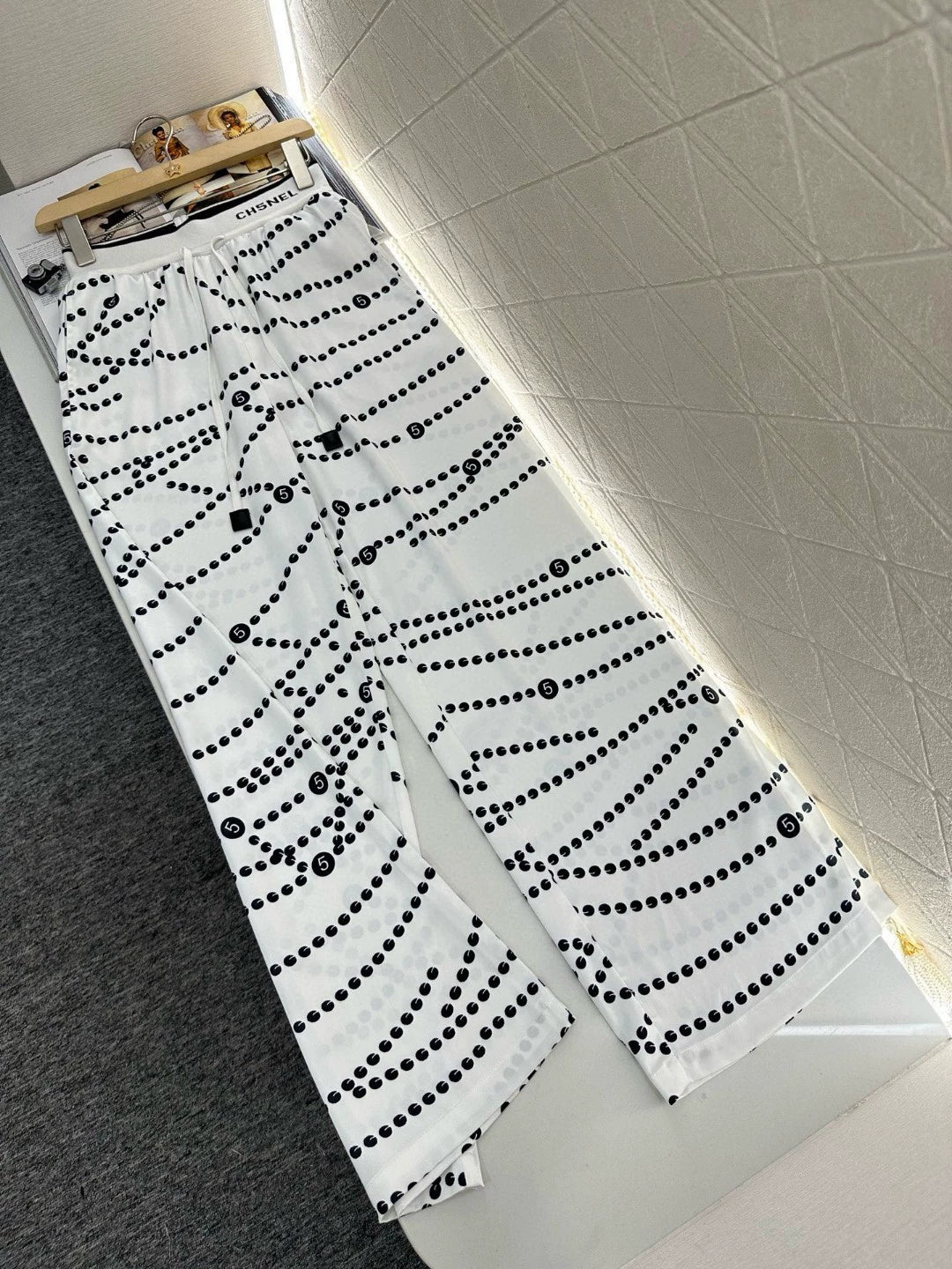 C 25 Pearl Chain Drawstring Straight Leg Pants