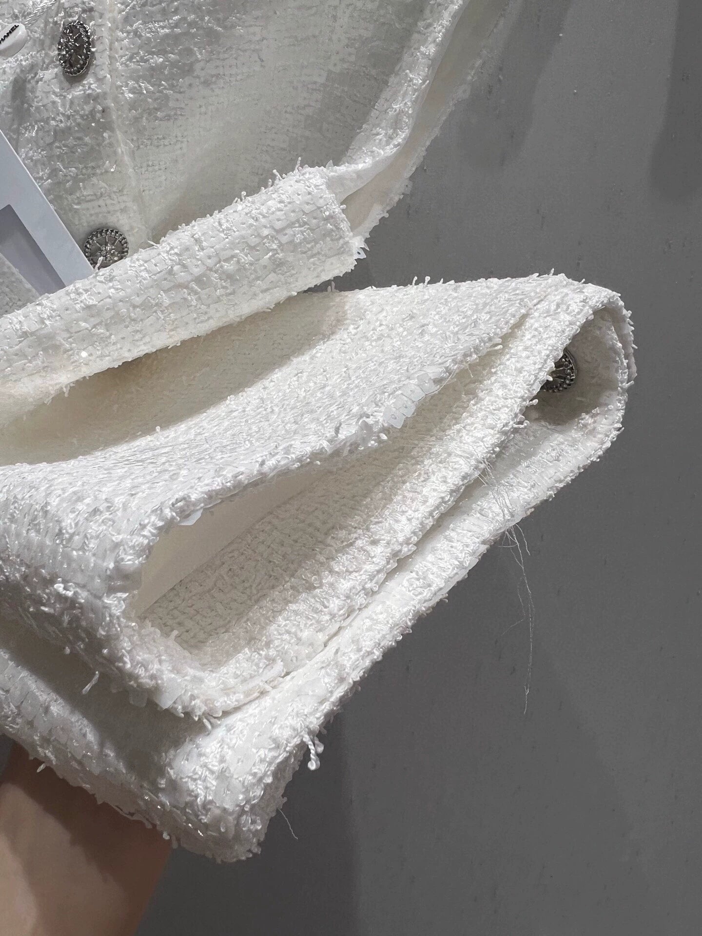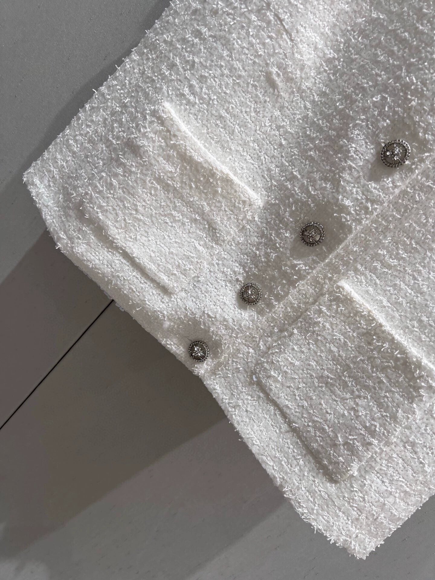 Exclusive yb development! High version production! Customized cotton yarn blended woven fabric, the surface is hung with square beads blingbling good bright eyes with retro unique silver diamond buttons, simple and uncomplicated design on the body of the delicate revealed in the loose, it is designed not to lose the jacket's formal and elegant!