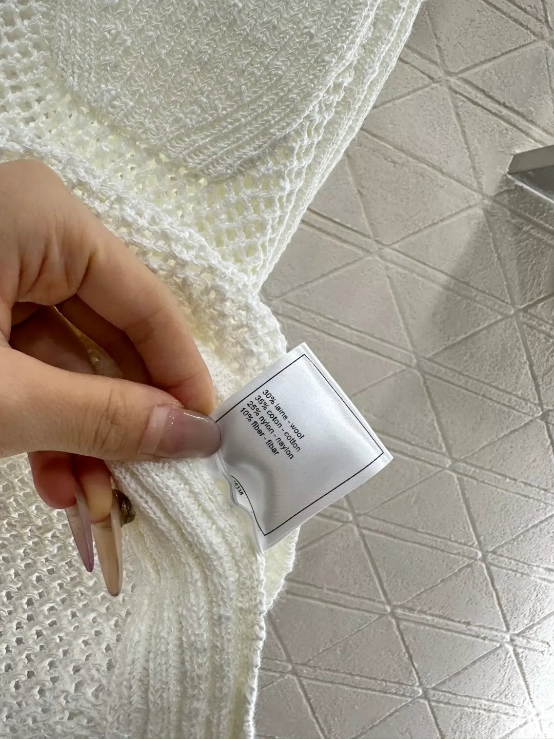 Cotton and wool yarn knitting Soft and comfortable Chic and slimming Round neck undershirt cut Sheer openwork crochet texture Collar cuffs and hem wrapped around the elastic Fully highlight the details of the texture Adding fashionable and romantic atmosphere Chest single side pockets decorated with subtle highlights to highlight the individuality of the style Single layering perfect fashionable fashionable and fashionable
