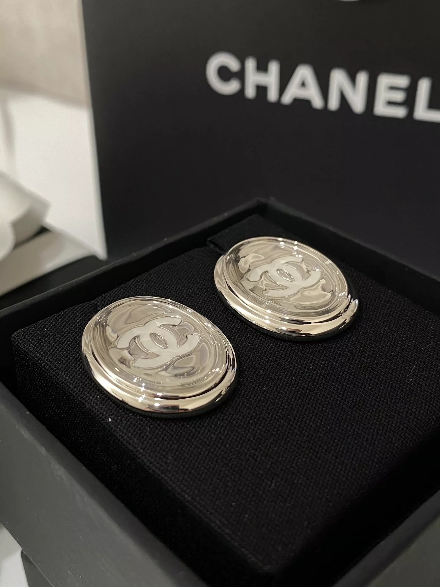 C 25 White Gold Oval Mirror Stud/Ear Clip