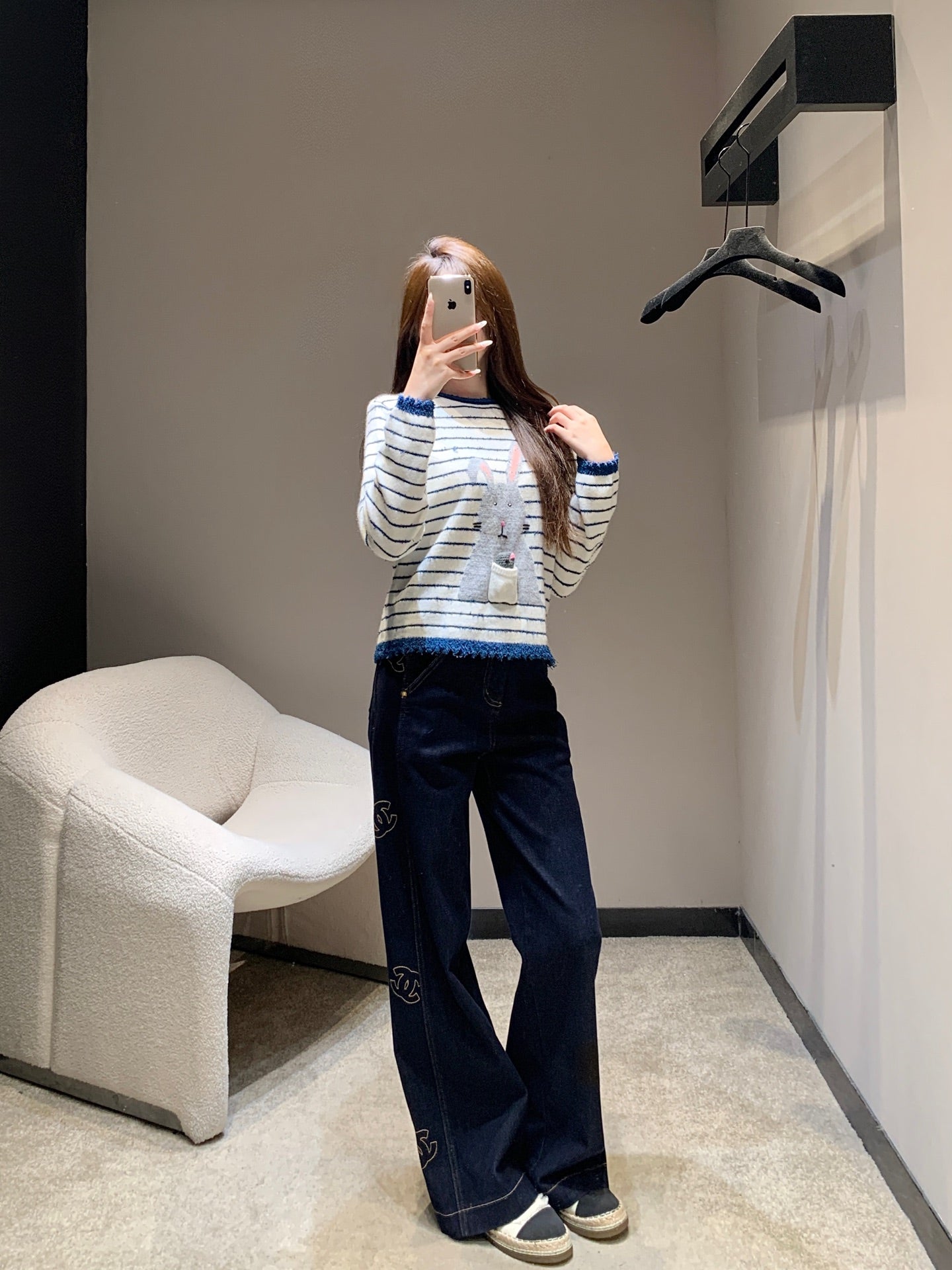 C 25B New Cute Rabbit Jacquard Striped Knitted Sweater Advanced Handicraft Series