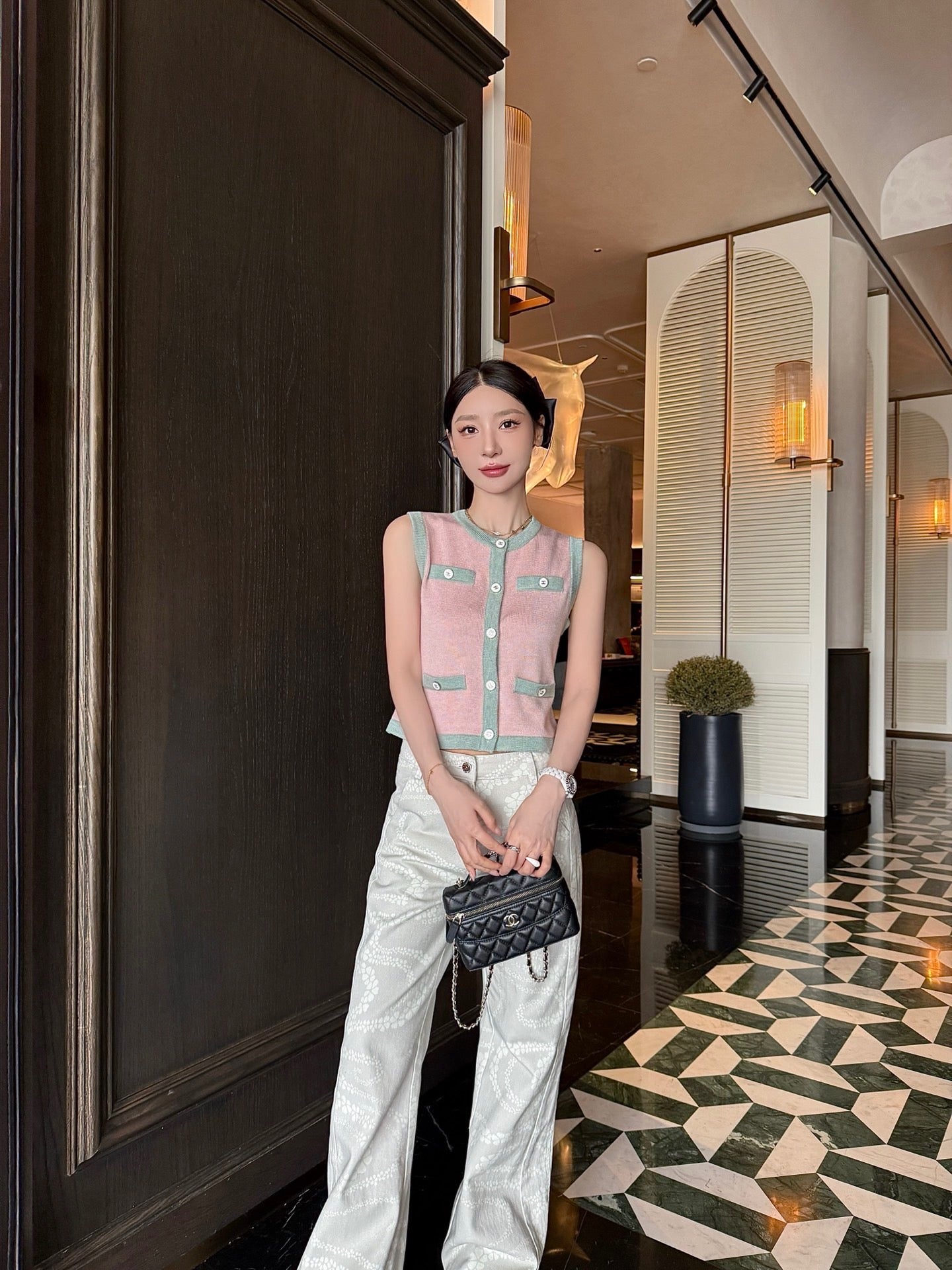 Custom Wool Yarn Weaving Texture Superior Soft and Comfortable Round Neck Sleeveless Vest Cut Body Fine Knit Texture Color Block Embellishment on Sleeve Cuffs Neckline Hem and Placket Stripe Wrap With Round Button To Enhance the Feeling of Texture Rich Detail Layers Add Fashionable Tone Slim Fit Highlighting the Figure Slimming Fashionable Versatile Style Not Picky about Age Skin Color Adaptable Aging Funky Vintage Style!