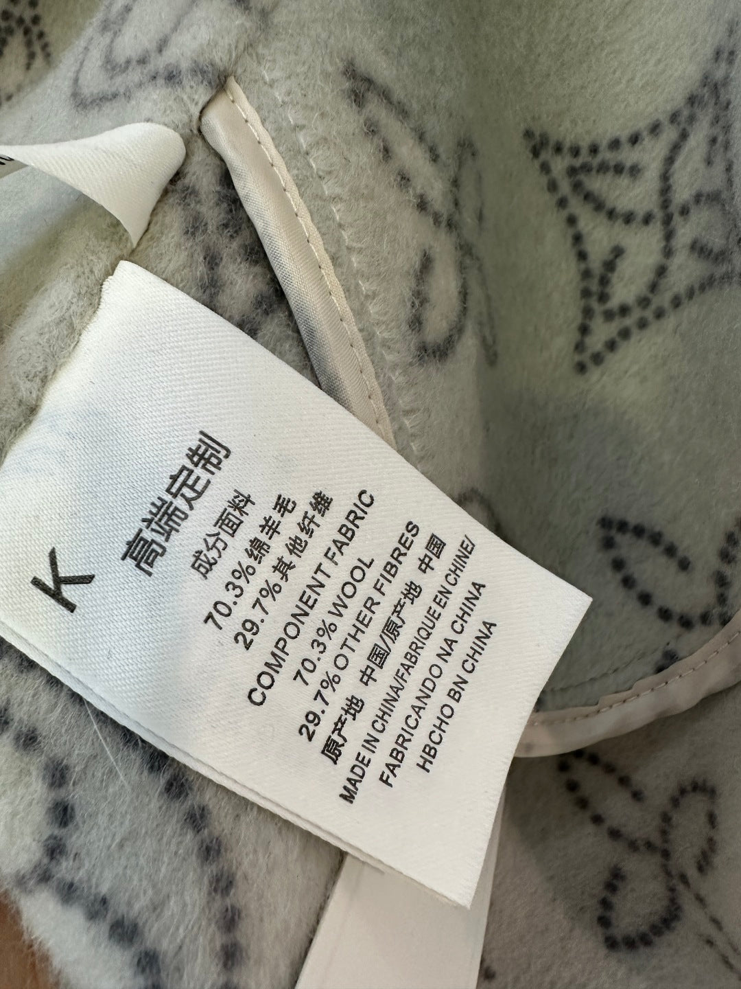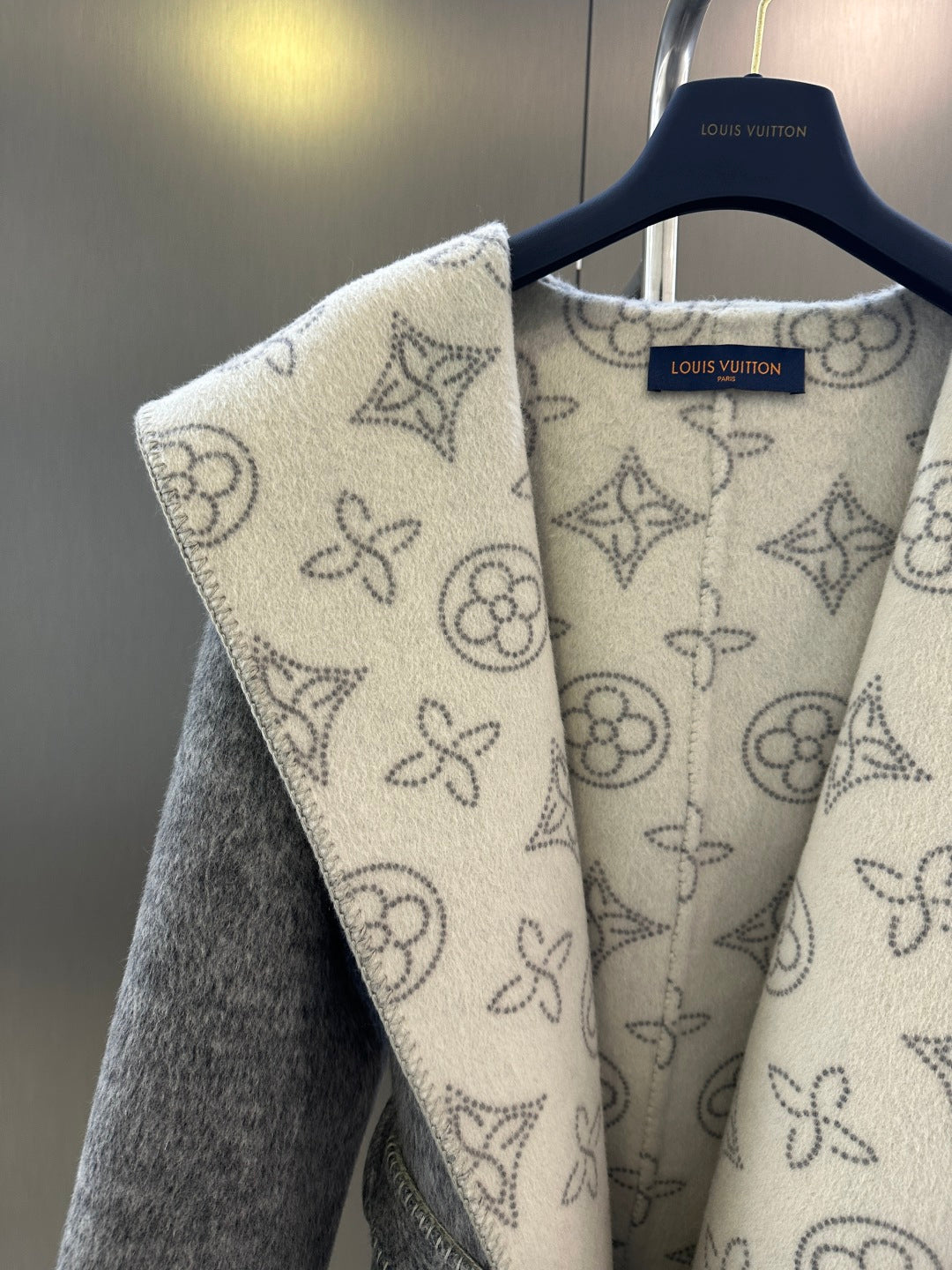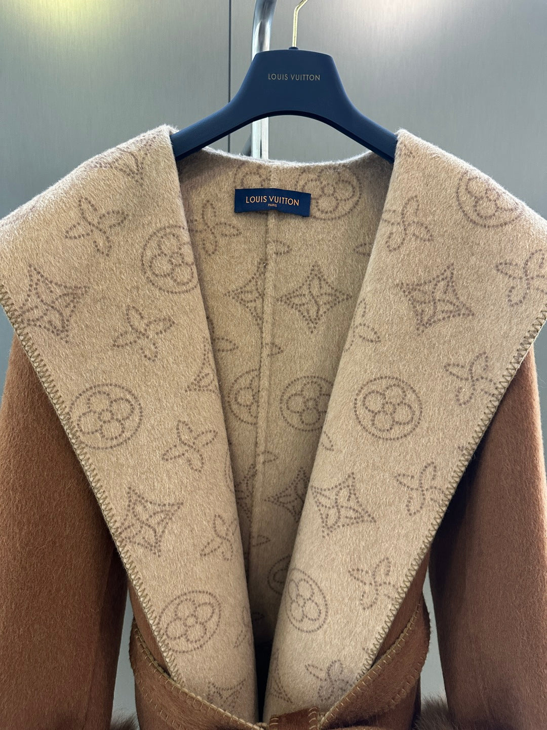 L 25fw Wool blend coat with detachable cuffs made of imported white fox fur(BROWN/GRAY)