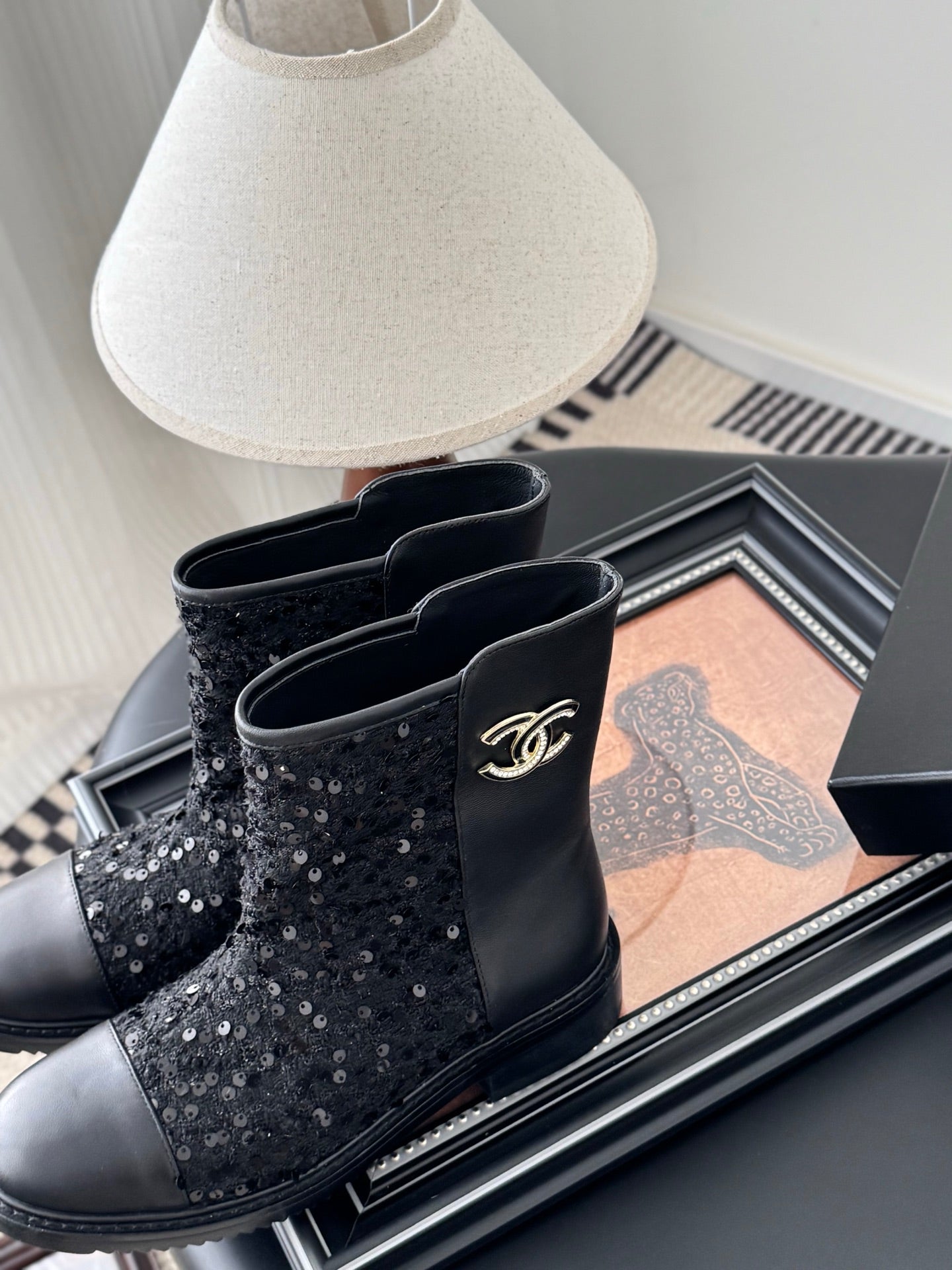 C 25K new sequined ankle boots(WHITE/BLACK/KHAKI)