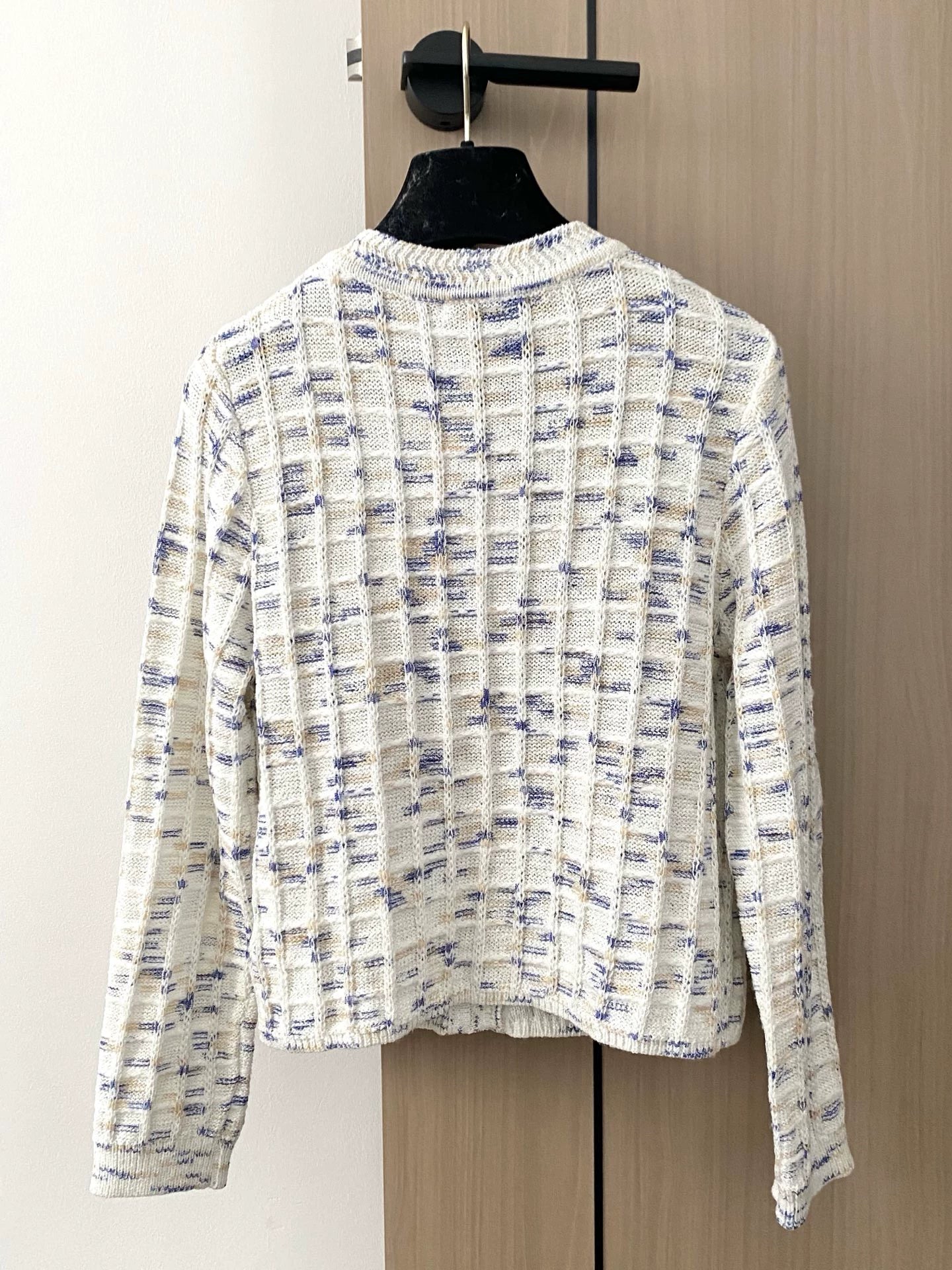 C New 25th Plaid Single-Breasted Round Neck Long-Sleeved Knit Cardigan(white/black/red)