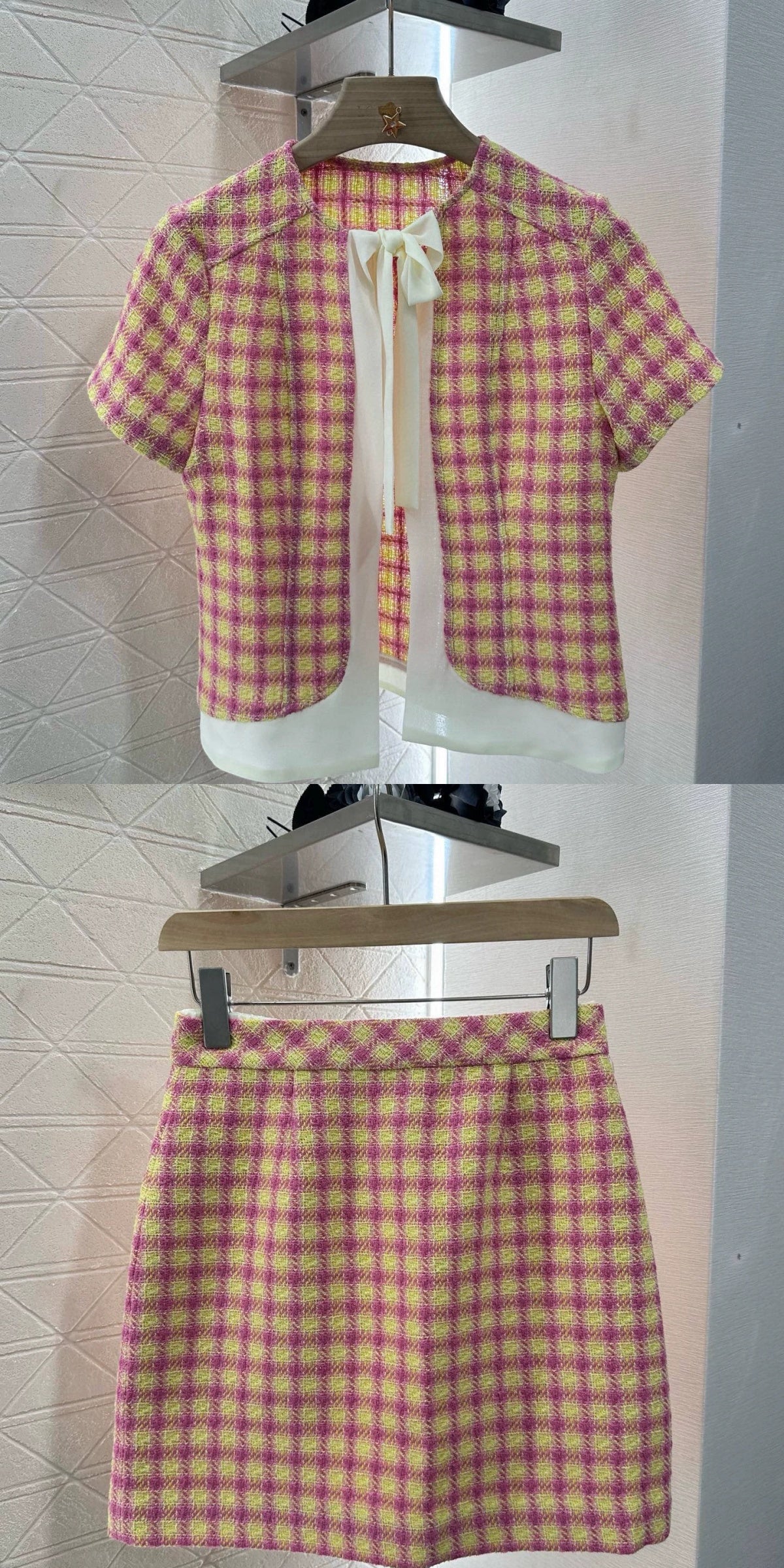 C Spring 25 New Plaid Ribbon Blouse and Half Skirt Set