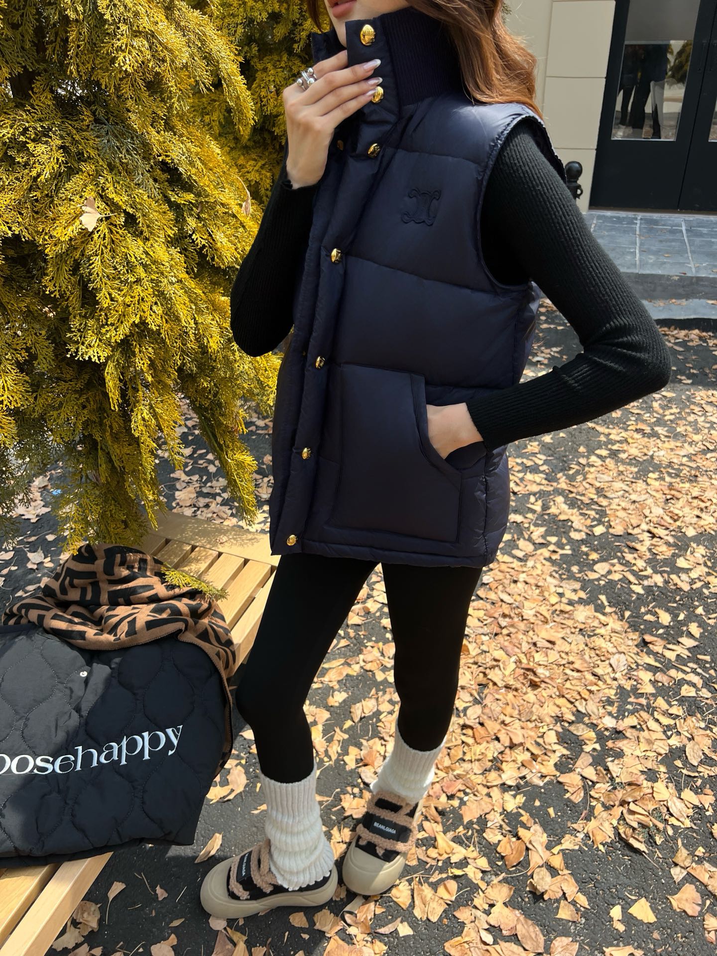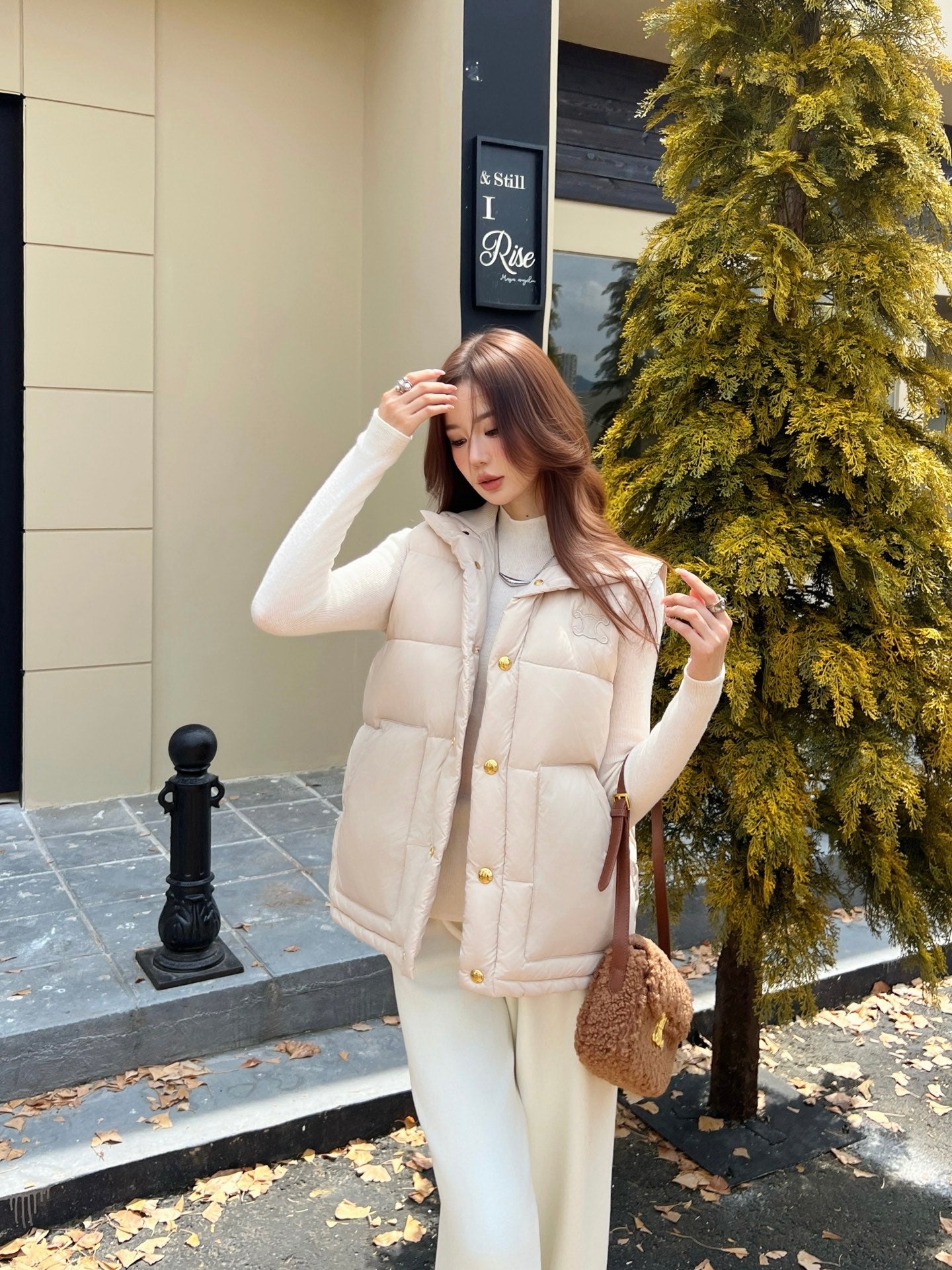 Ce 25 New Arc de Triomphe Decorative Stand Collar Down Vest(BEIGI/BROWN/NAVY)