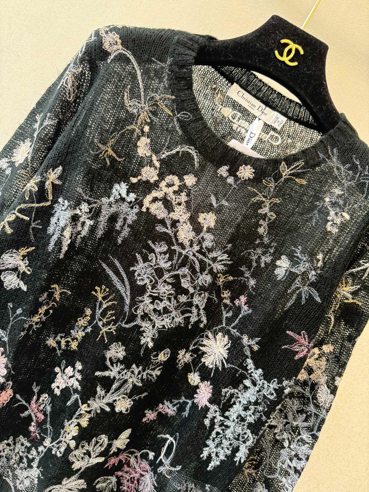 D 25 All-over embroidery Round neck, long sleeves(BLAKC/WHITE)