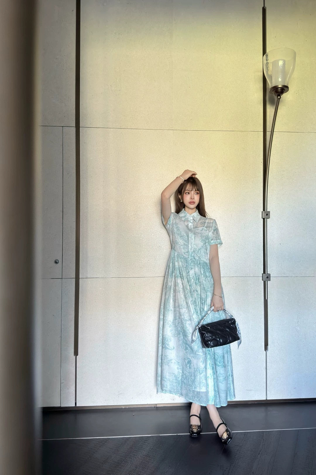 Full body print jungle animal pattern Collar short-sleeved single-breasted dress With this cloth belt Customized hardware Animal flowers add a sense of styling layers Moderate length modification of the lower half of the body line to create a sense of literature on the upper body more fashionable fashionable Fabrics and accessories development, the original customized material is lightweight and comfortable.