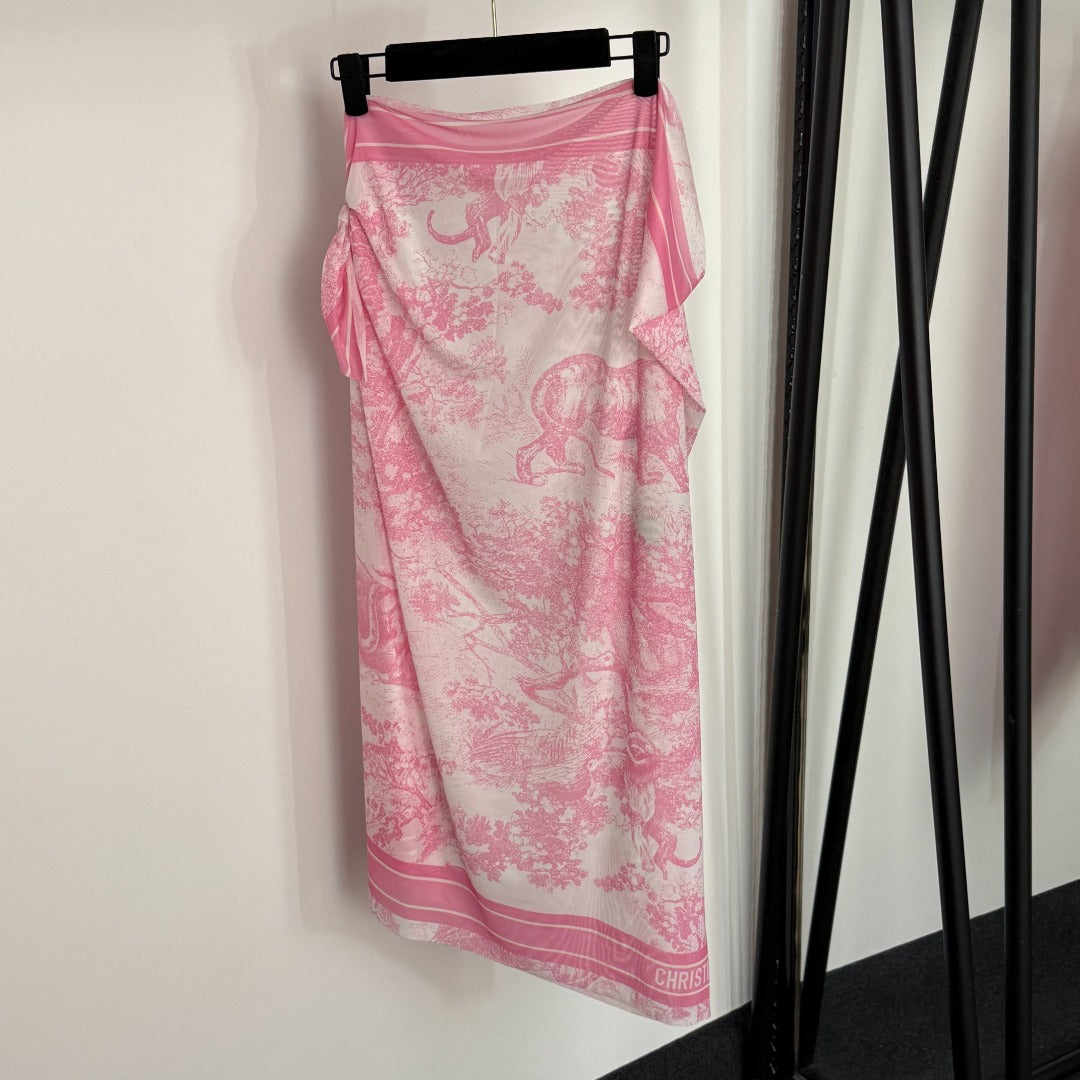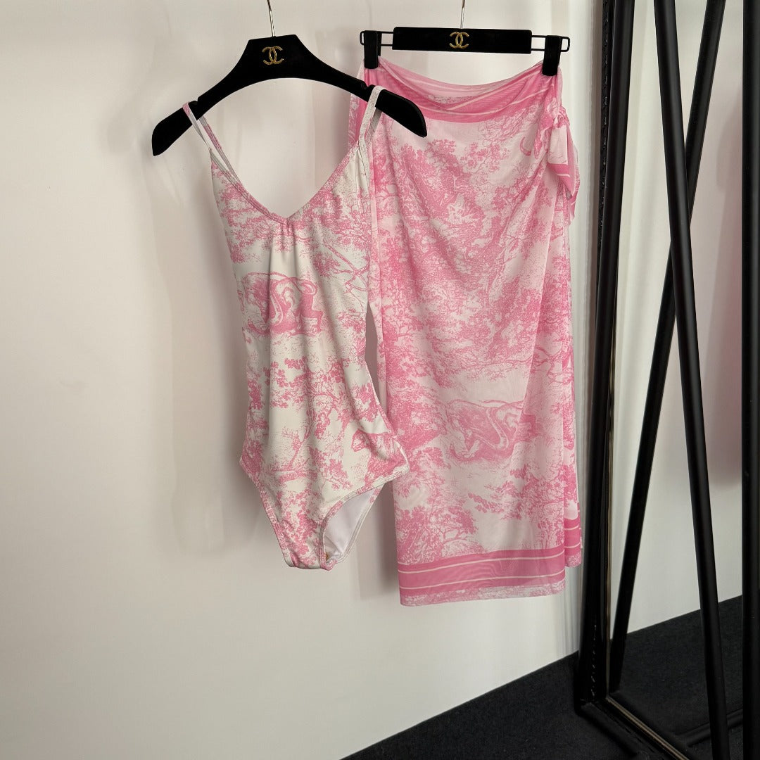 D 25 New Bikini Set, Animal Forest Print One-Piece Swimsuit + Beach Sun Skirt