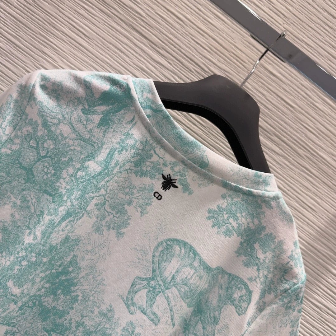D 25 New Classic Jungle Print Short Sleeve T-Shirt(PINK GREEN)