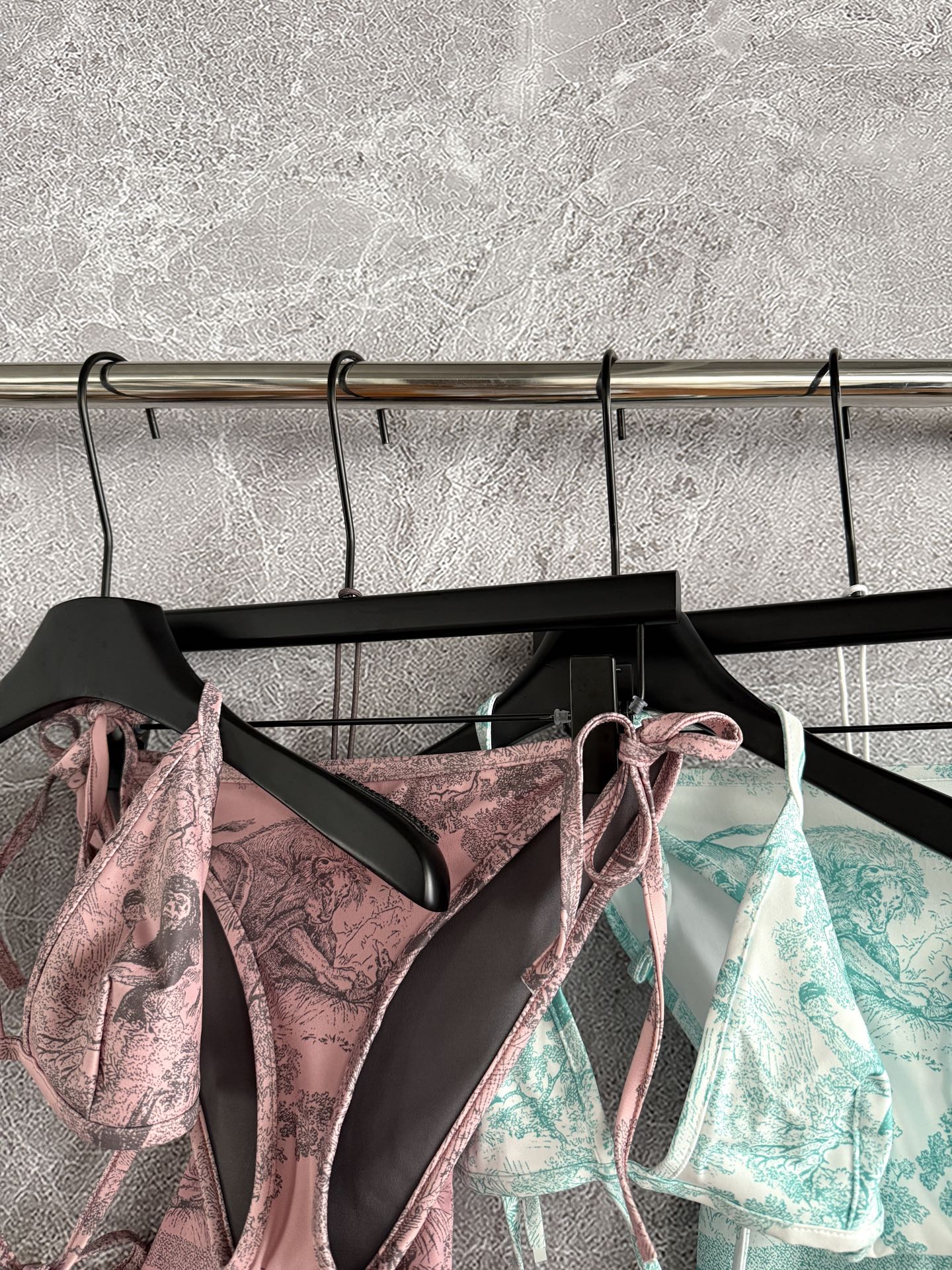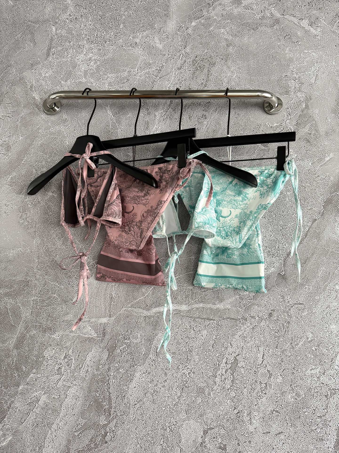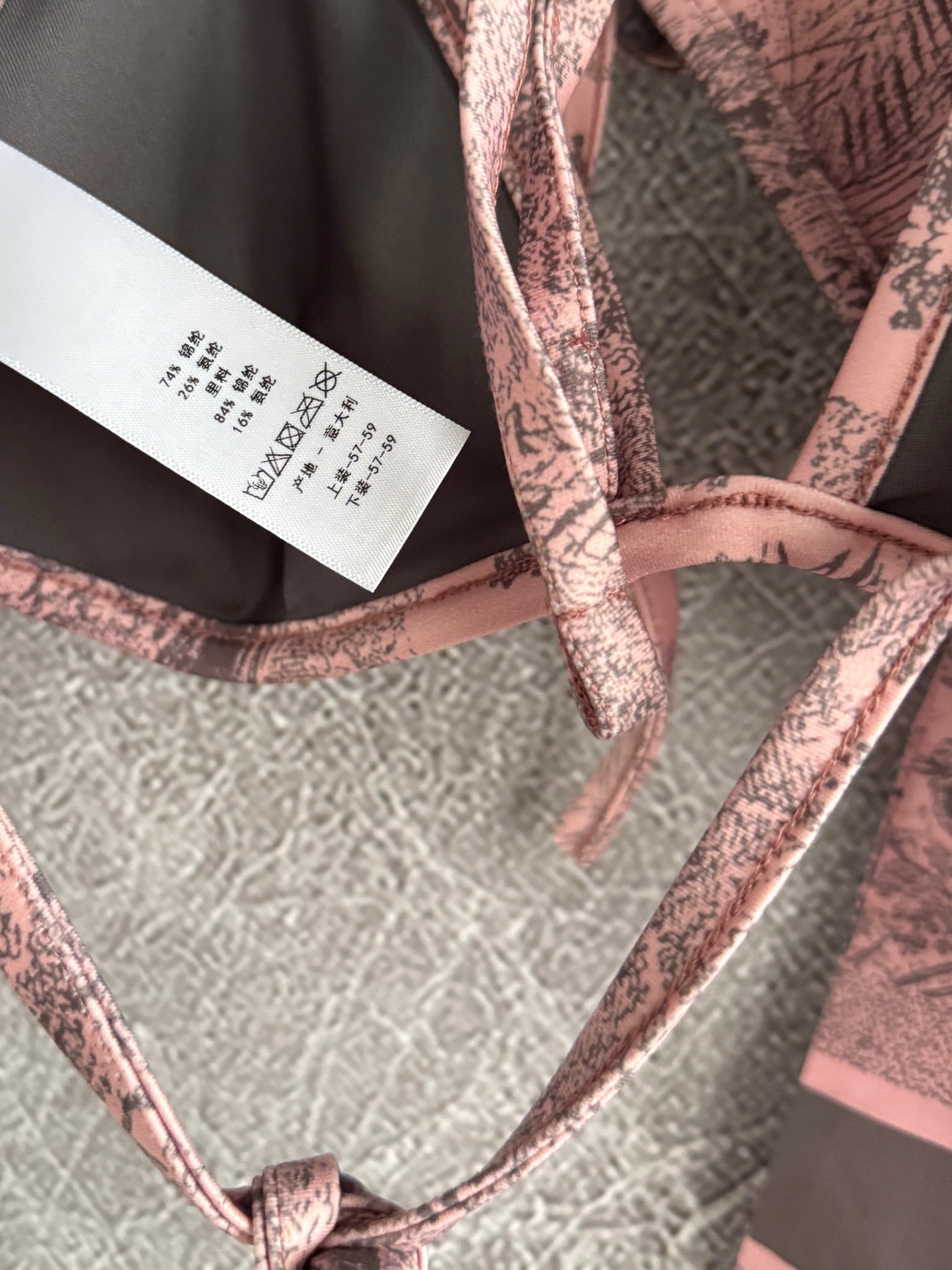 Pink and green with storage bag‼ ️The iconic Rue Animal Forest print, all-body positioning print, positioning cut pieces for flower positions, carefully crafted with triangular cut, neck and back with tie design, adjustable fit Low waist style with adjustable side ties to create an ideal fit
