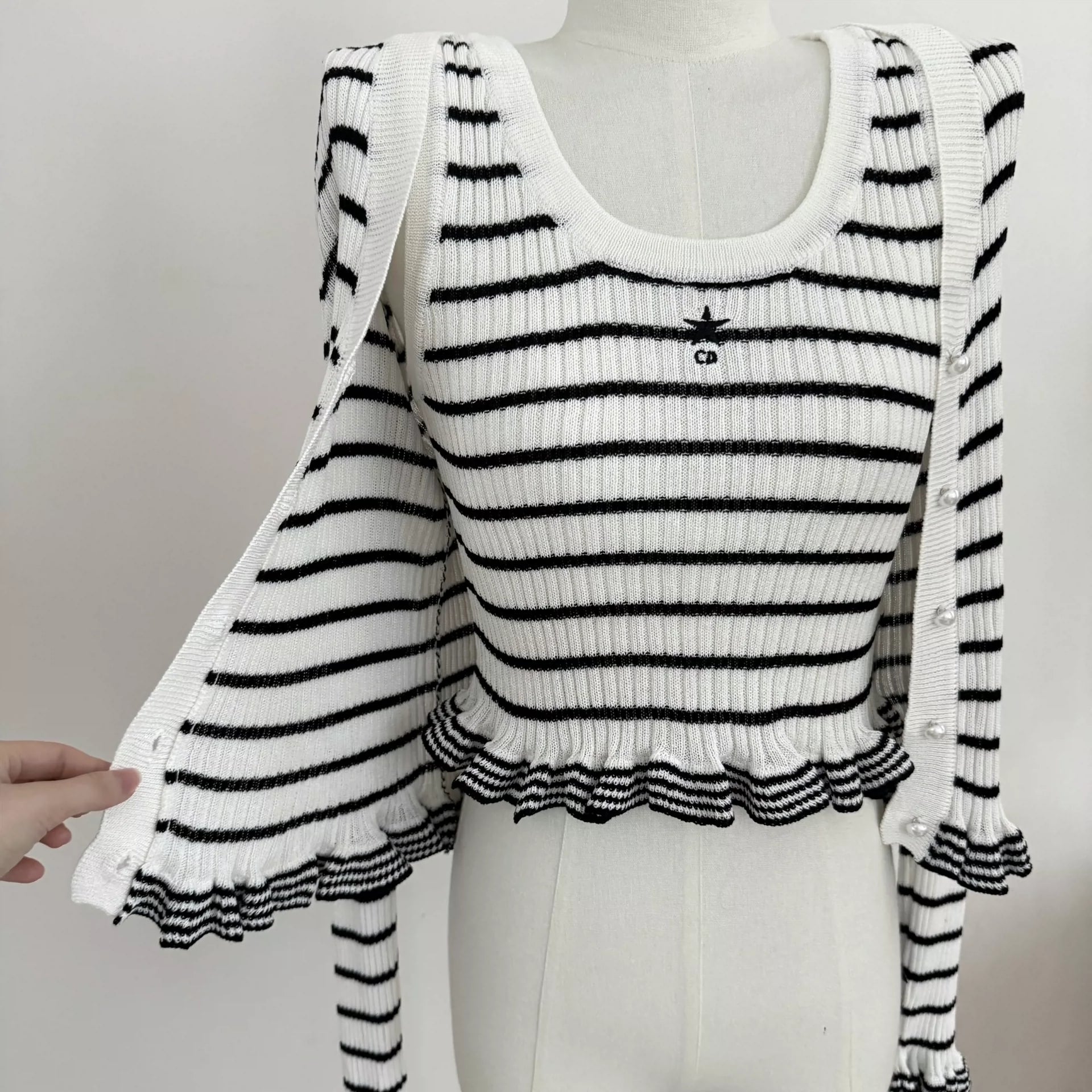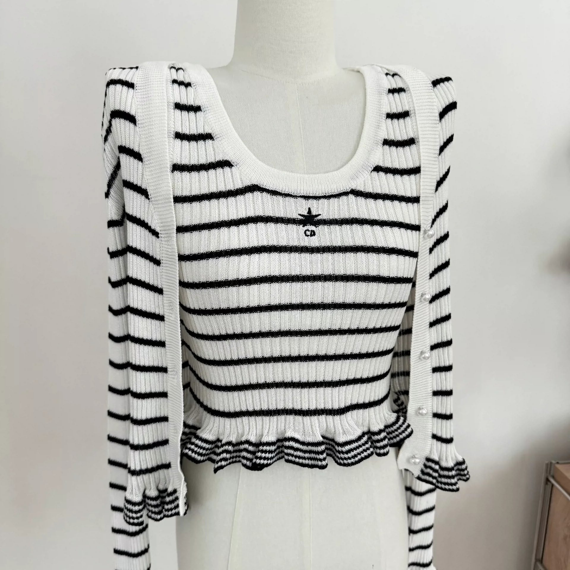 D 25 Striped Knitwear V-Neck Cardigan Jacket