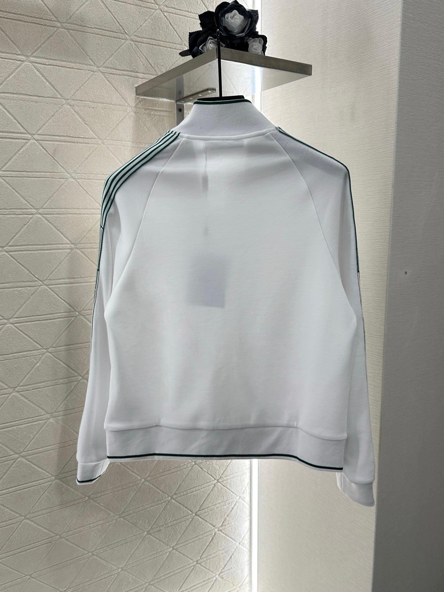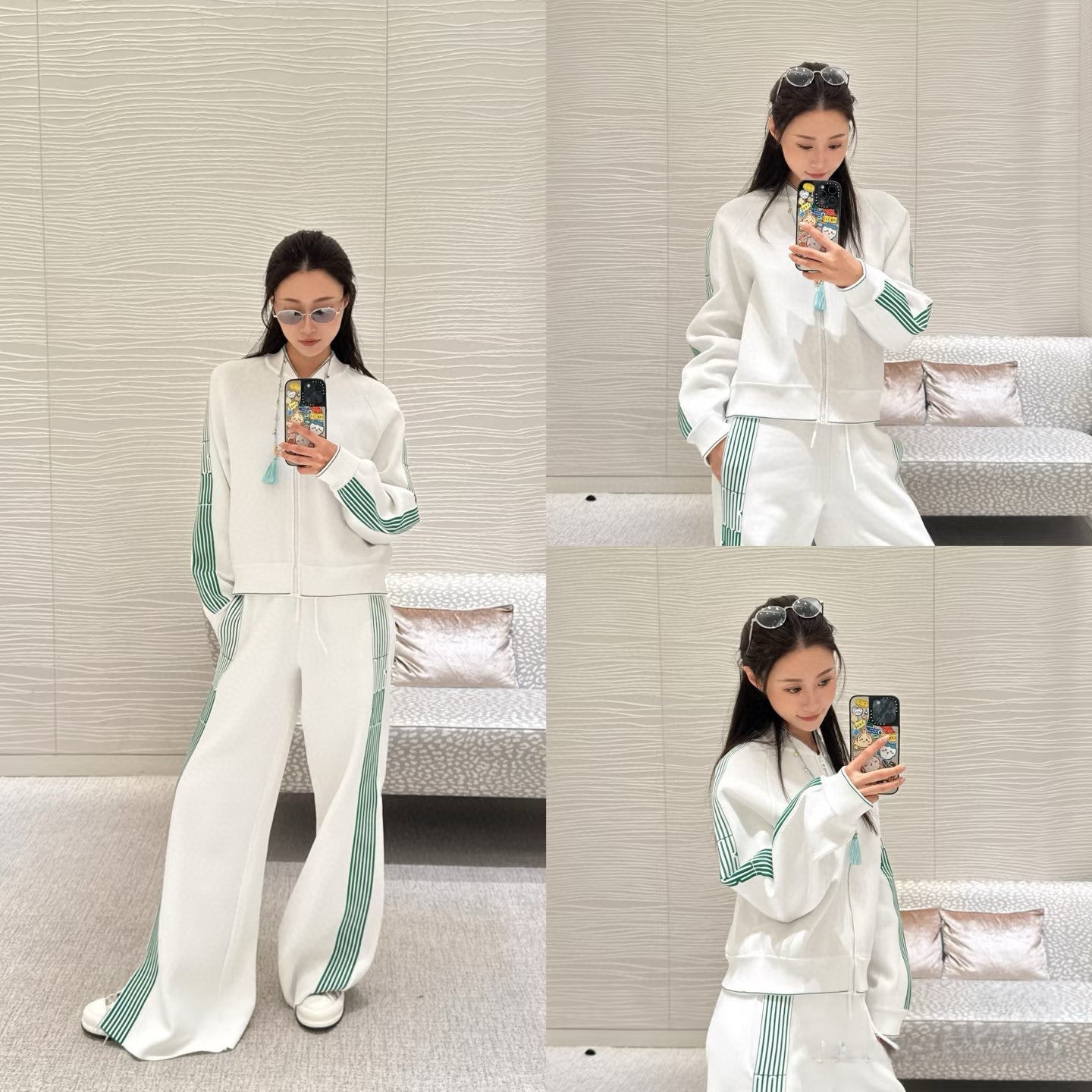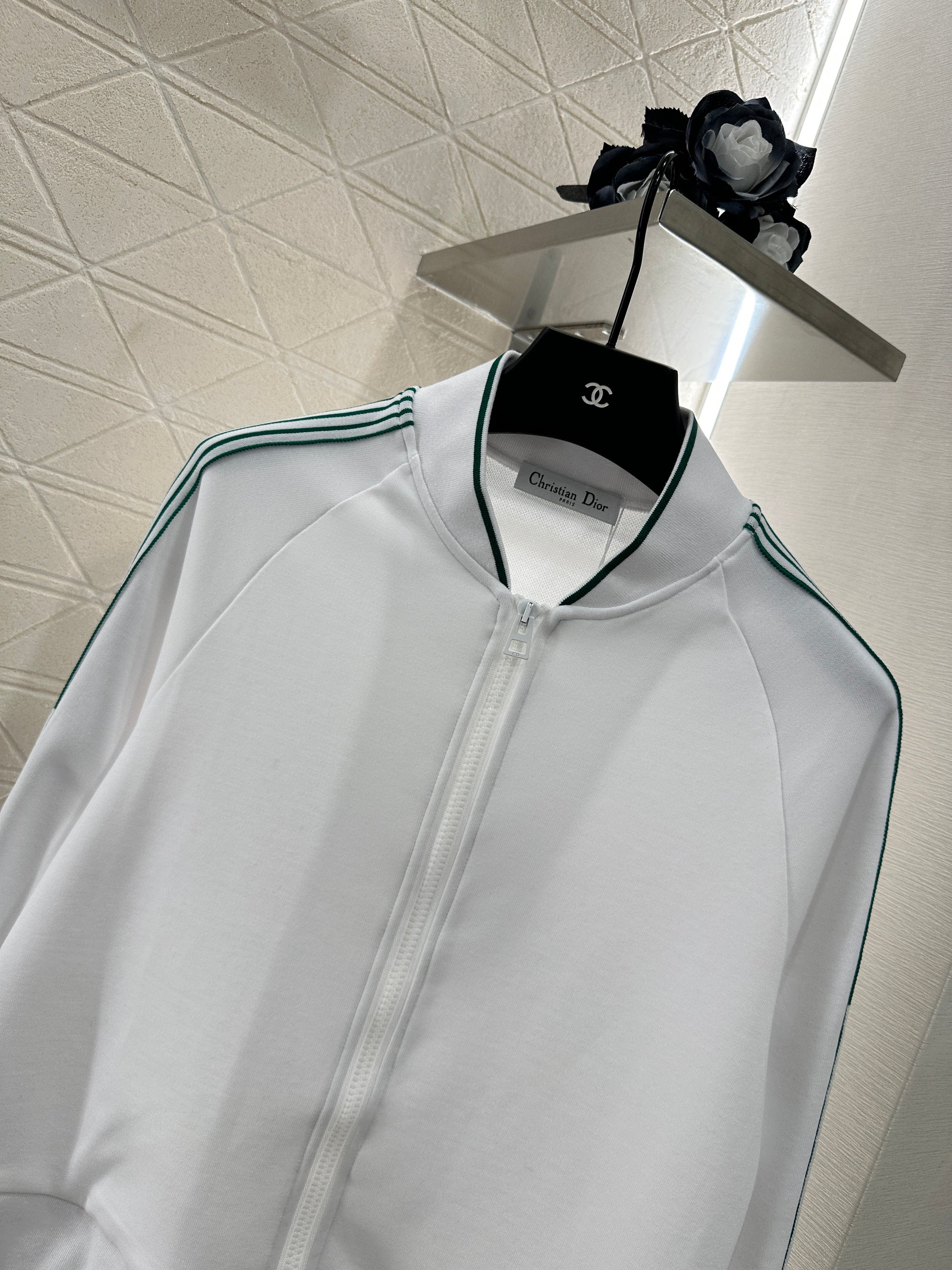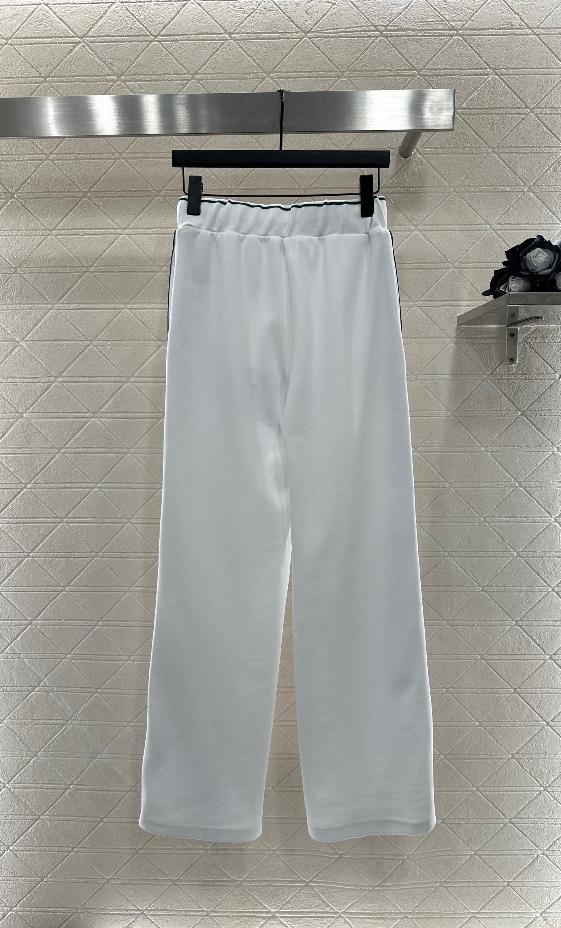 Custom-made YB Zhu Di 100% cotton material, delicate texture, breathable and comfortable, slim-fit short jacket with zipper front opening for adjustment. The collar extends from the shoulders to the sides of the sleeves, adorned with custom lettering woven tape decoration. The pure white body contrasts with the custom lettering, highlighting the brand's style. Paired with the same series of wide-leg straight-leg pants, the waistband features a drawstring for adjustable fit, creating a stylish and fashionable look. Perfect for daily commuting, made with custom fabric and lining. Ensure you choose the correct version—high version.