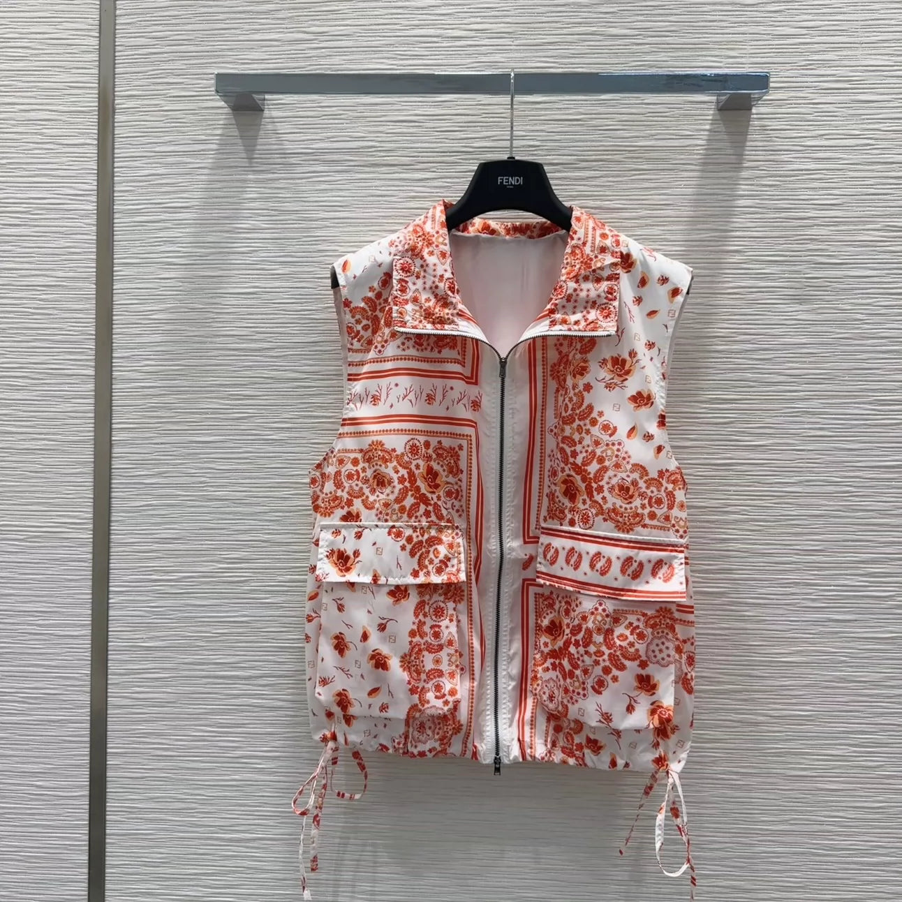 F 25 New Printed Pocket Drawstring Zipper Vest Shorts Set