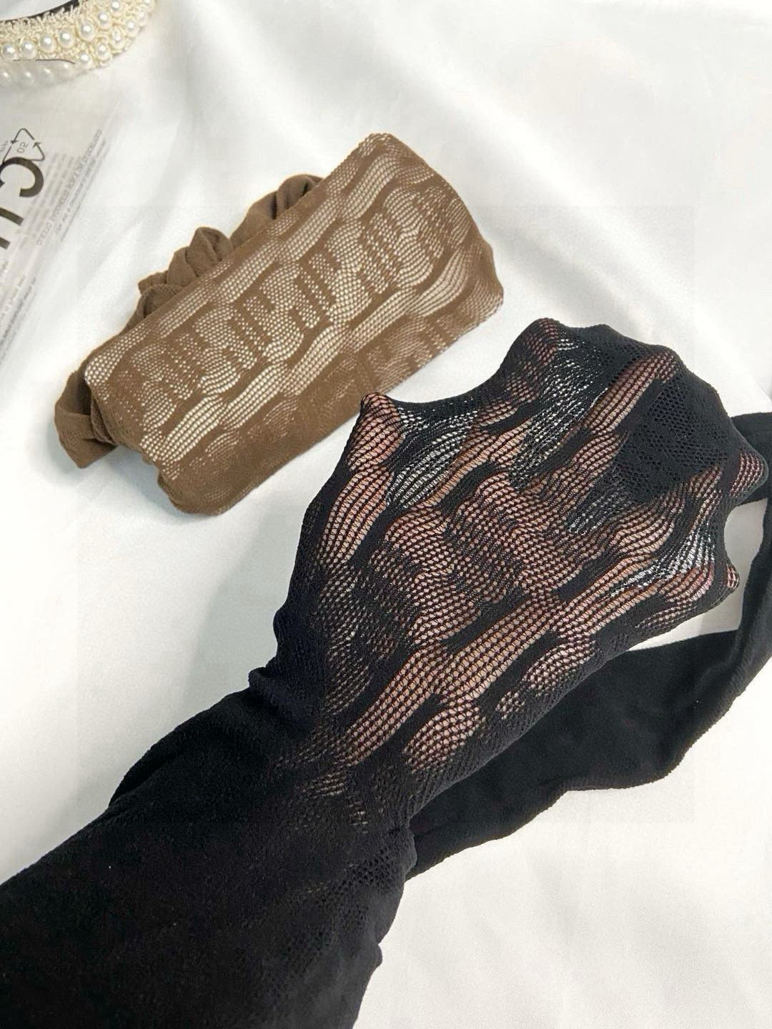 F Hot sale fishnet stockings with monogram