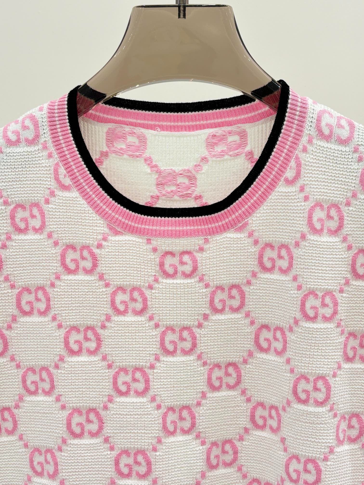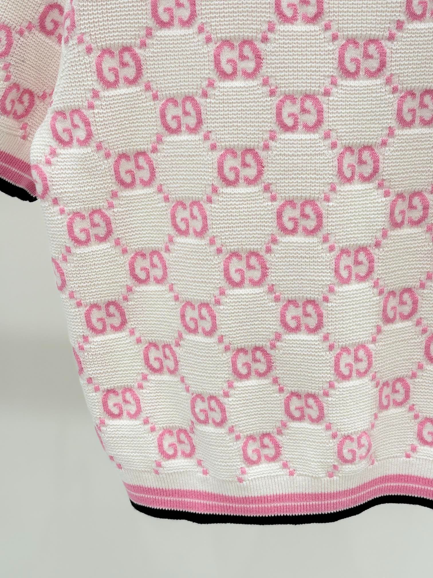 G 25 Summer new round neck double G letter jacquard knit short tops