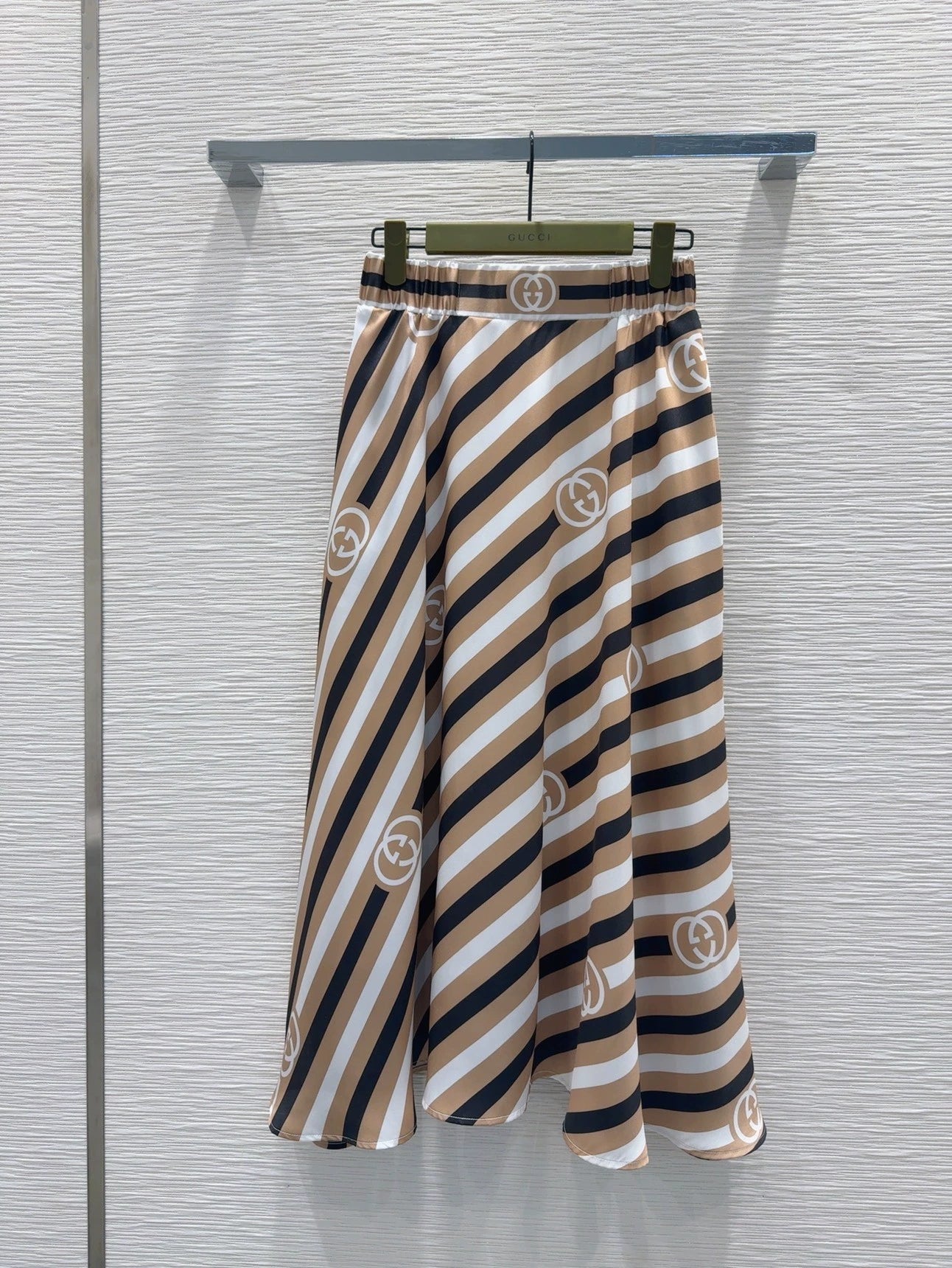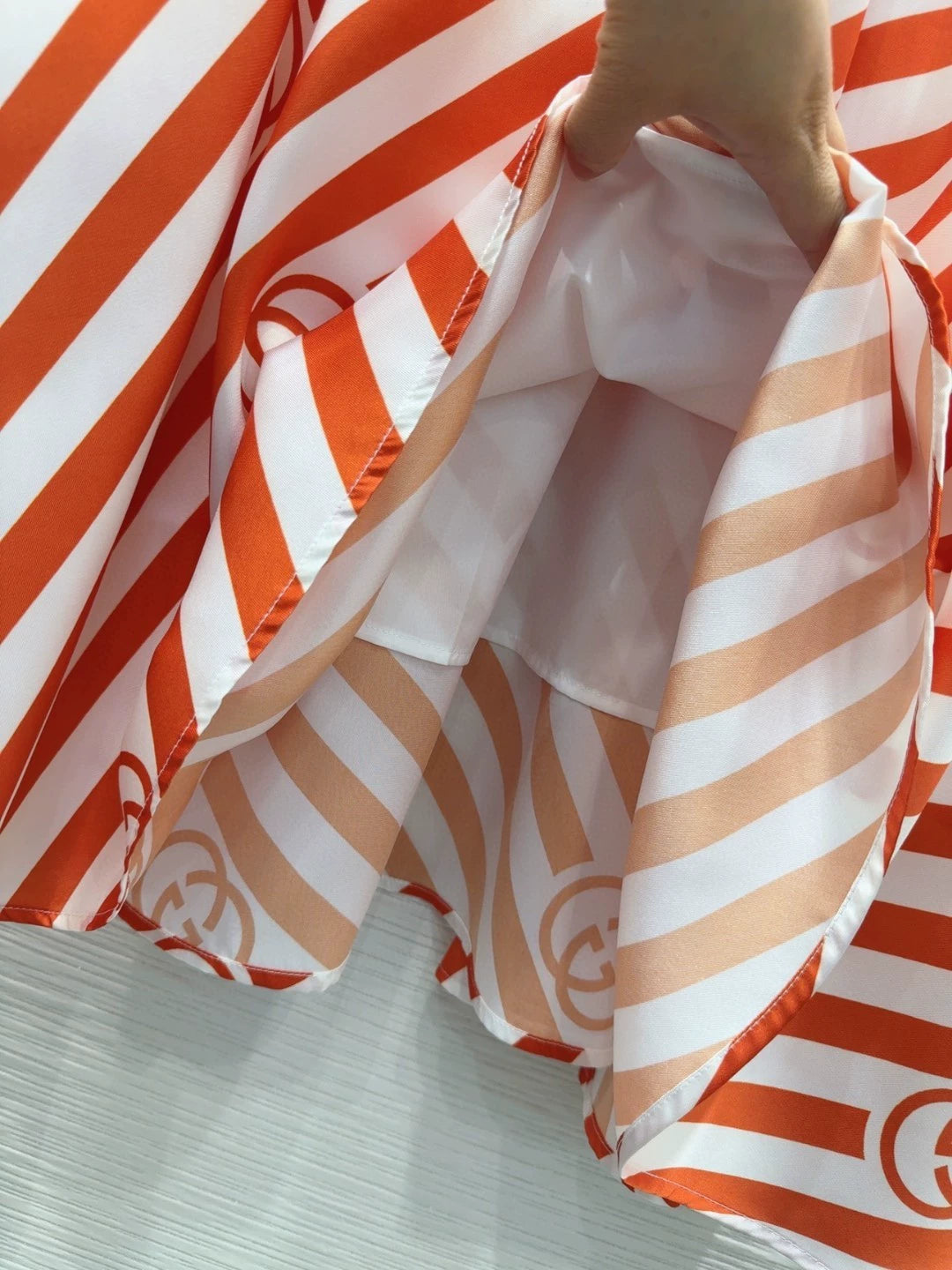 G 25 New Clashing Color Stripe Letter Half Skirt(brown orange)