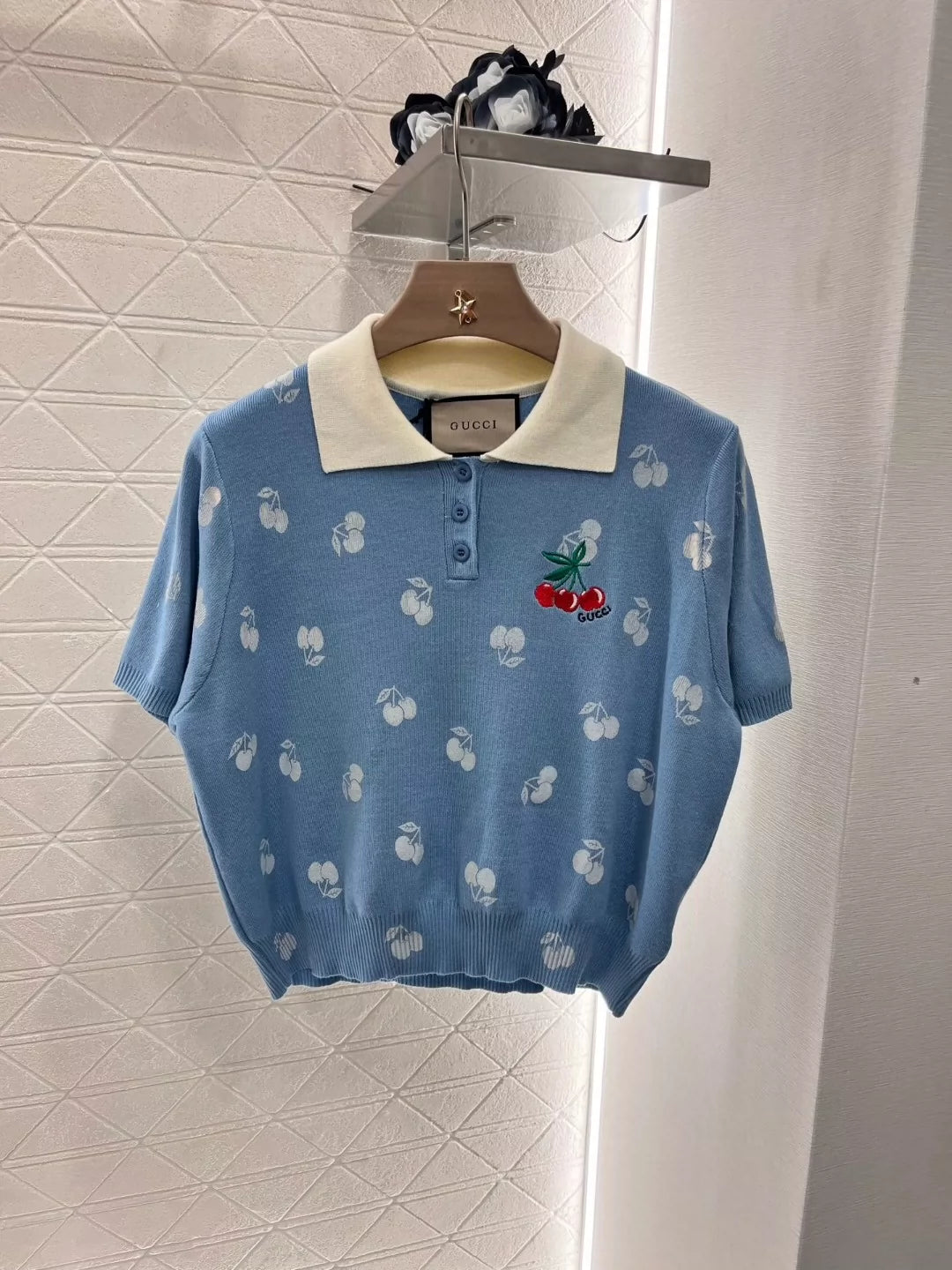 G Spring/Summer 25 New Cherry Logo Knit Short Sleeve Top