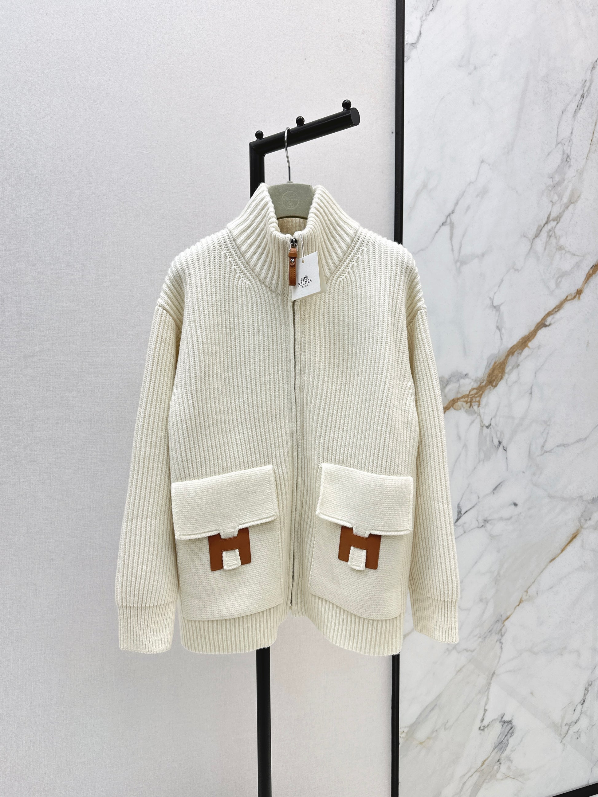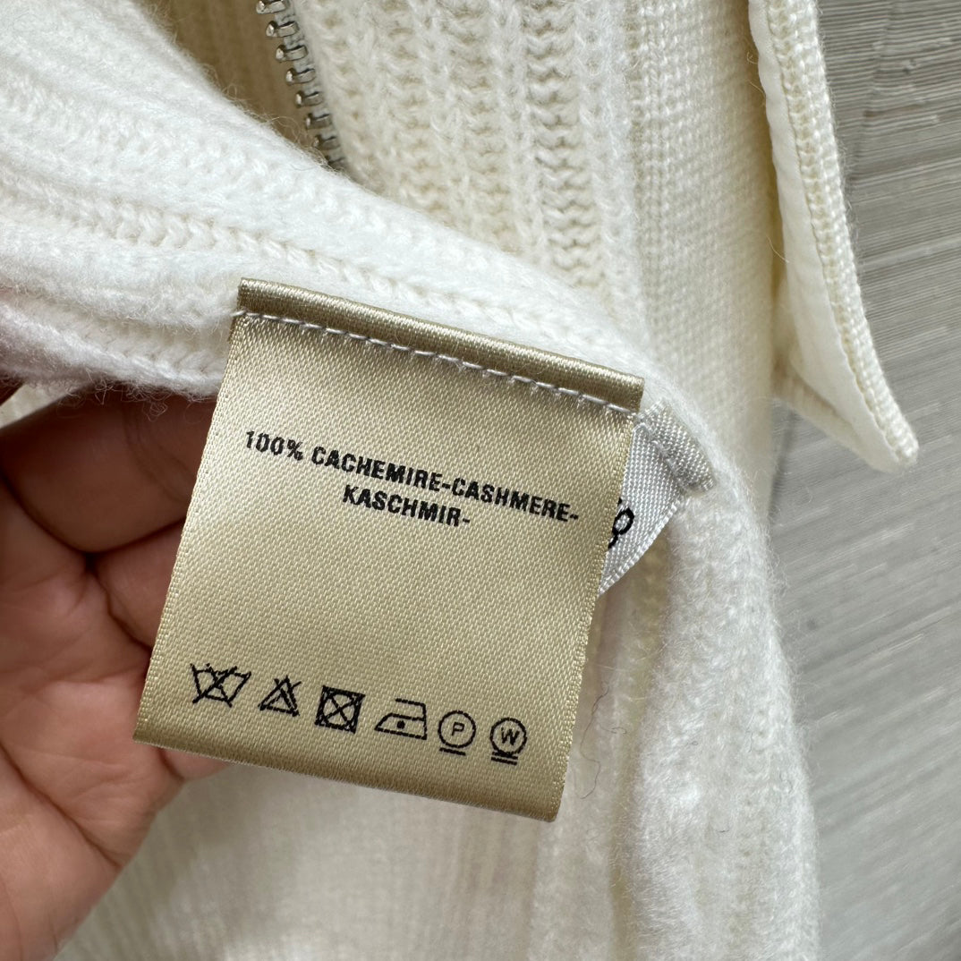 He 25 Mid-length cashmere knitted zip-up jacket(100% cashmere BEIGI/BLACK)