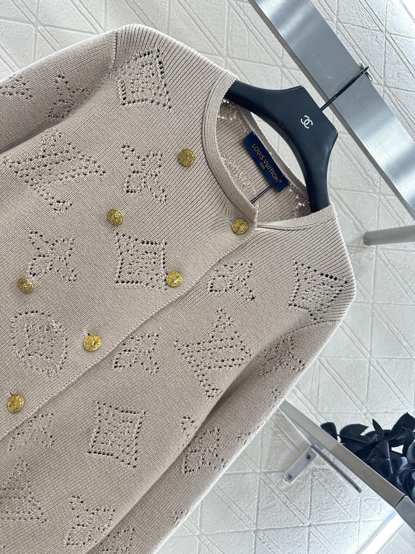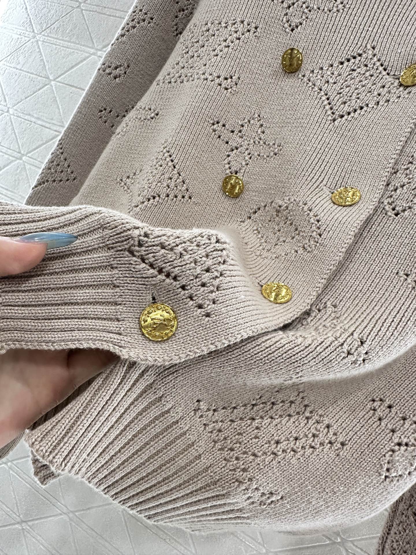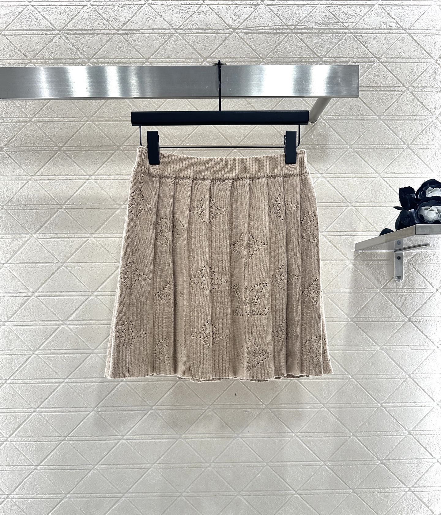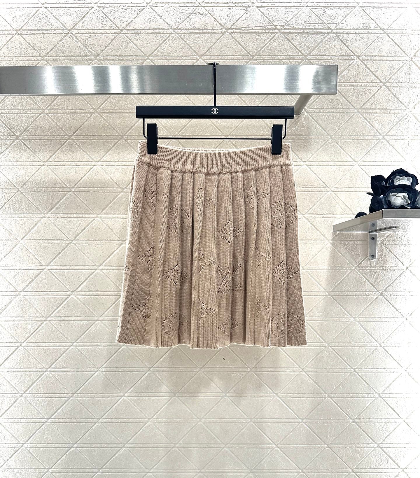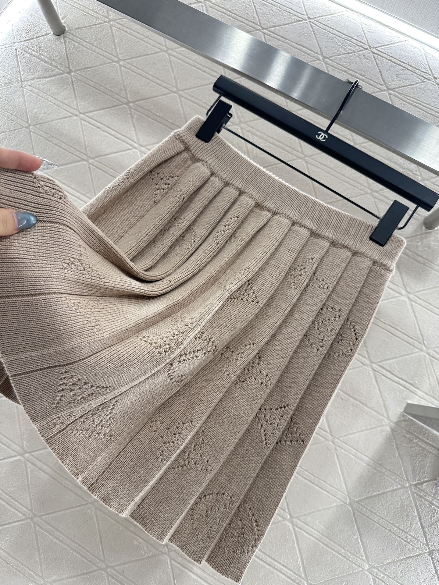 L 25 Hollow knit wool cardigan + pleated skirt set