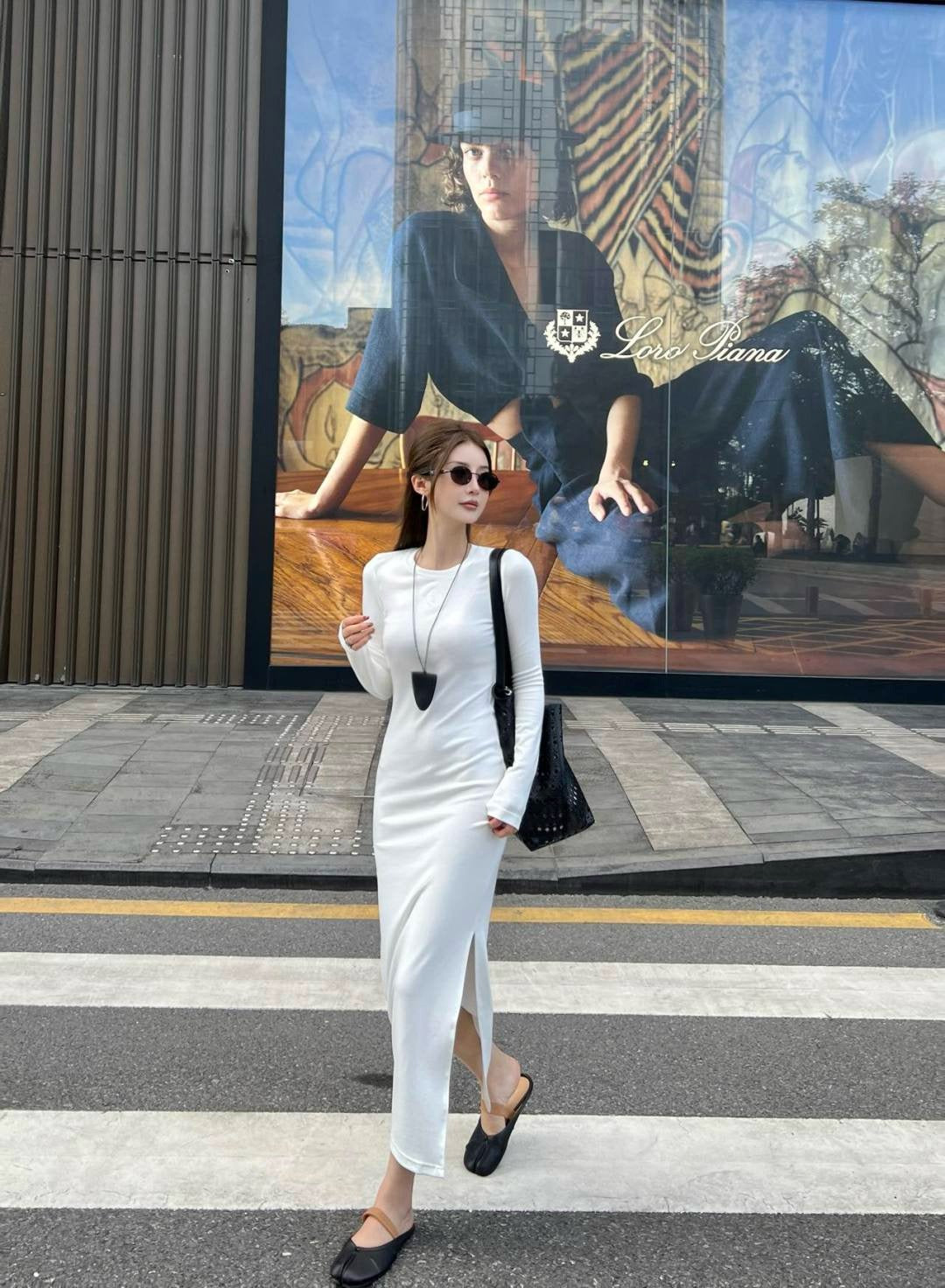 L 25 New Slim Logo Bottoming Dress(WHITE/BLACK/BROWN)