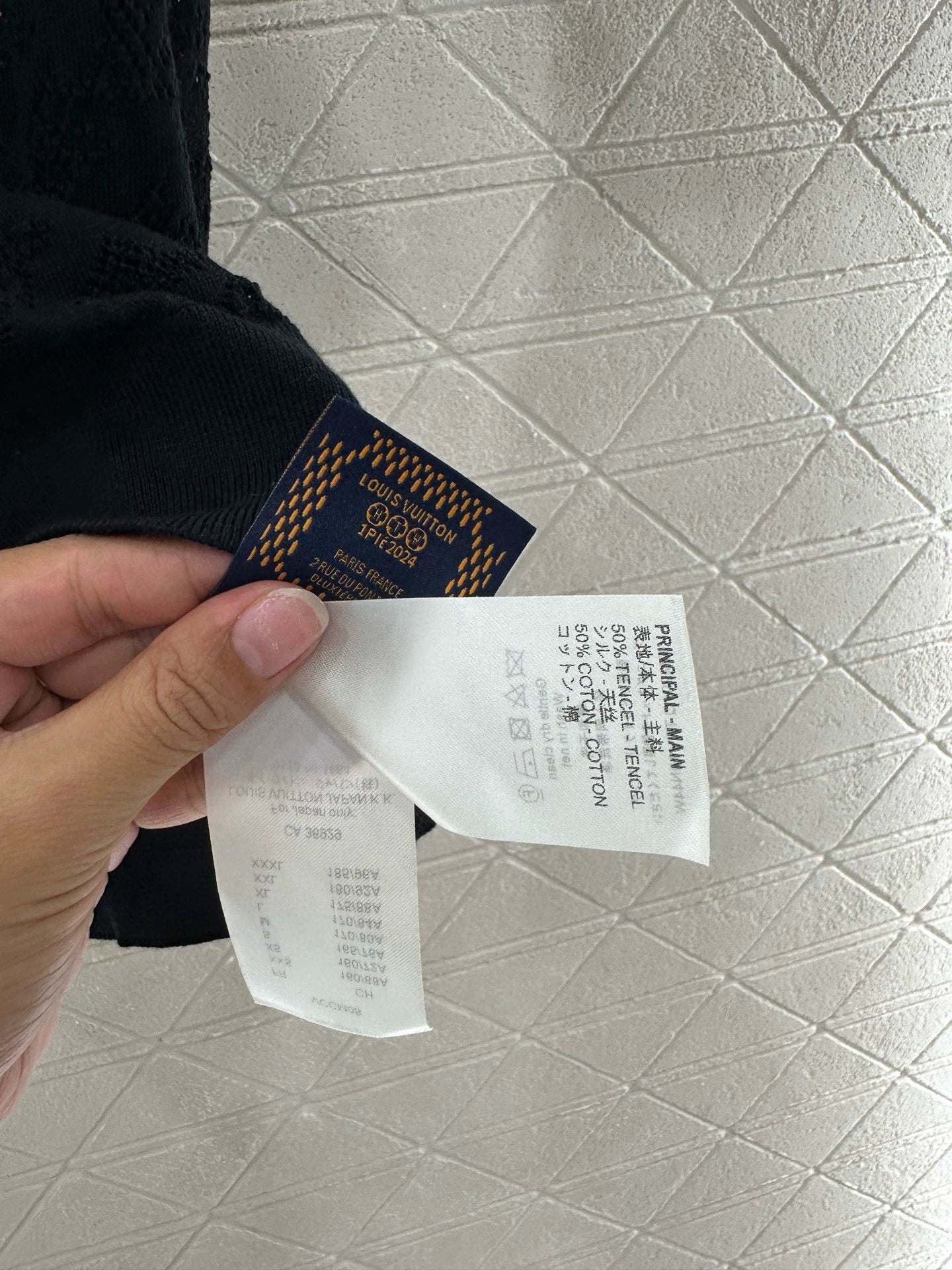 Silk cotton yarn woven texture cold breathable Knitted short-sleeved top tailoring Throughout the use of fine crochet texture interweaving outlined four-leaf clover elements and monogram pattern highlighting the wear of high-level sense of collar cuffs and hem with thread lace loose slightly transparent more skinny Loose shape to accommodate the figure to show the loose tone highlighting the light luxury chic temperament.