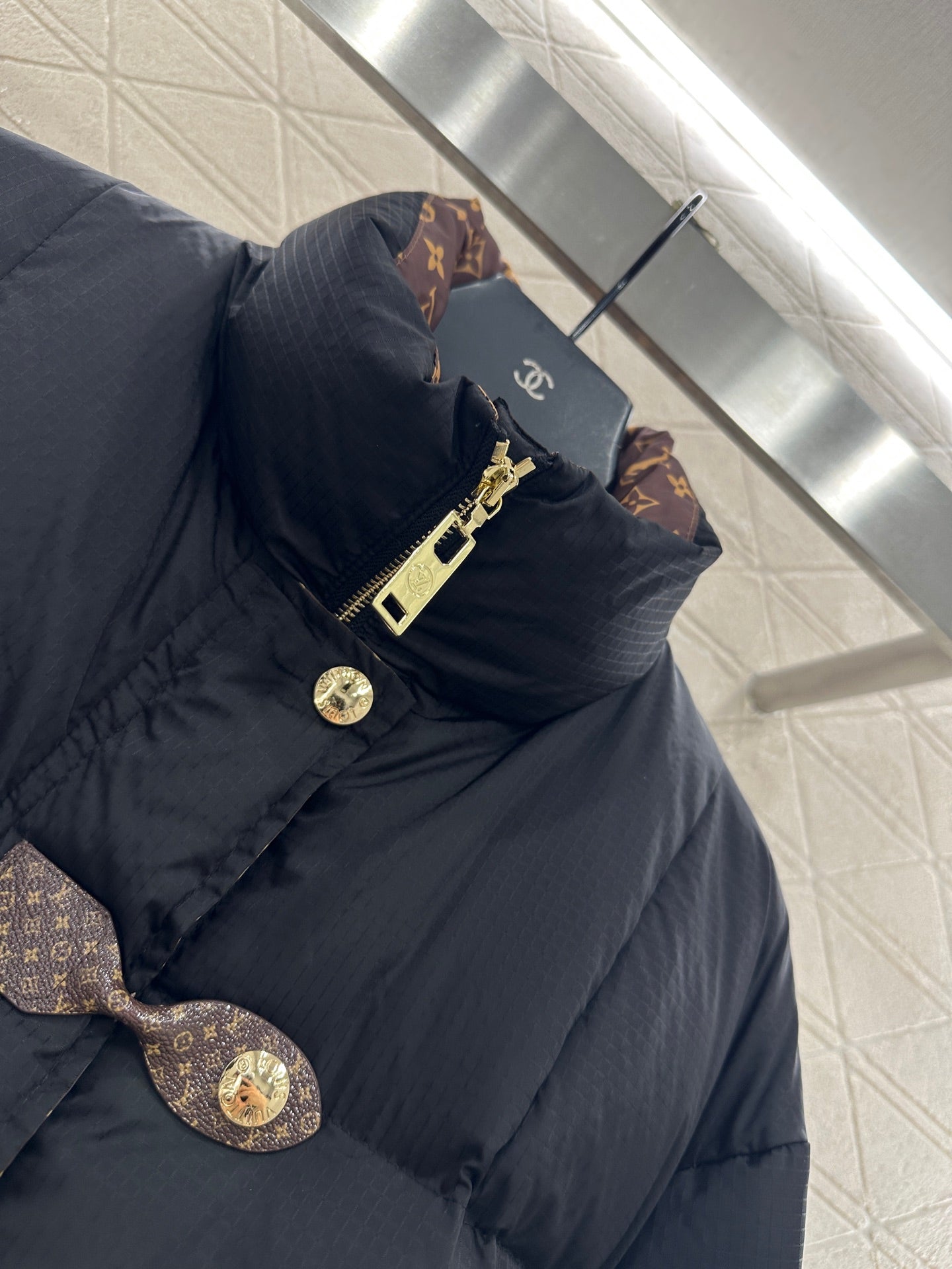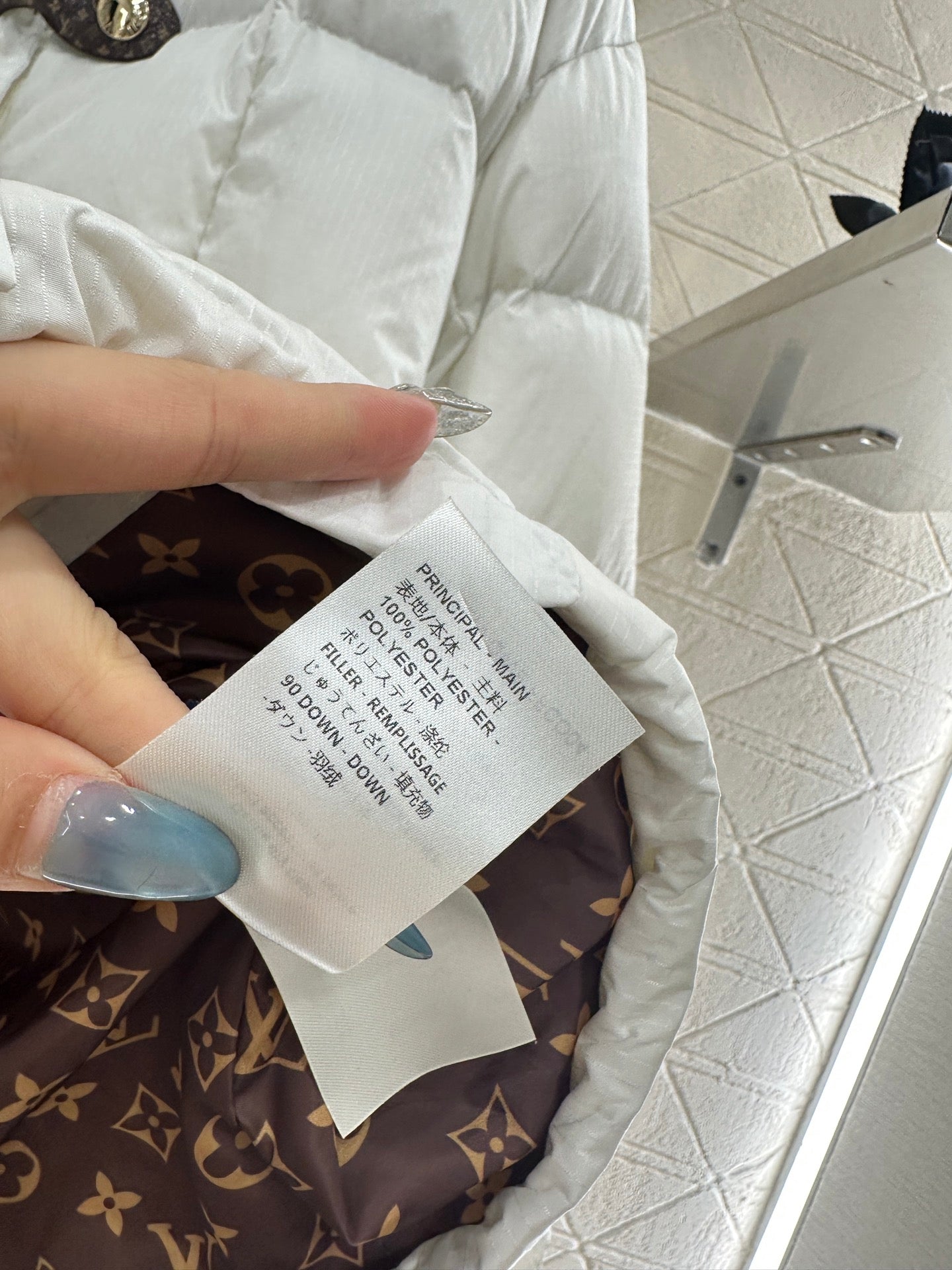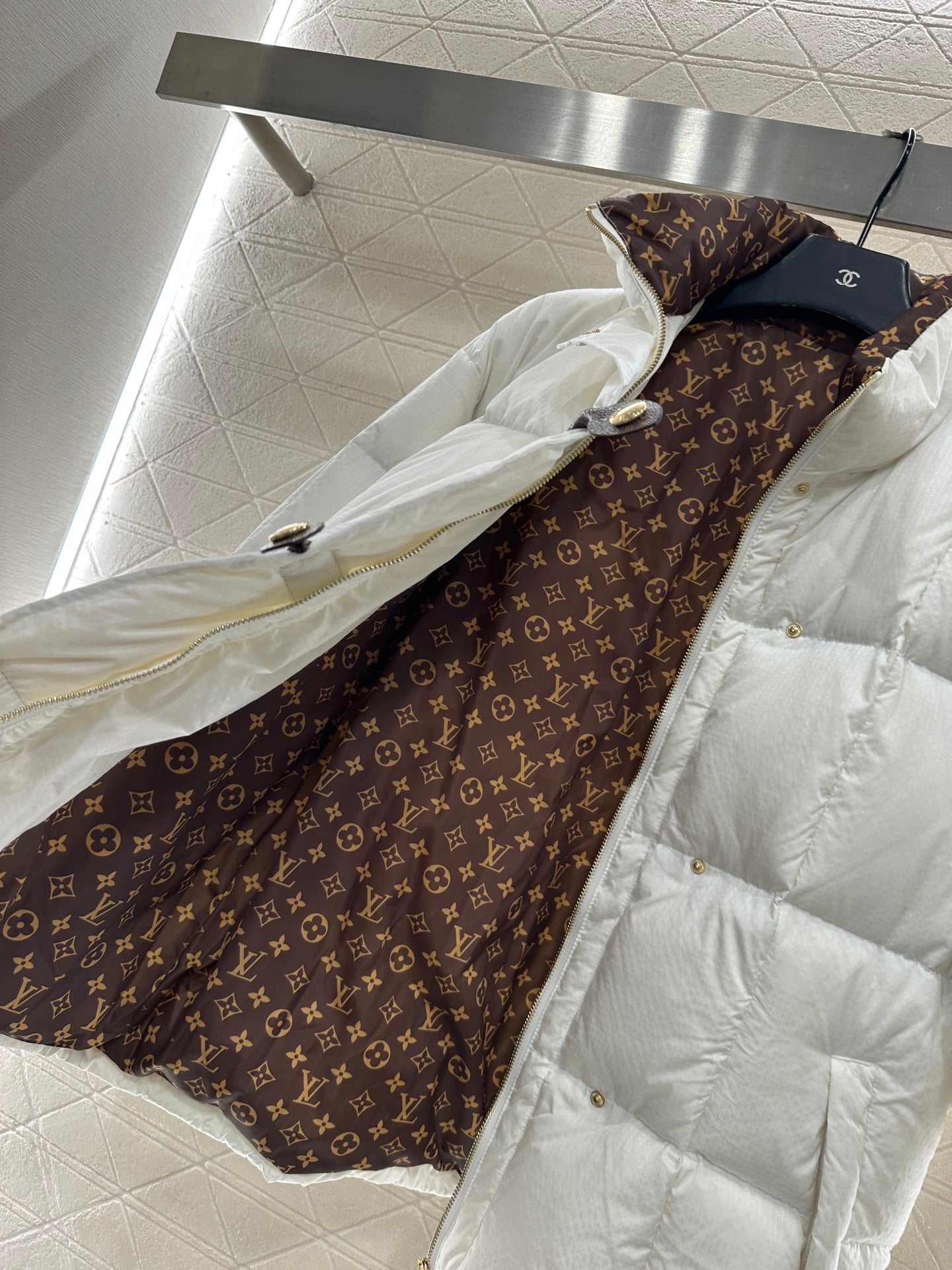 L 25 Stand collar leather button mid-length down jacket(WHITE/BLACK)