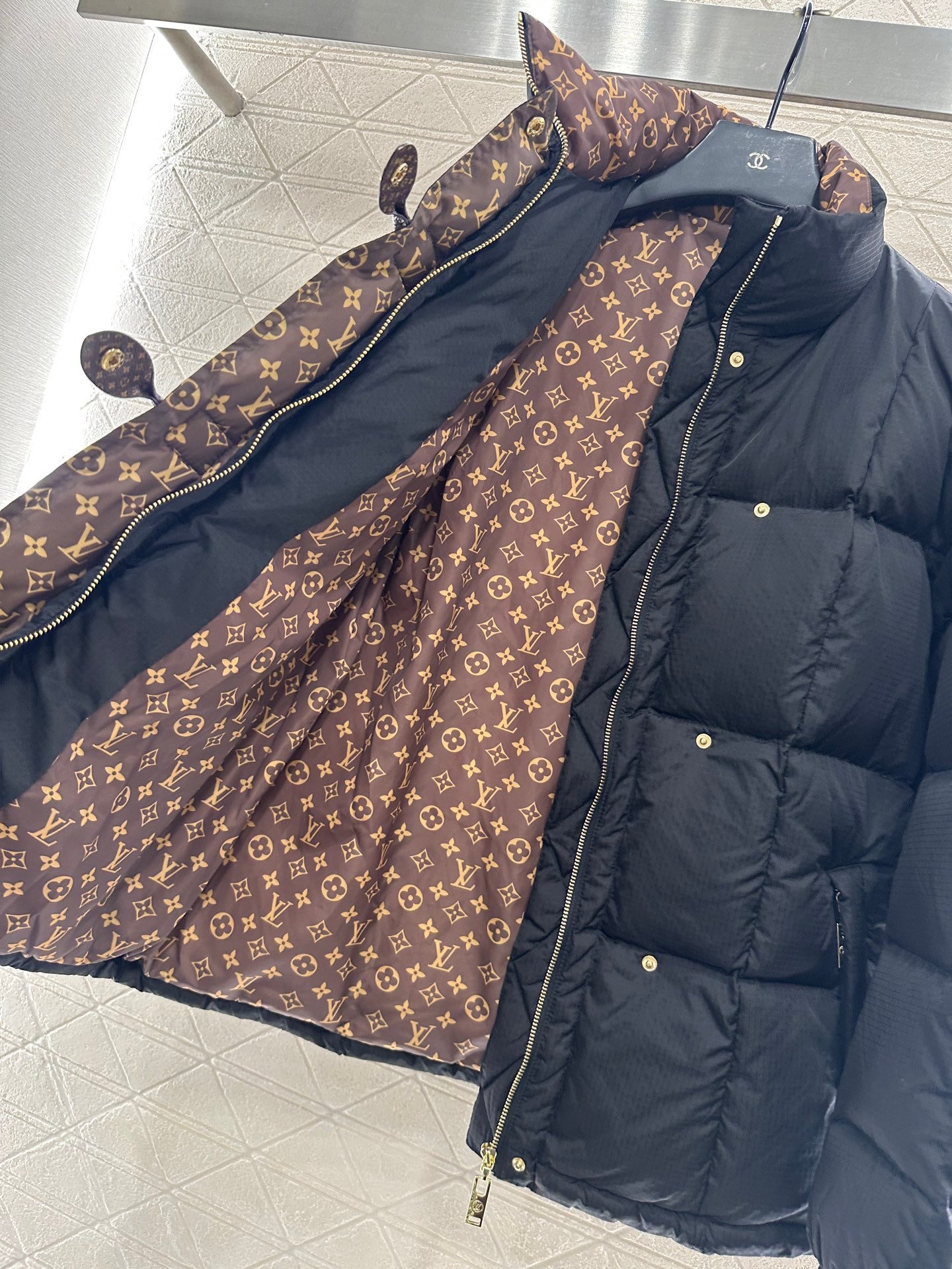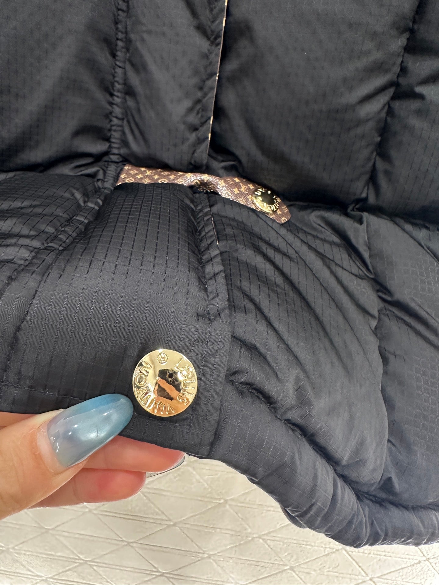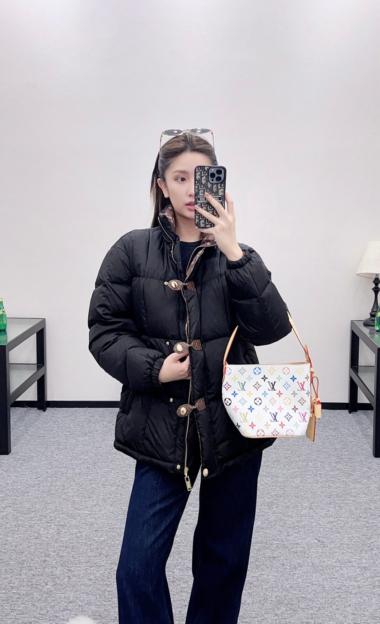 L 25 Stand collar leather button mid-length down jacket(WHITE/BLACK)