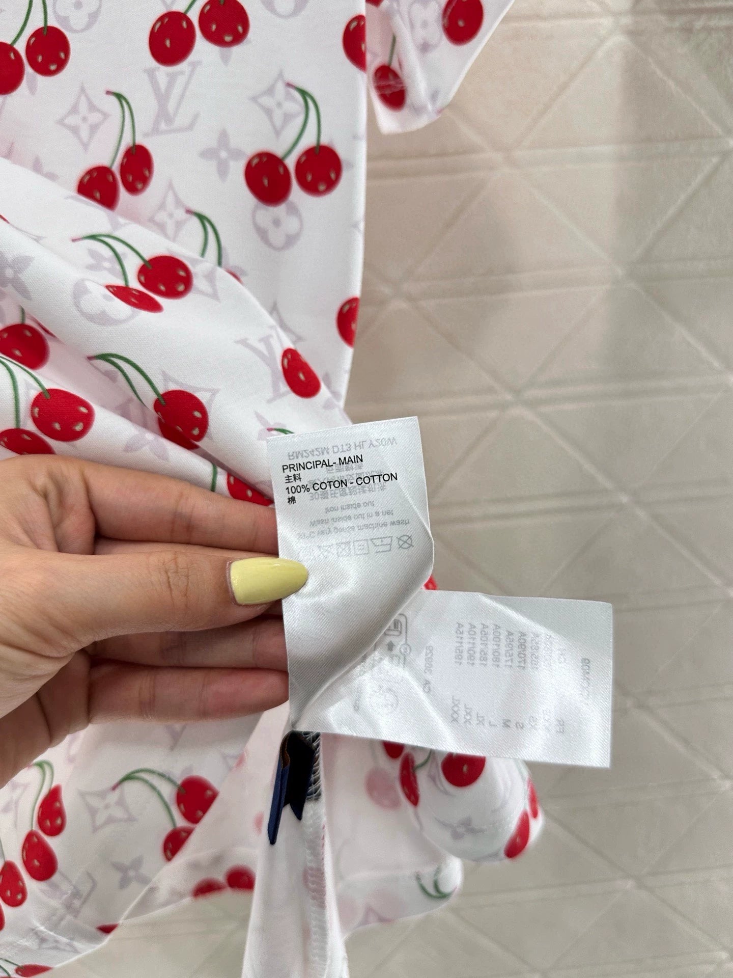 Mercerized cotton Shiny texture Breathable and comfortable Regular fit T-shirt made of heavyweight cotton Slightly stretchy for a slimming effect Metallic monogrammed chain at the neckline Clover monogrammed bottom ➕Colorful cherries Relaxed and chic Brown and white available High-quality style.
