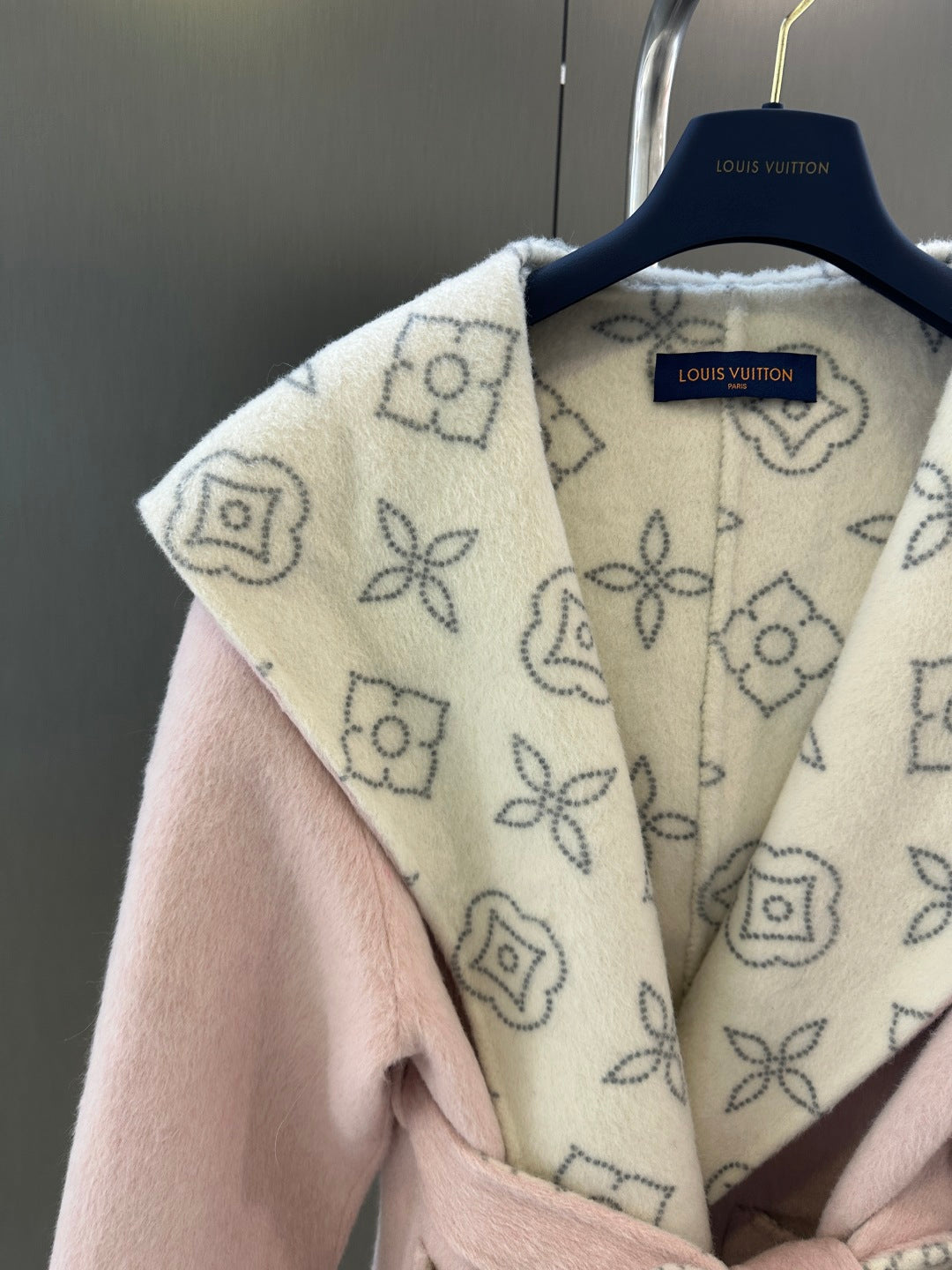 L 25fw Wool blend coat with detachable cuffs made of imported white fox fur